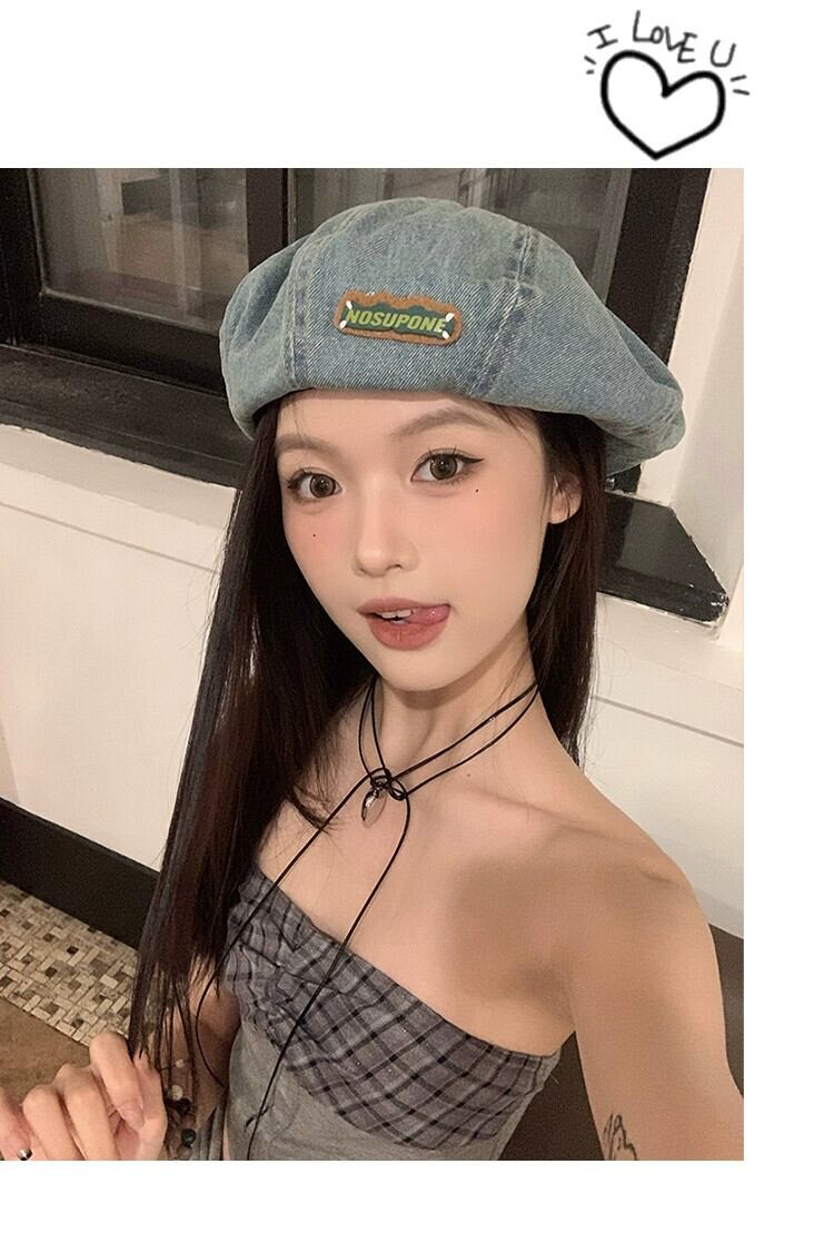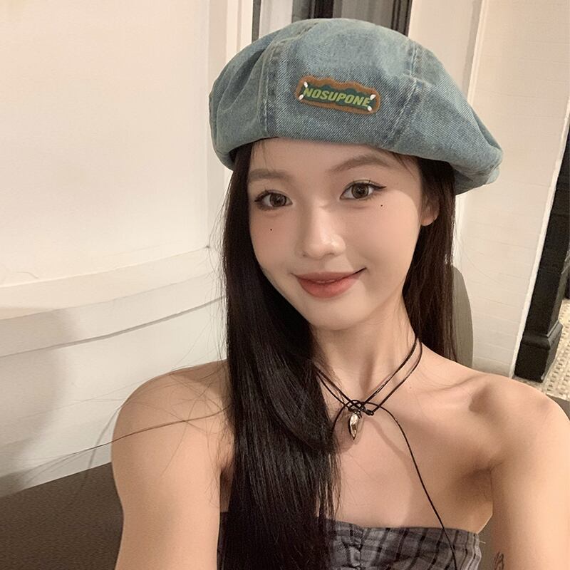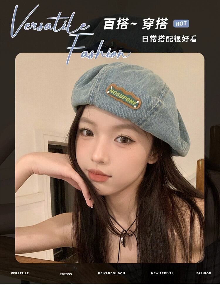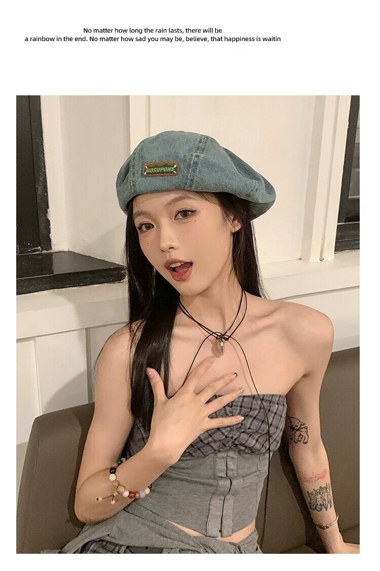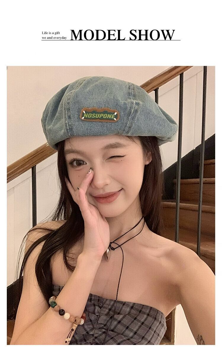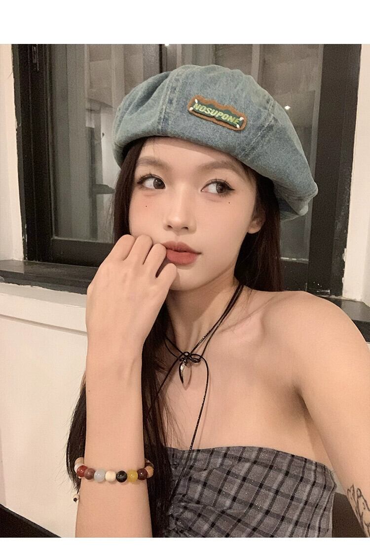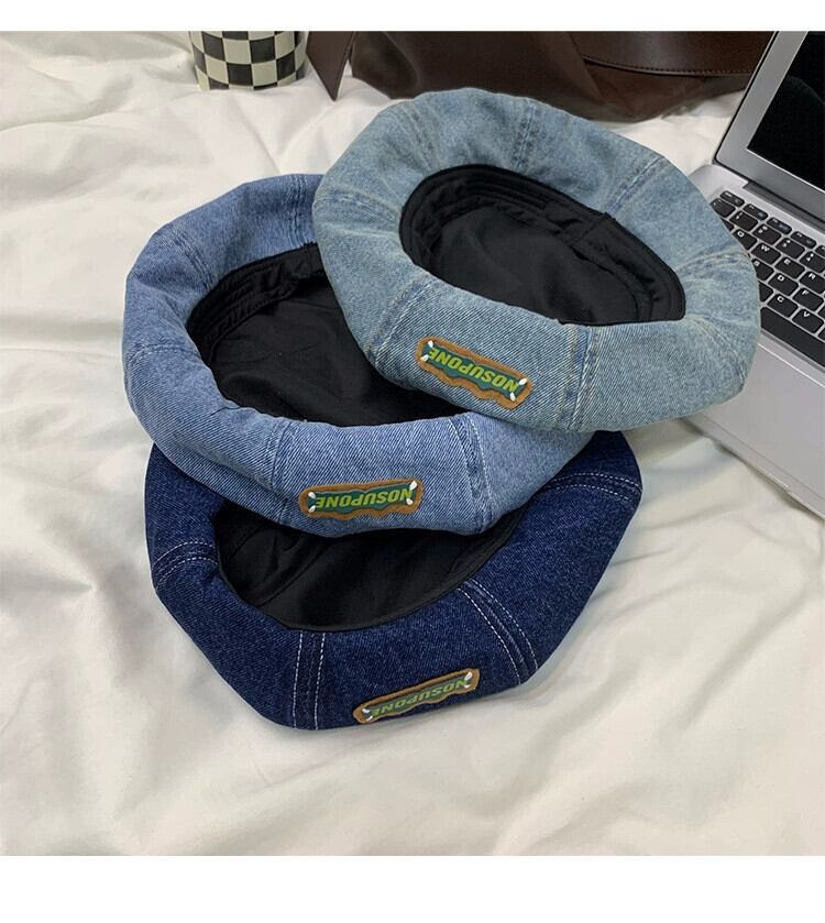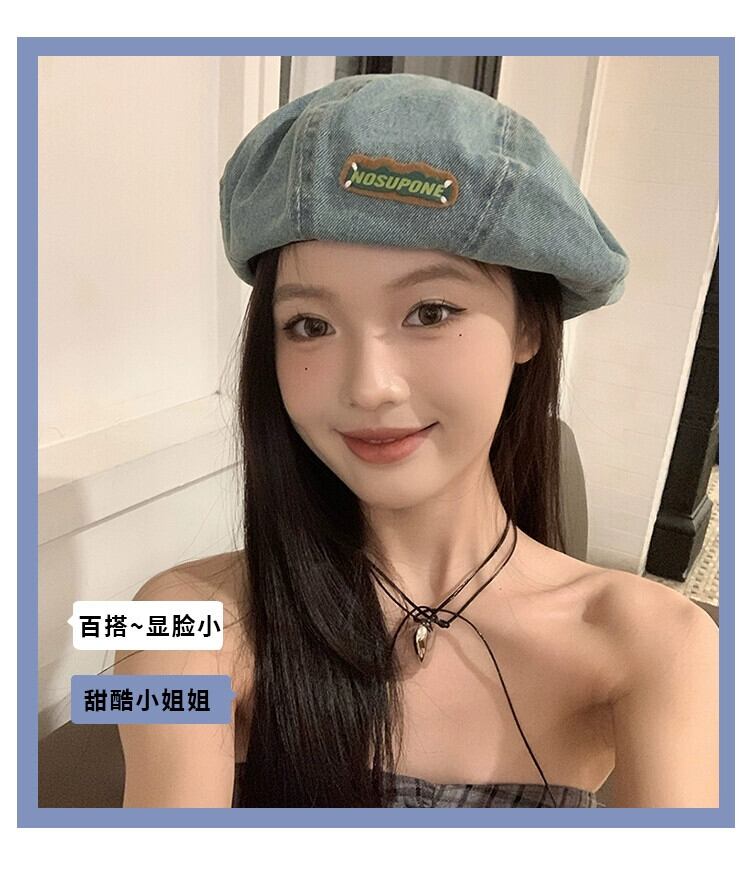 ブルーデニムベレー帽女性の春と秋スタイル大きな頭囲スタイル甘いクールつぼみ帽子顔見せ小さなカジュアルペインターハット 大人ガーリー スウィート キュート スプリング 春物 オータム 秋物 ベレット ヘアアクセサリー 15dd71161852562