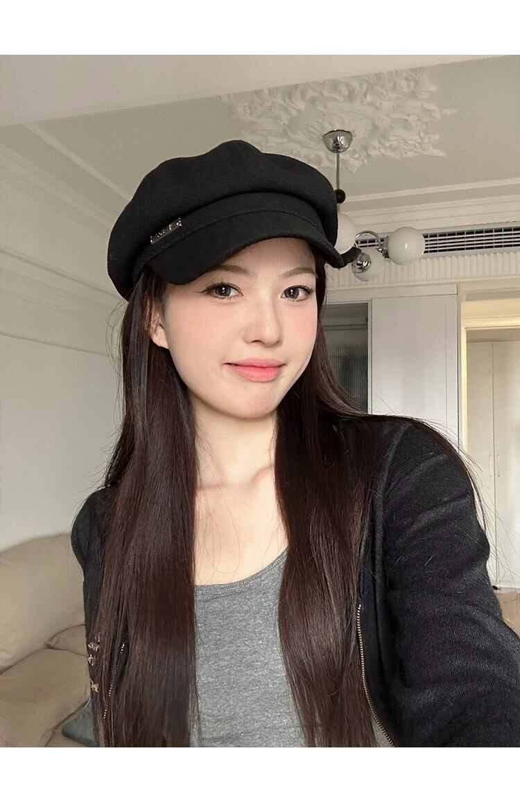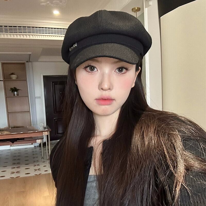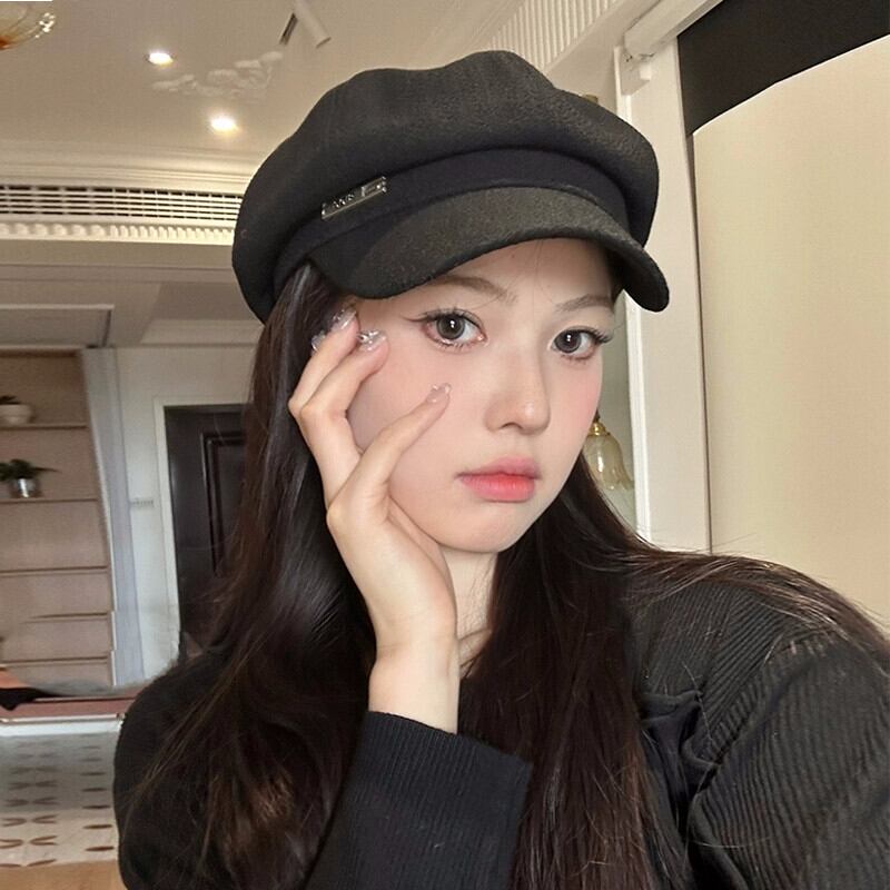 ベレー帽女性の春と秋の多用途 2023 黒顔明らかに小さなレトロ画家八角帽子冬 sboy 帽子 ブラック スプリング 春物 オータム 秋物 ウィンター 冬物 ベレット ヘアアクセサリー 15dd56135251057