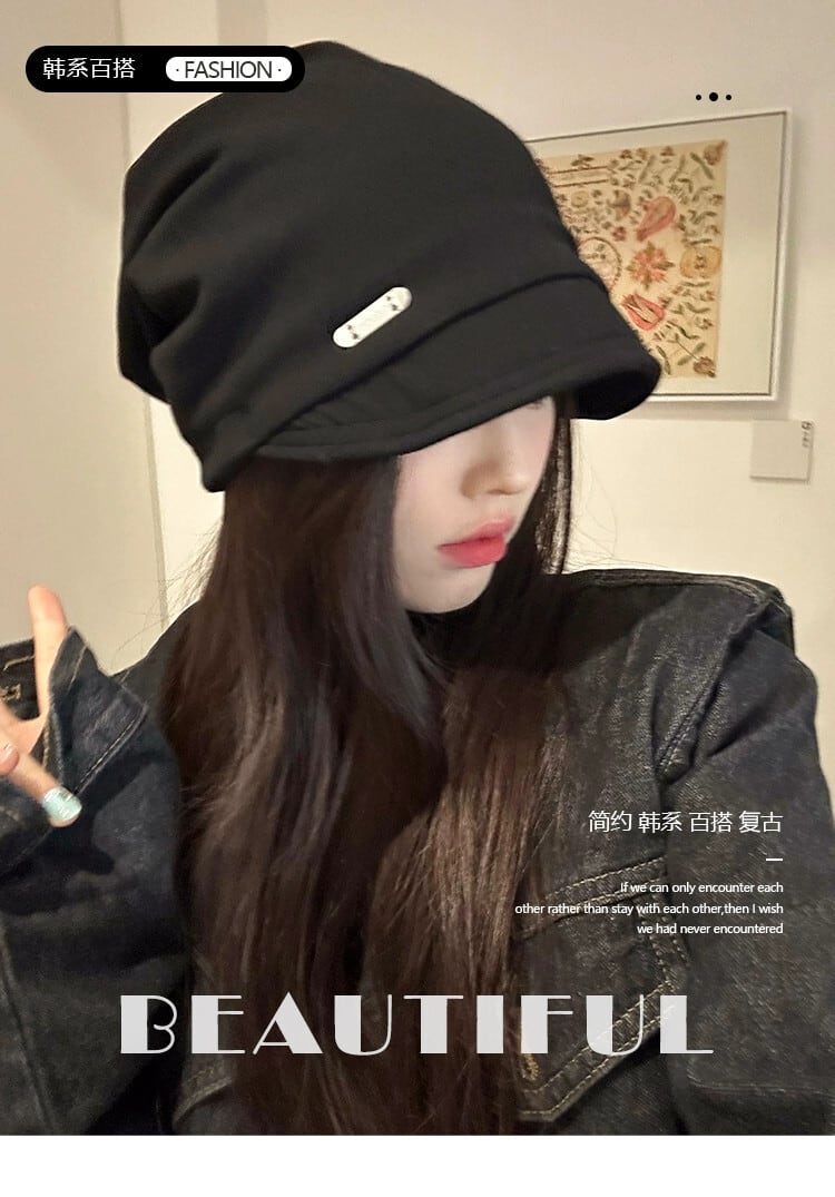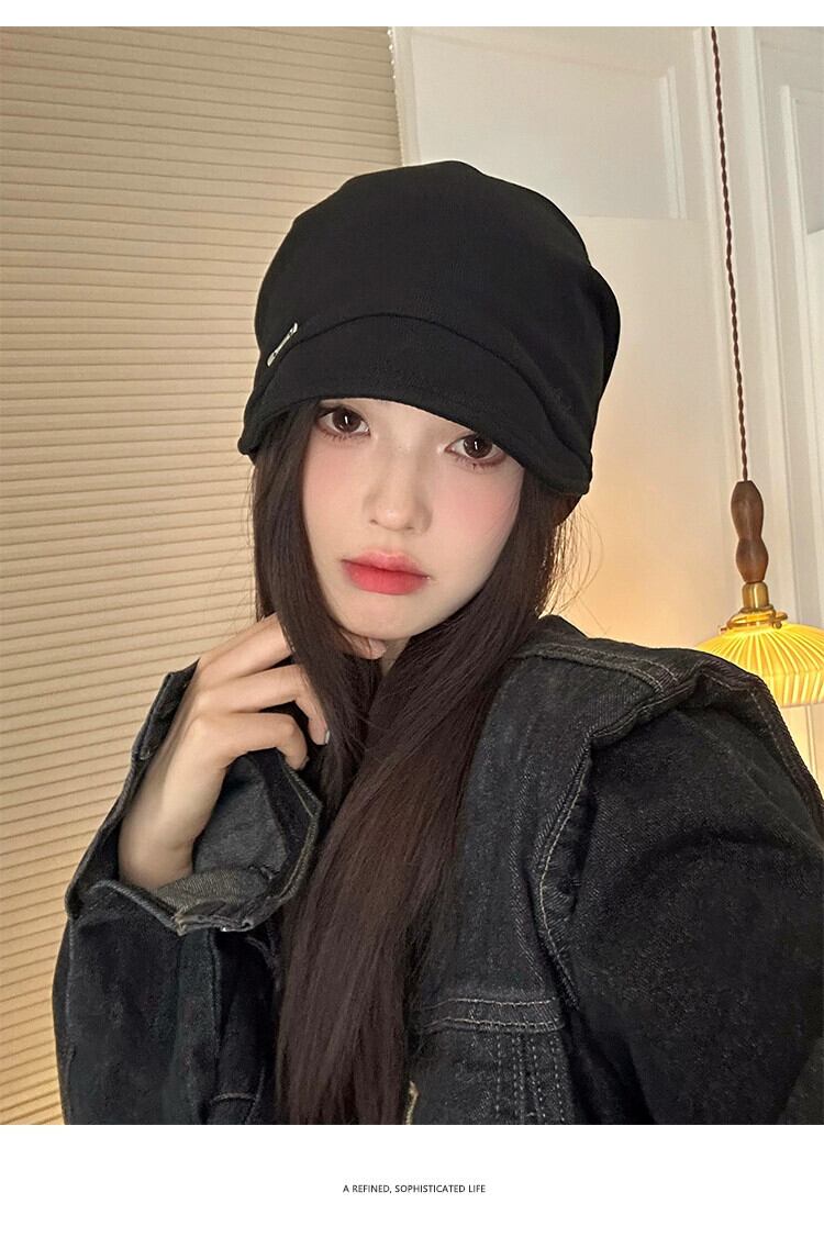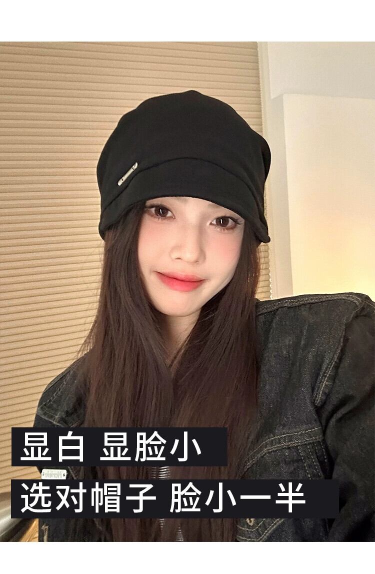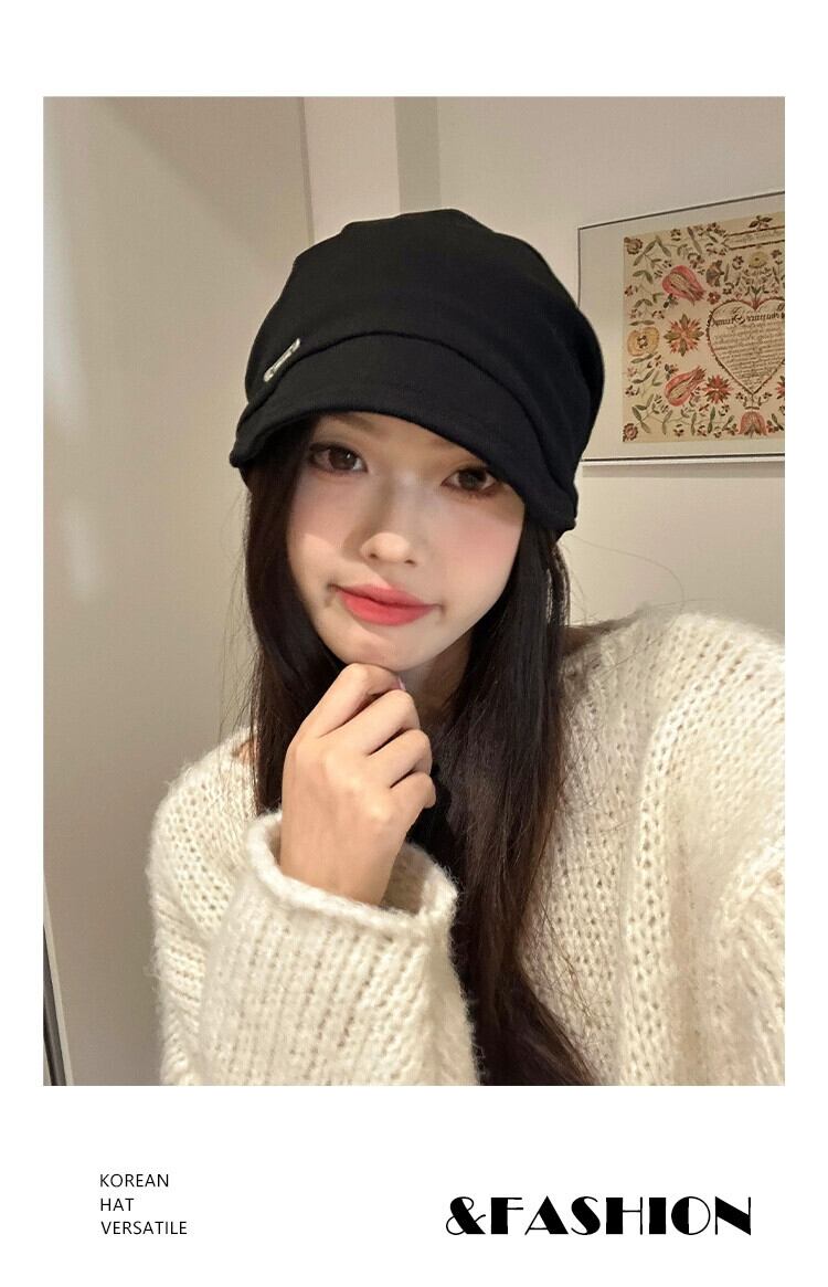 このスタイルの帽子の山の秋と冬の化粧なしの女性と小さな包頭帽子インターネット有名人の黒のファッションオールマッチ防寒帽子監禁帽子 ブラック オータム 秋物 ウィンター 冬物 15dd90802621423