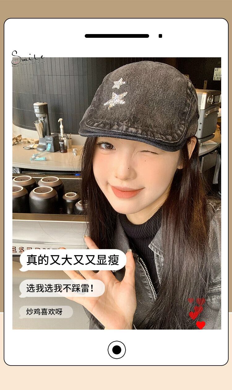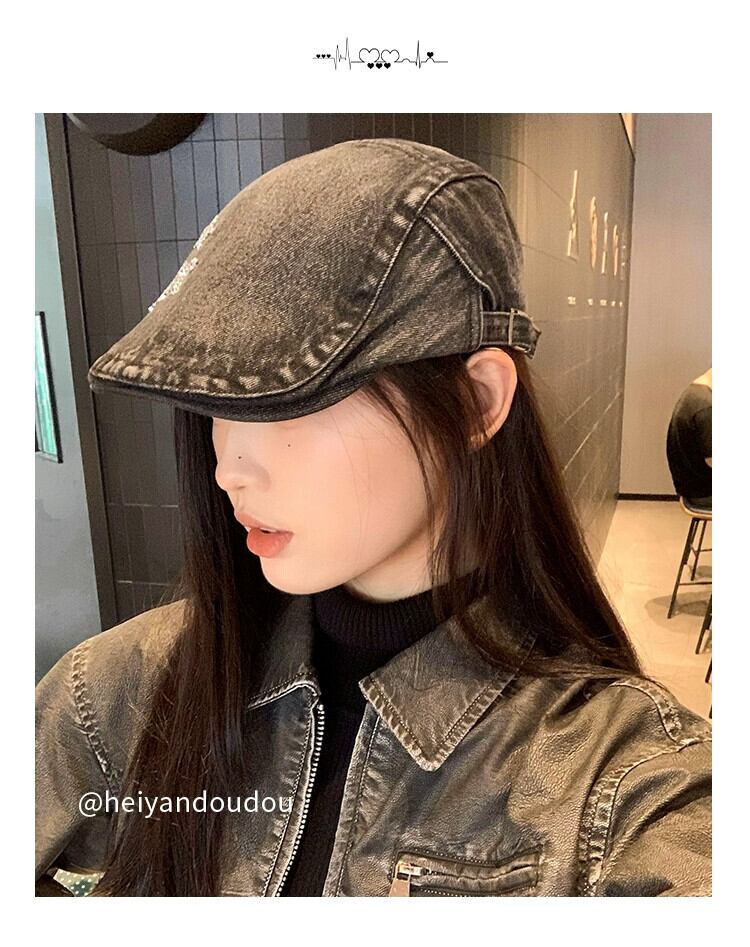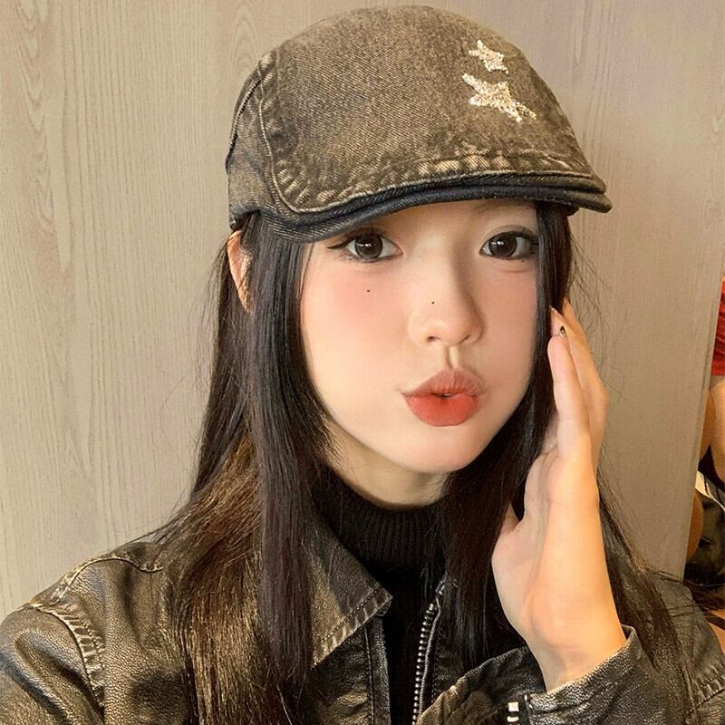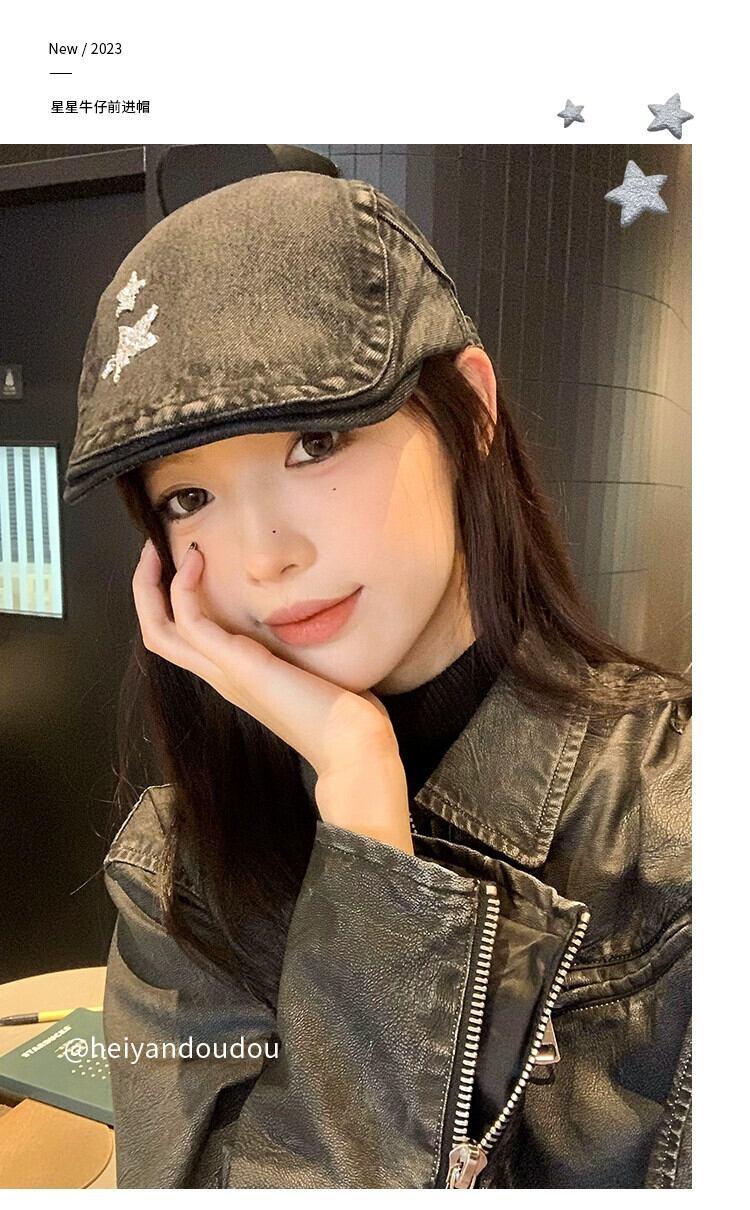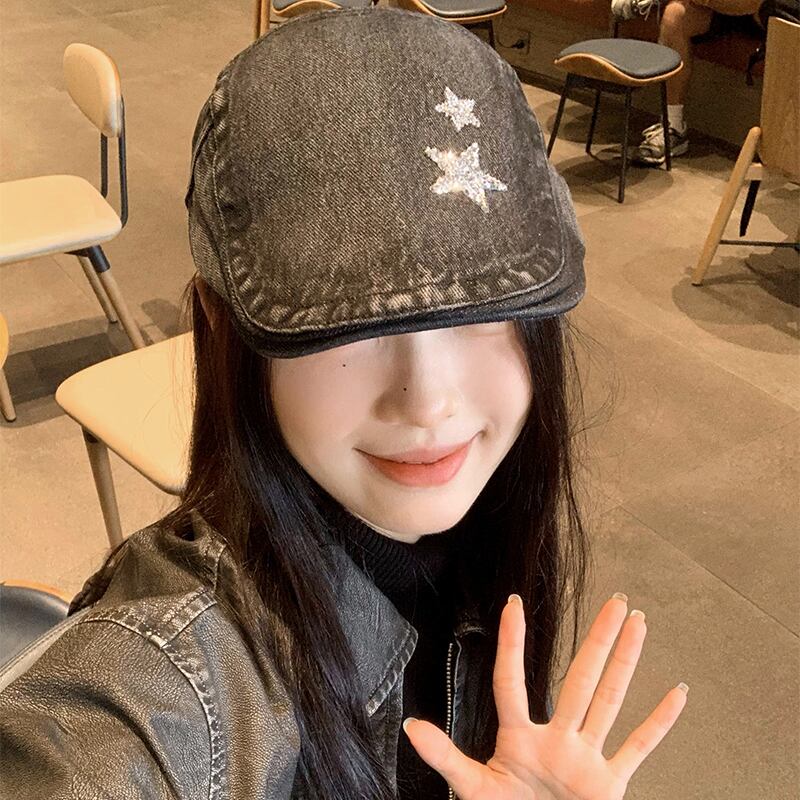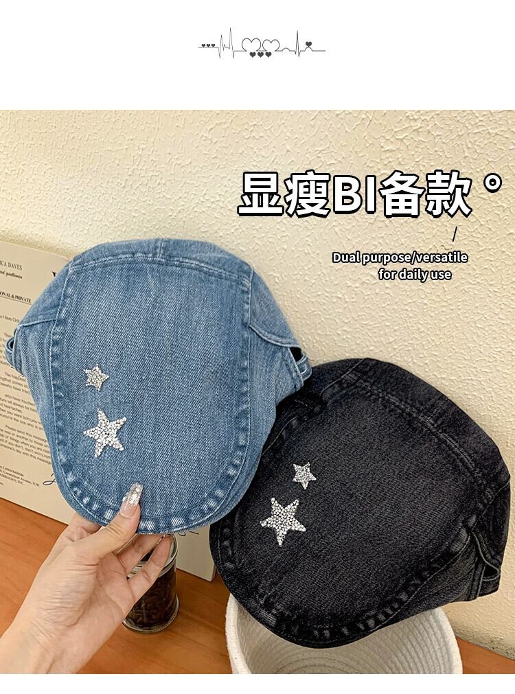 ese レトロスターデニムワードキャップアヒルの帽子女性の秋と冬のファッションオールマッチベレー帽トレンディな子供用帽子 オータム 秋物 ウィンター 冬物 ベレット ヘアアクセサリー 15dd68595724863