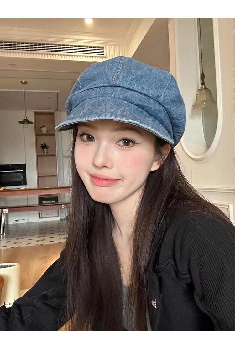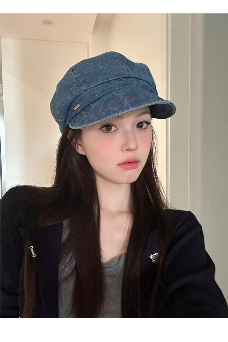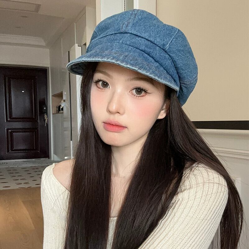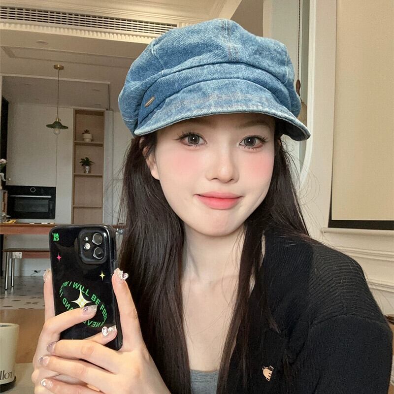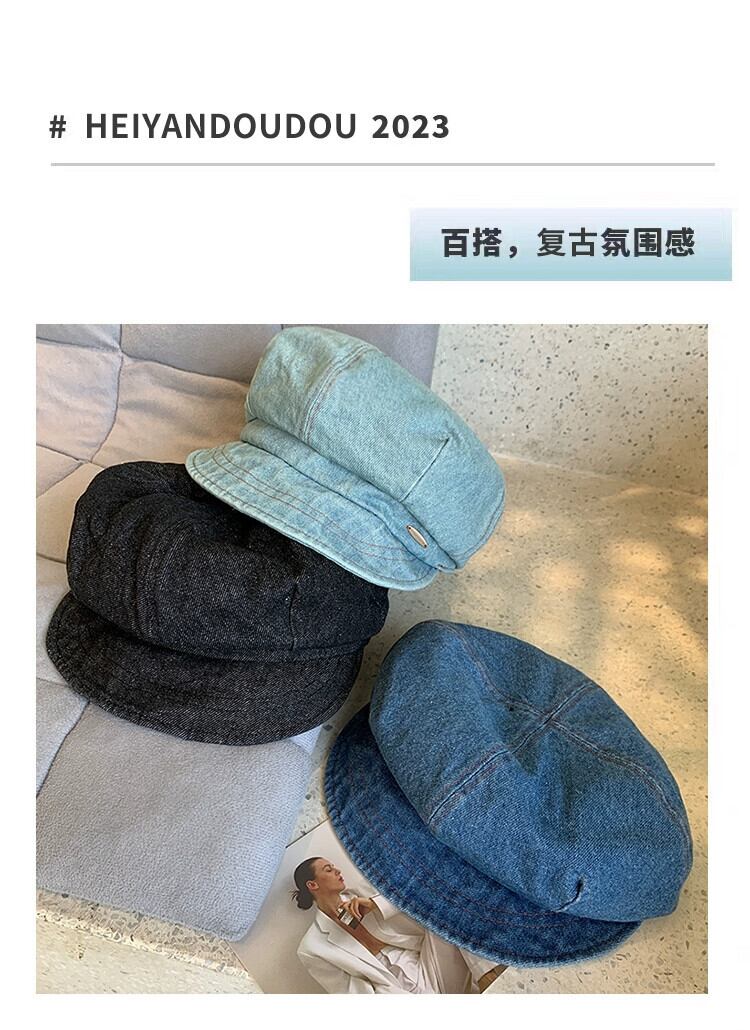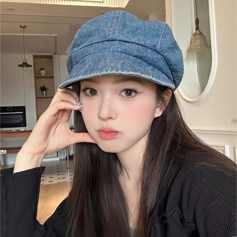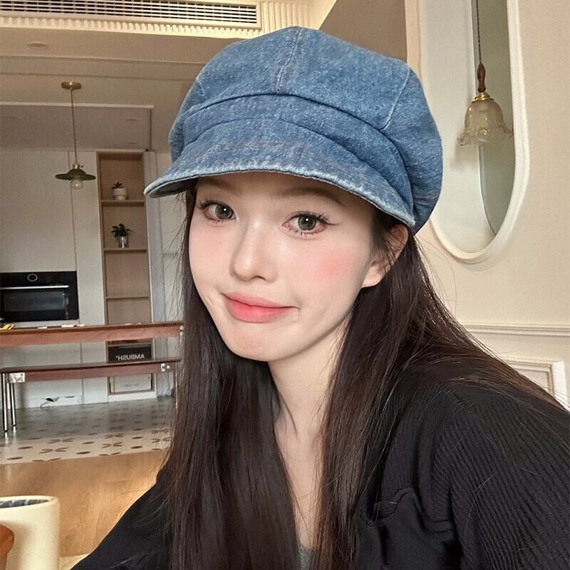 ese 洗浄デニムクラウド帽子夏ショー顔小さな文学気質八角形帽子女性春と秋のレトロな短いつばキャスケット帽子 ショート スプリング 春物 サマー 夏物 オータム 秋物 15dd2762892421