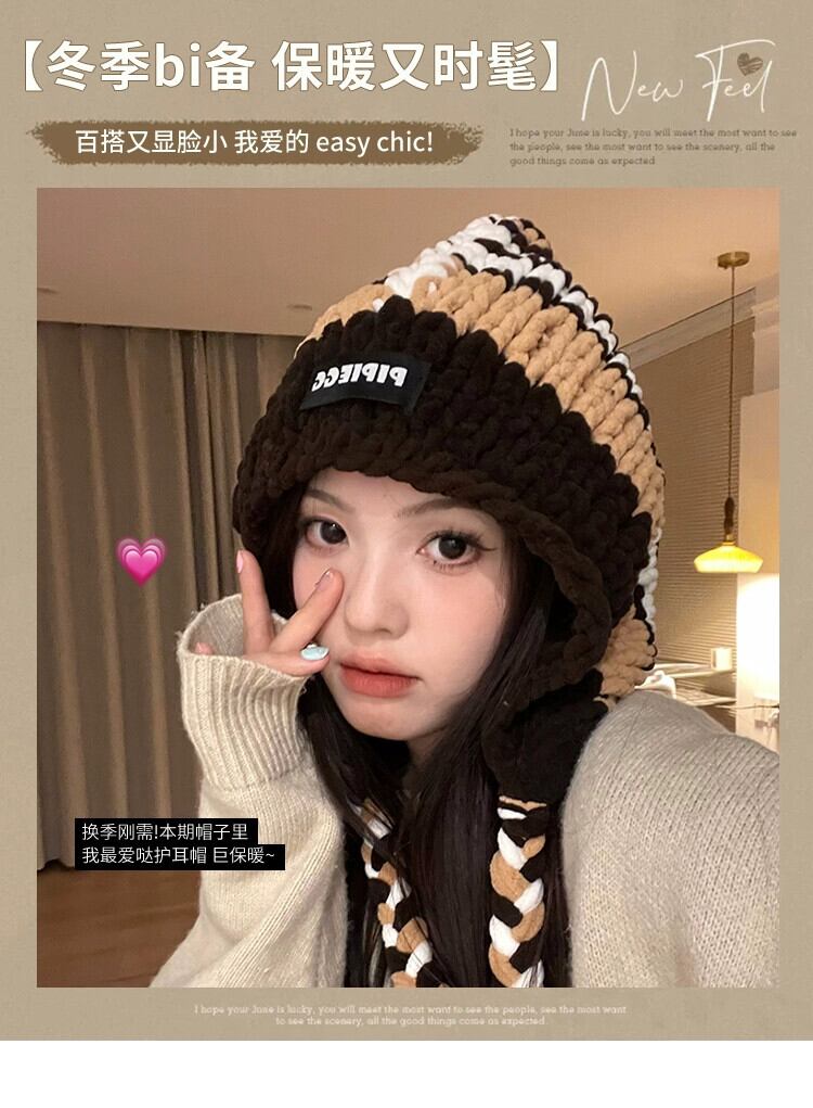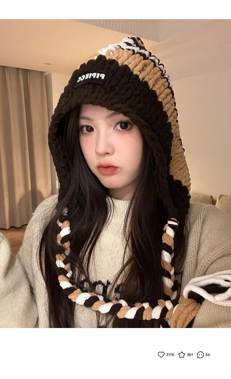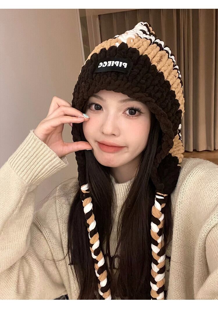 秋と冬の頭囲の大きな女性の厚いウールの帽子、暖かい耳の保護、バッグヘッドのニット帽、顔出し、小さな雷峰帽子、学生のトレンド オータム 秋物 ウィンター 冬物 15dd13024016858