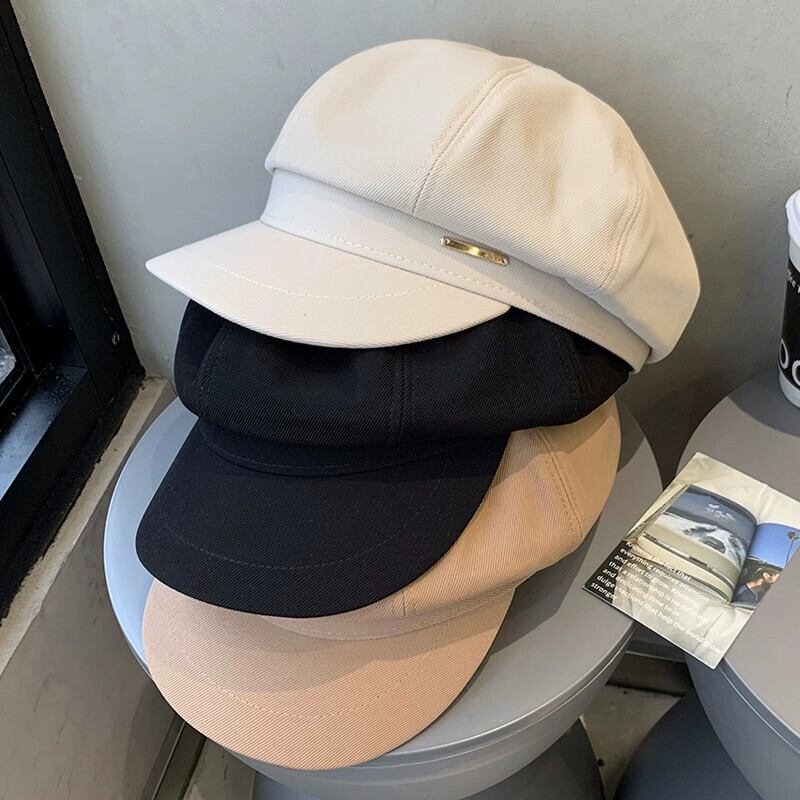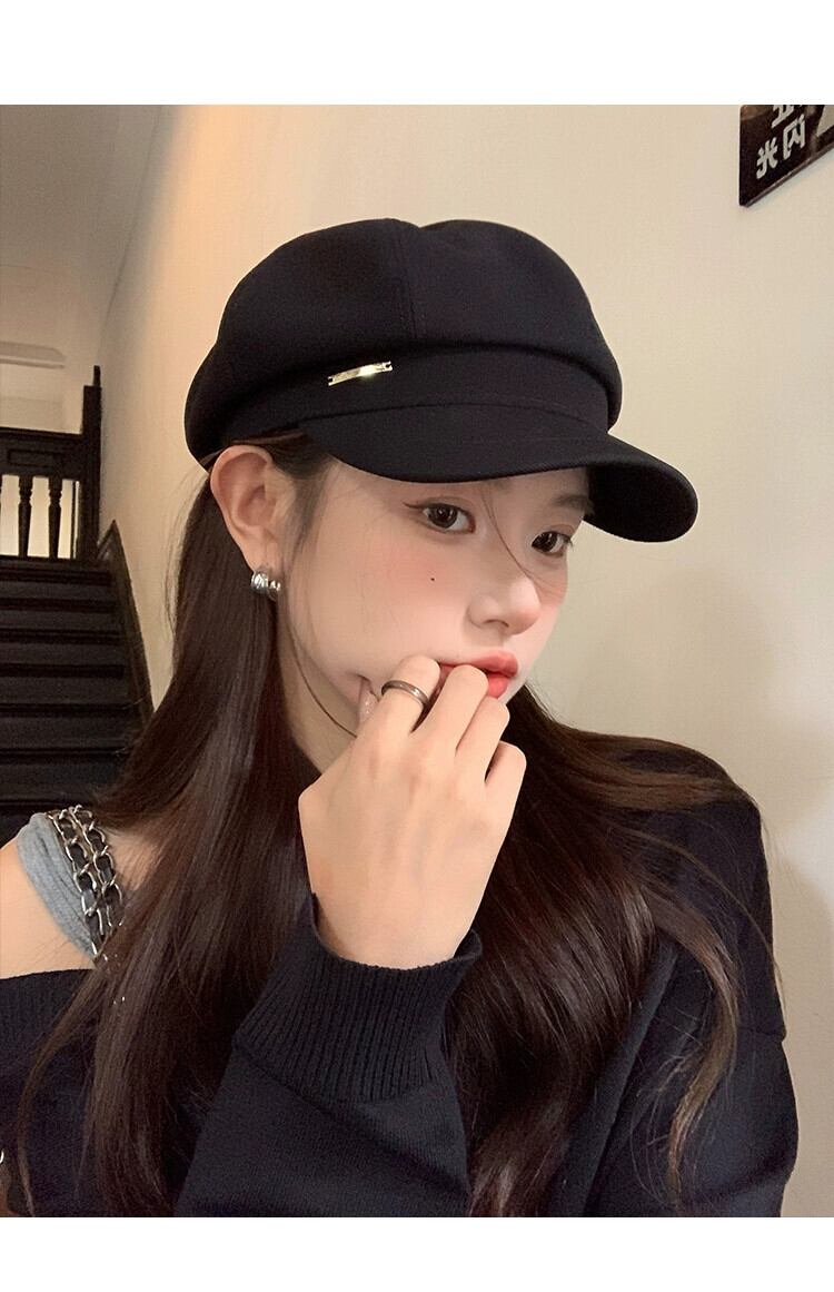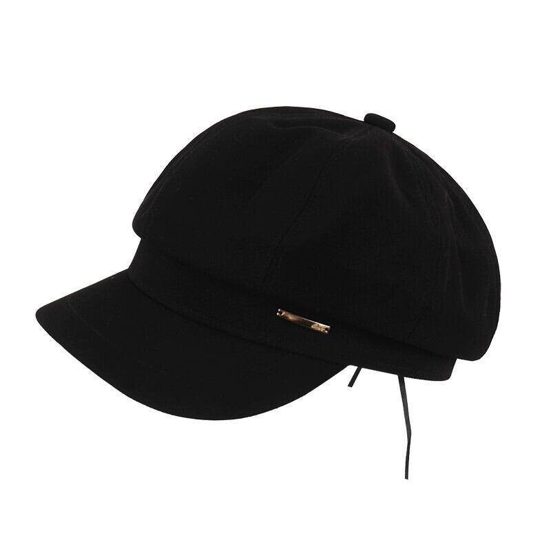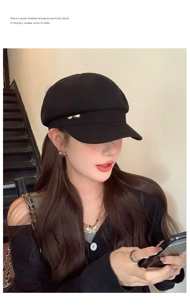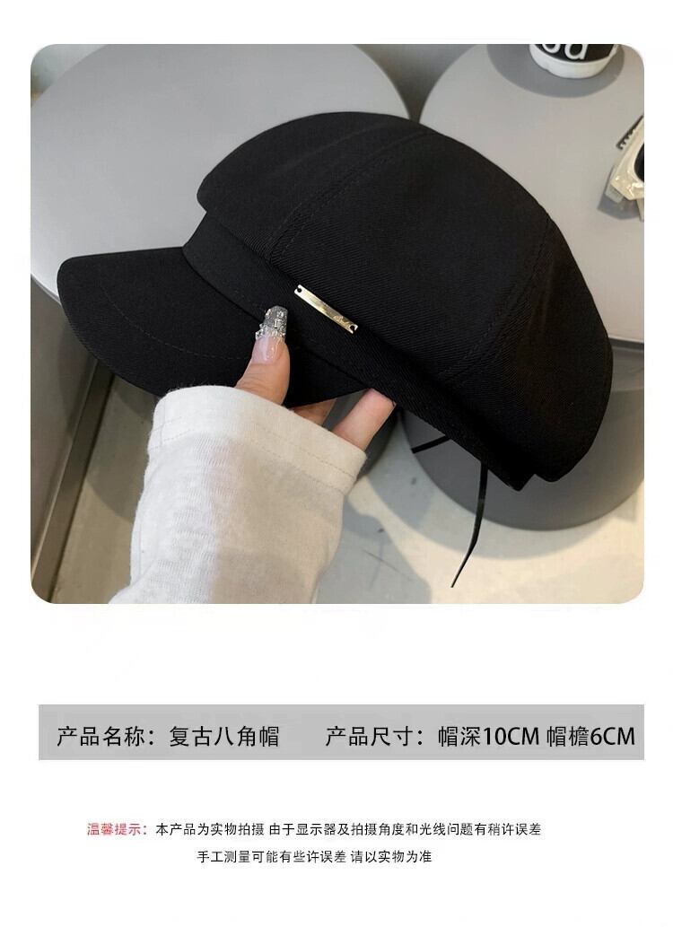 秋冬スタイルのレトロな黒ベレー帽の女性ファッショナブルな大きな頭囲顔小さなキャスケット帽子インターネット有名人八角形画家の帽子 ブラック オータム 秋物 ウィンター 冬物 ベレット ヘアアクセサリー 15dd46078906415