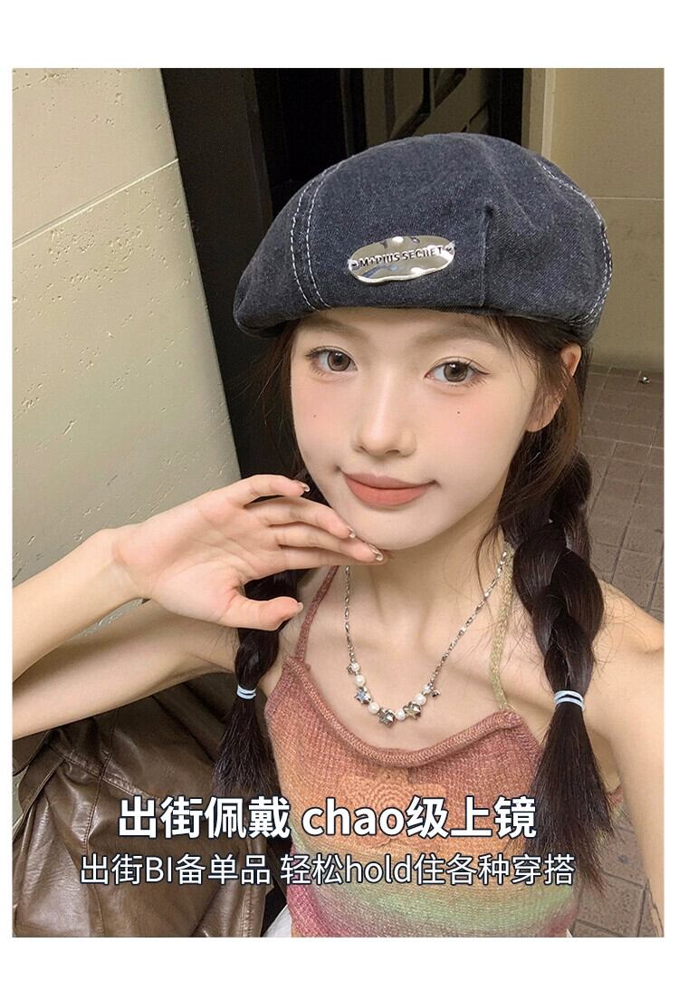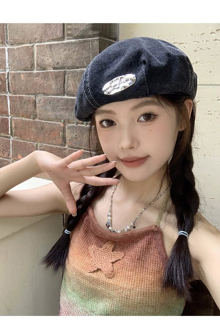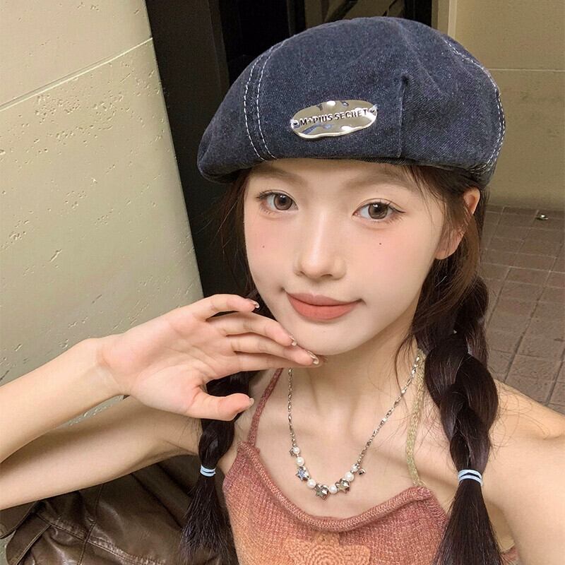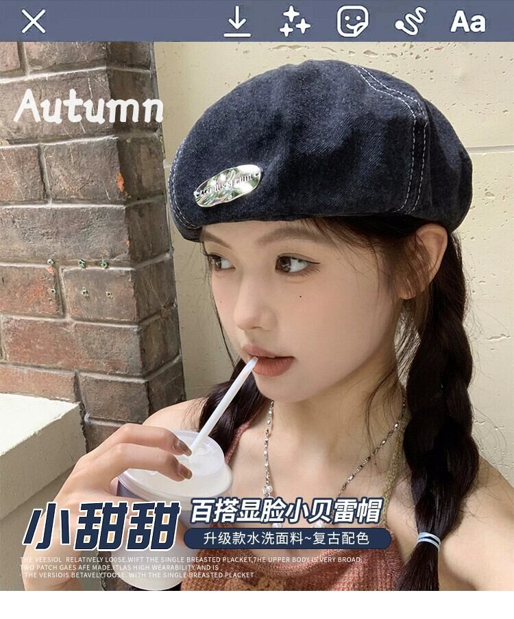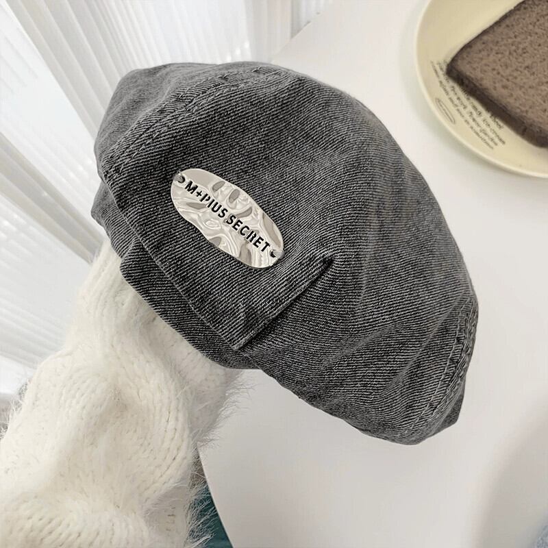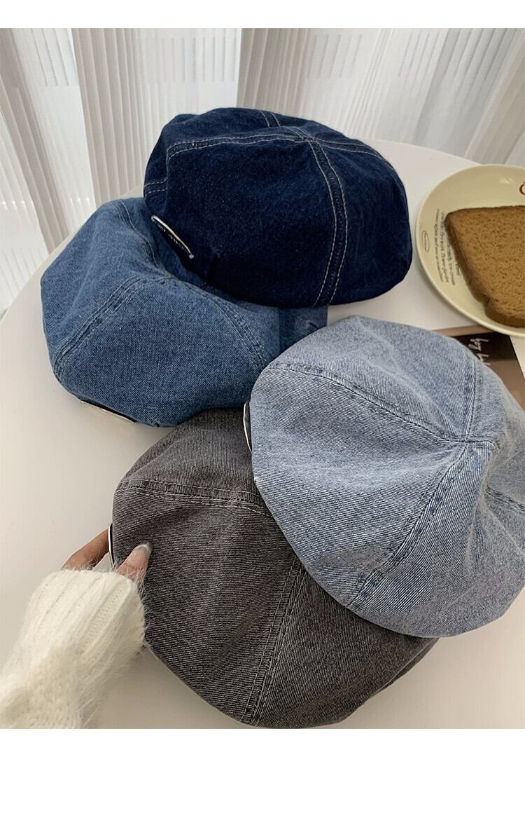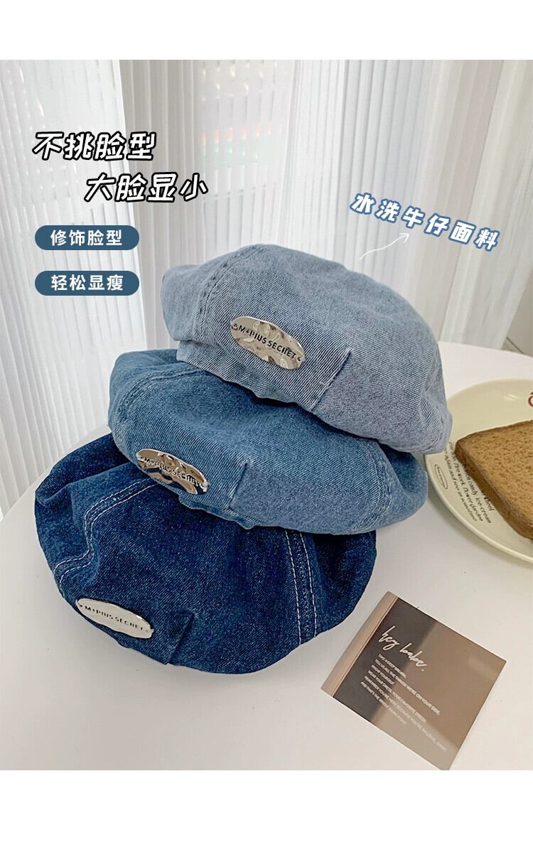 ウォッシュド オールド デニム ベレー帽 春と秋 レトロ ノスタルジックな 大きな頭囲 ニッチ 丸顔 小さなペインターハット 帽子 スプリング 春物 オータム 秋物 ベレット ヘアアクセサリー 15dd7175903459
