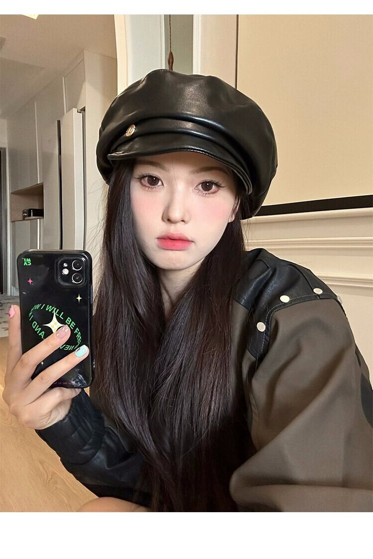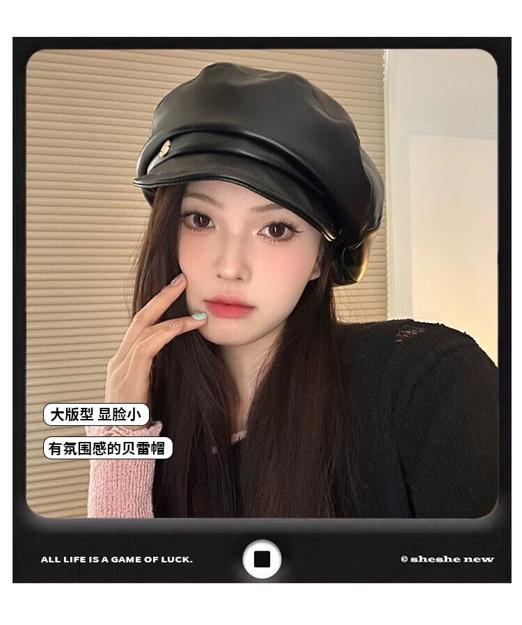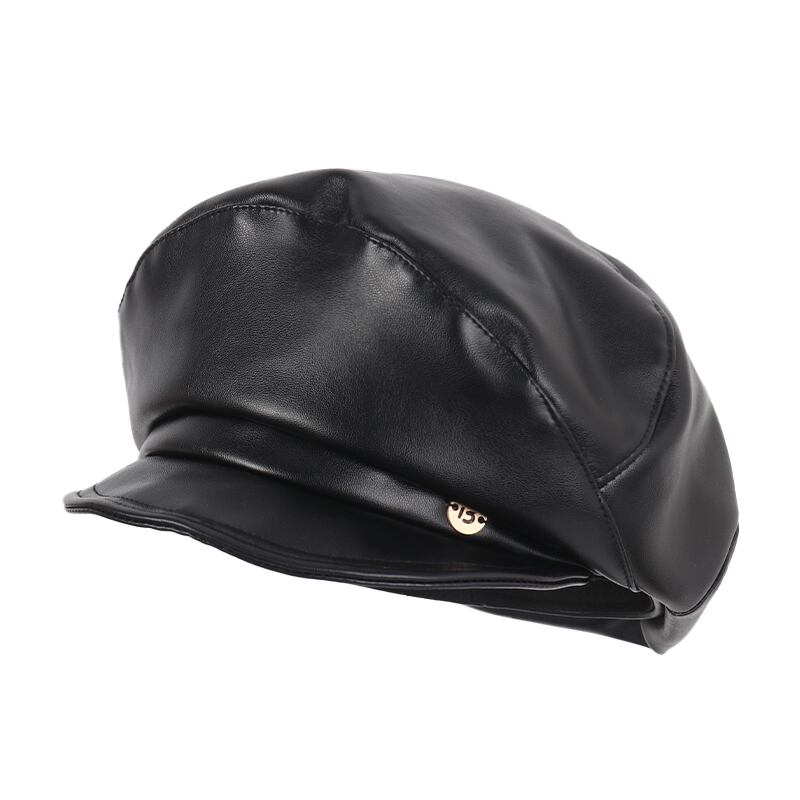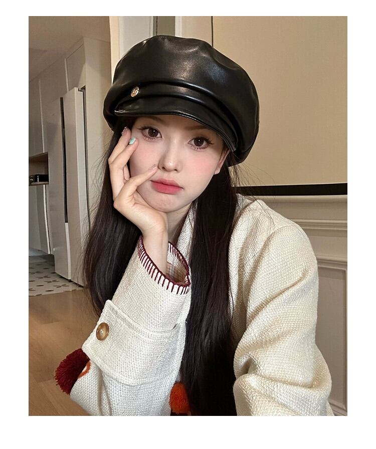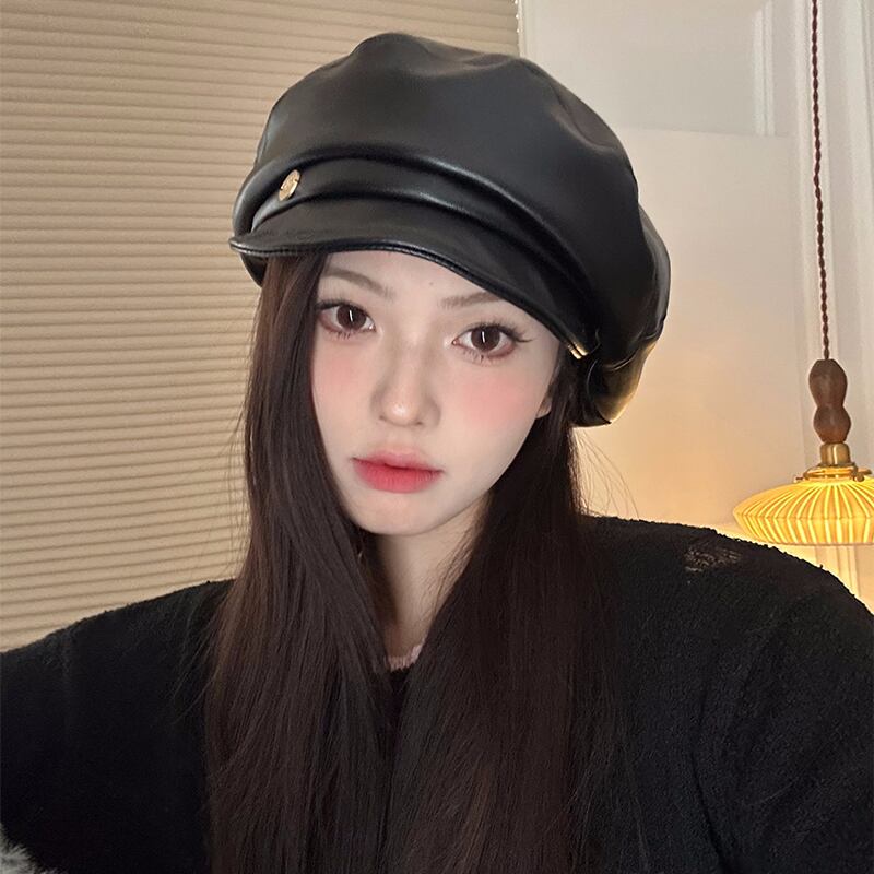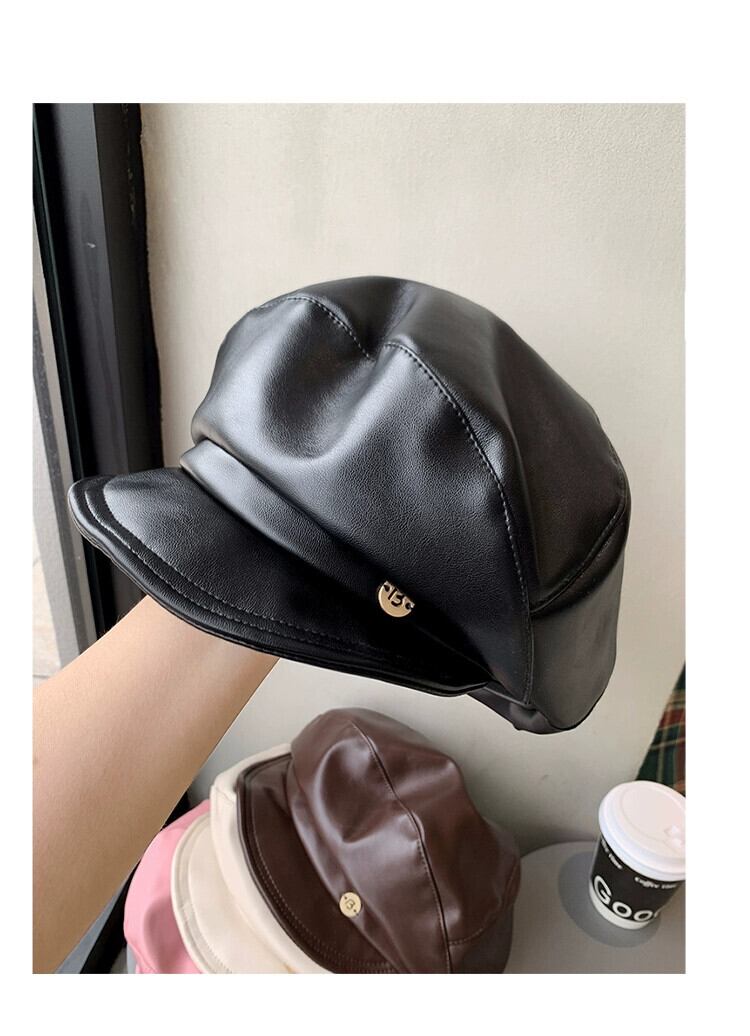 PUレザーベレー帽女性の秋と冬のインターネット有名人画家の帽子カジュアルで多用途な気質の雲八角形の帽子は顔を小さくします オータム 秋物 ウィンター 冬物 ベレット ヘアアクセサリー 15dd60623072018
