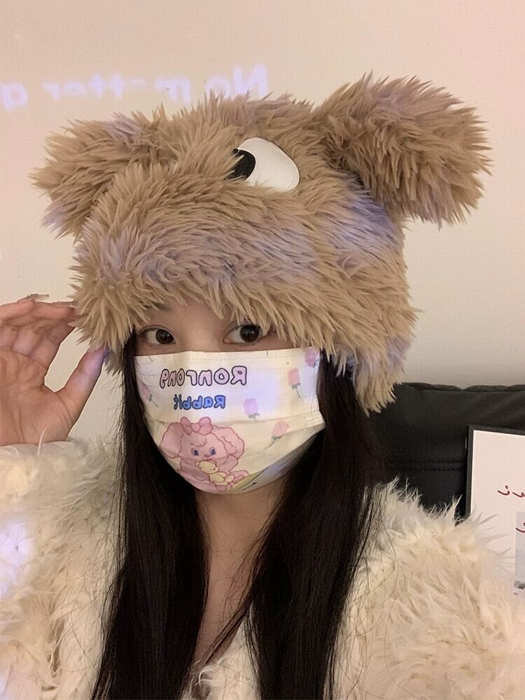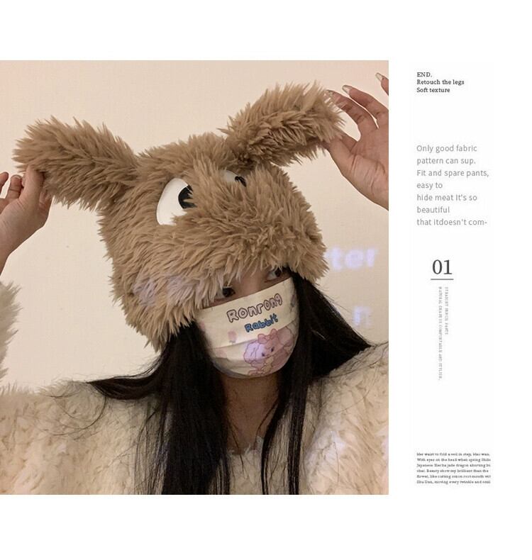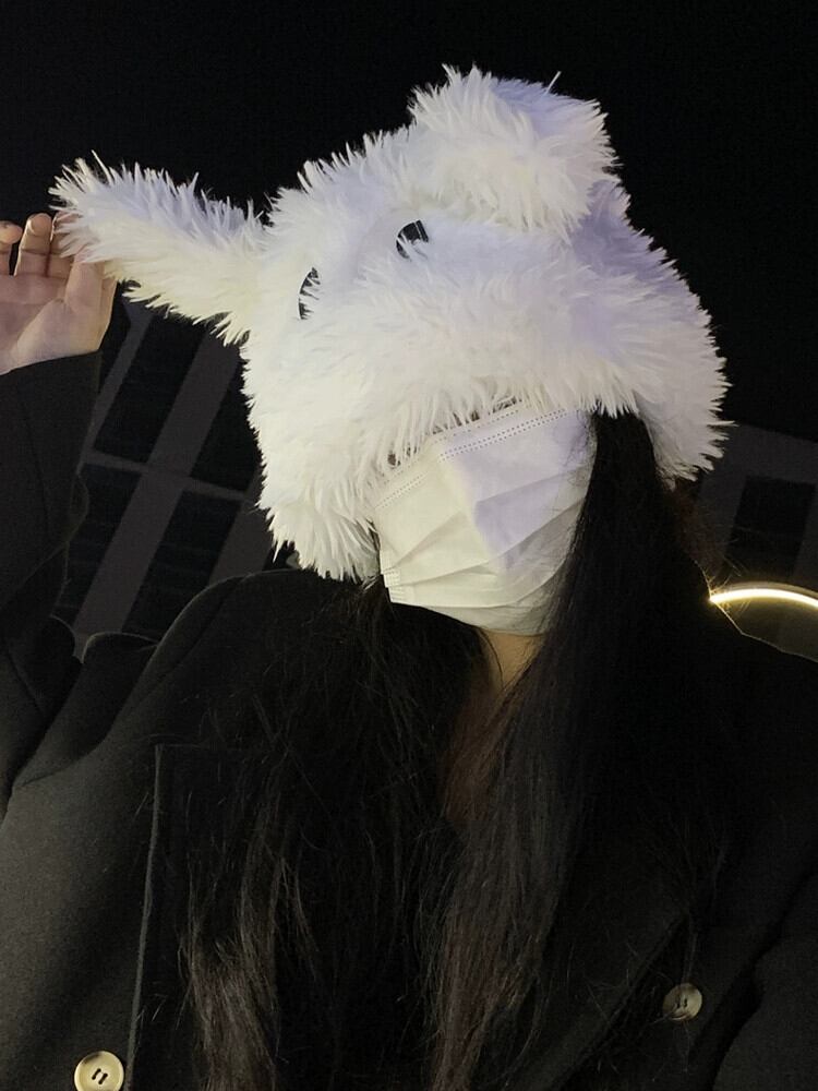 かわいい漫画面白い子犬帽子女性の秋と冬の長い耳肥厚包頭プルオーバー帽子暖かい豪華な雷峰帽子 ロング 大人ガーリー スウィート キュート カジュアル オータム 秋物 ウィンター 冬物 15dd57171041702