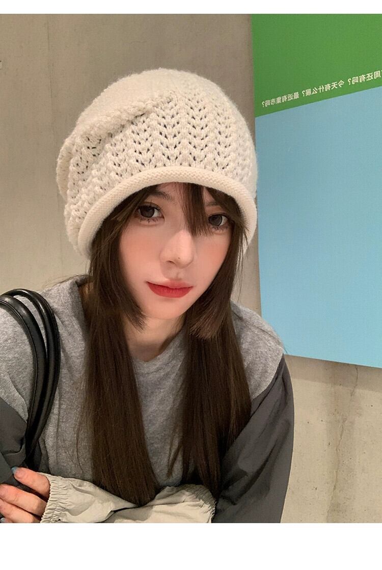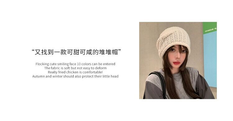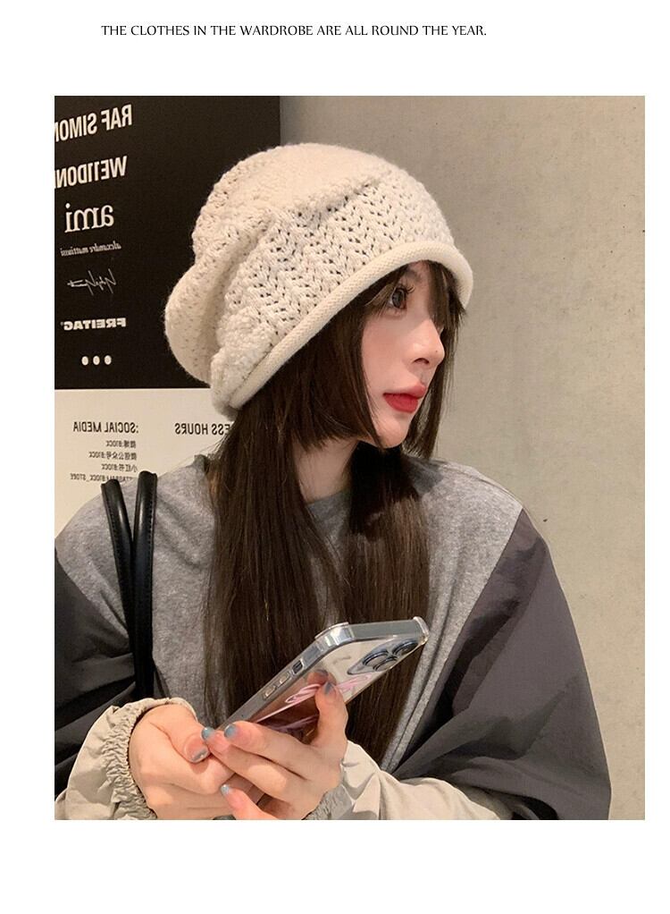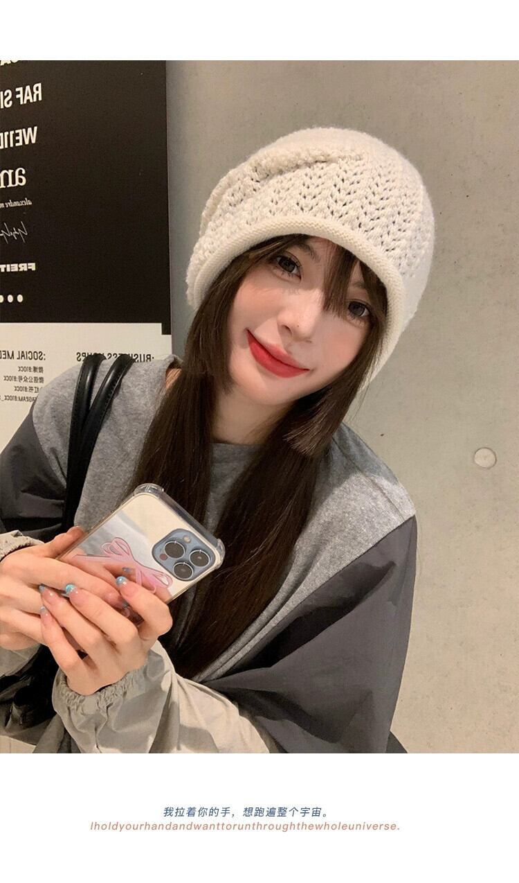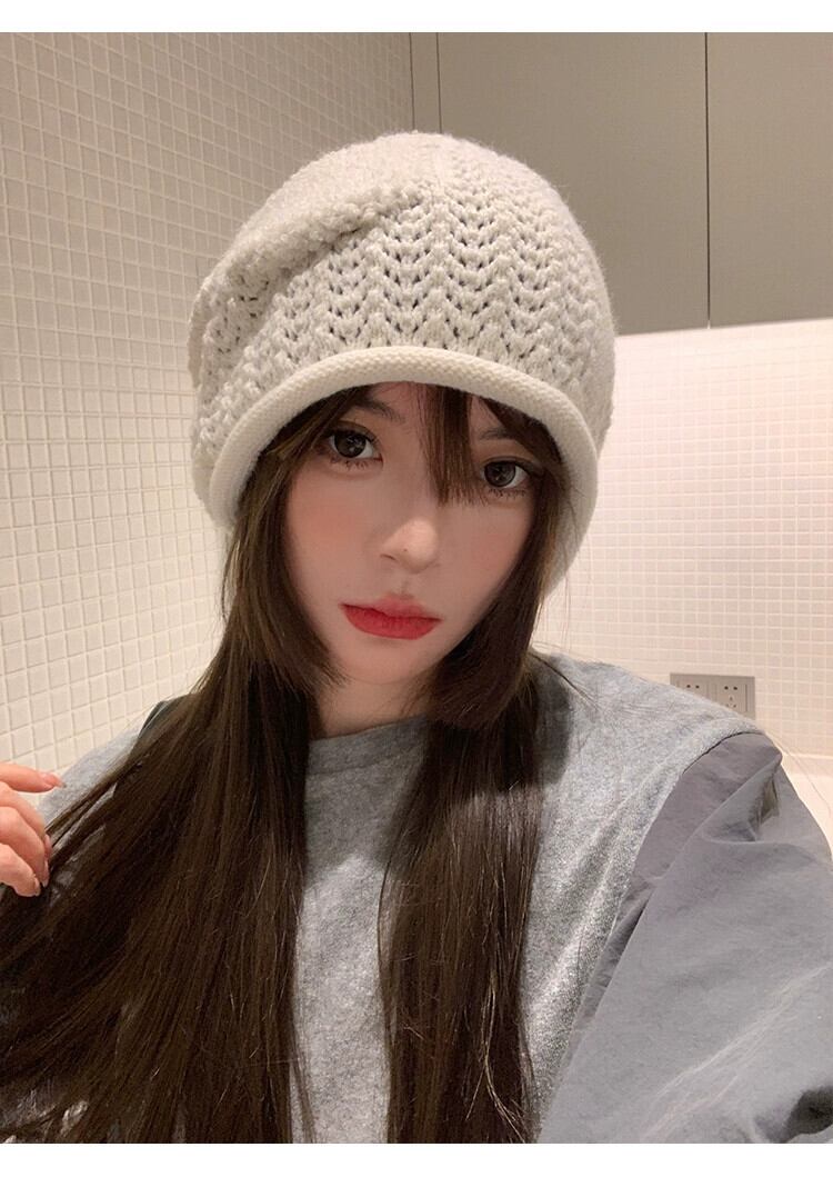 緩い大きな頭囲ニットウール帽子女性の秋と冬暖かいパイル帽子顔見せ小さな多用途コールド帽子監禁帽子 オータム 秋物 ウィンター 冬物 15dd62969393334