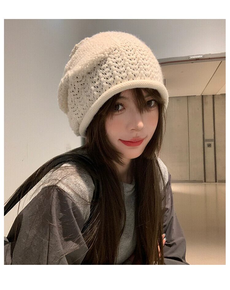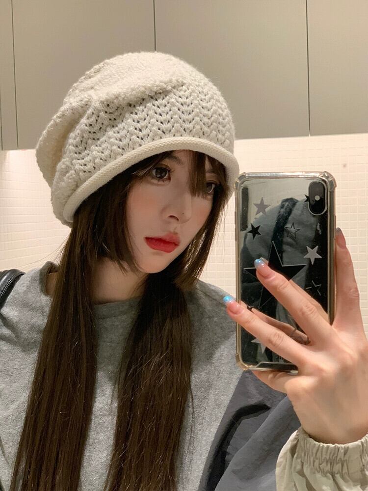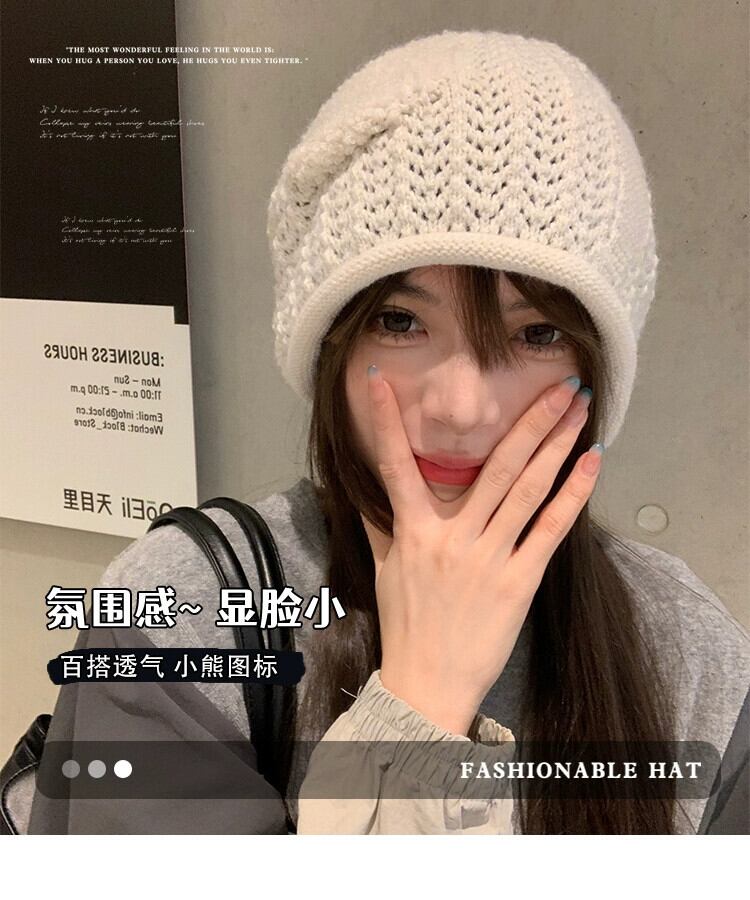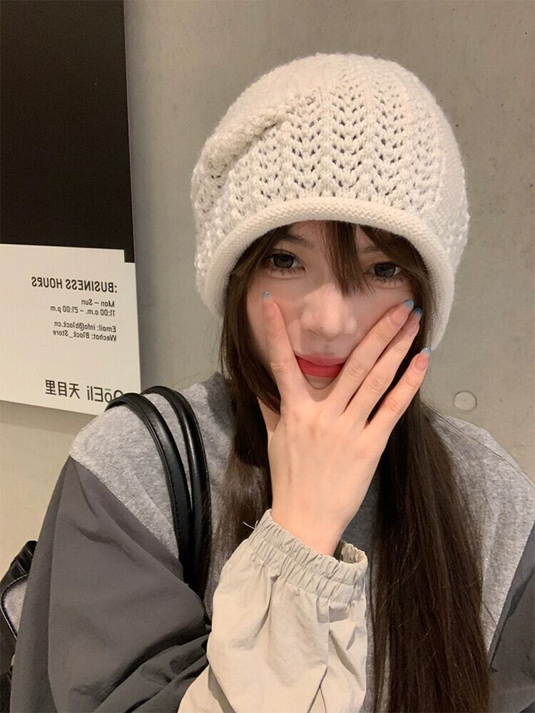 緩い大きな頭囲ニットウール帽子女性の秋と冬暖かいパイル帽子顔見せ小さな多用途コールド帽子監禁帽子 オータム 秋物 ウィンター 冬物 15dd62969393334