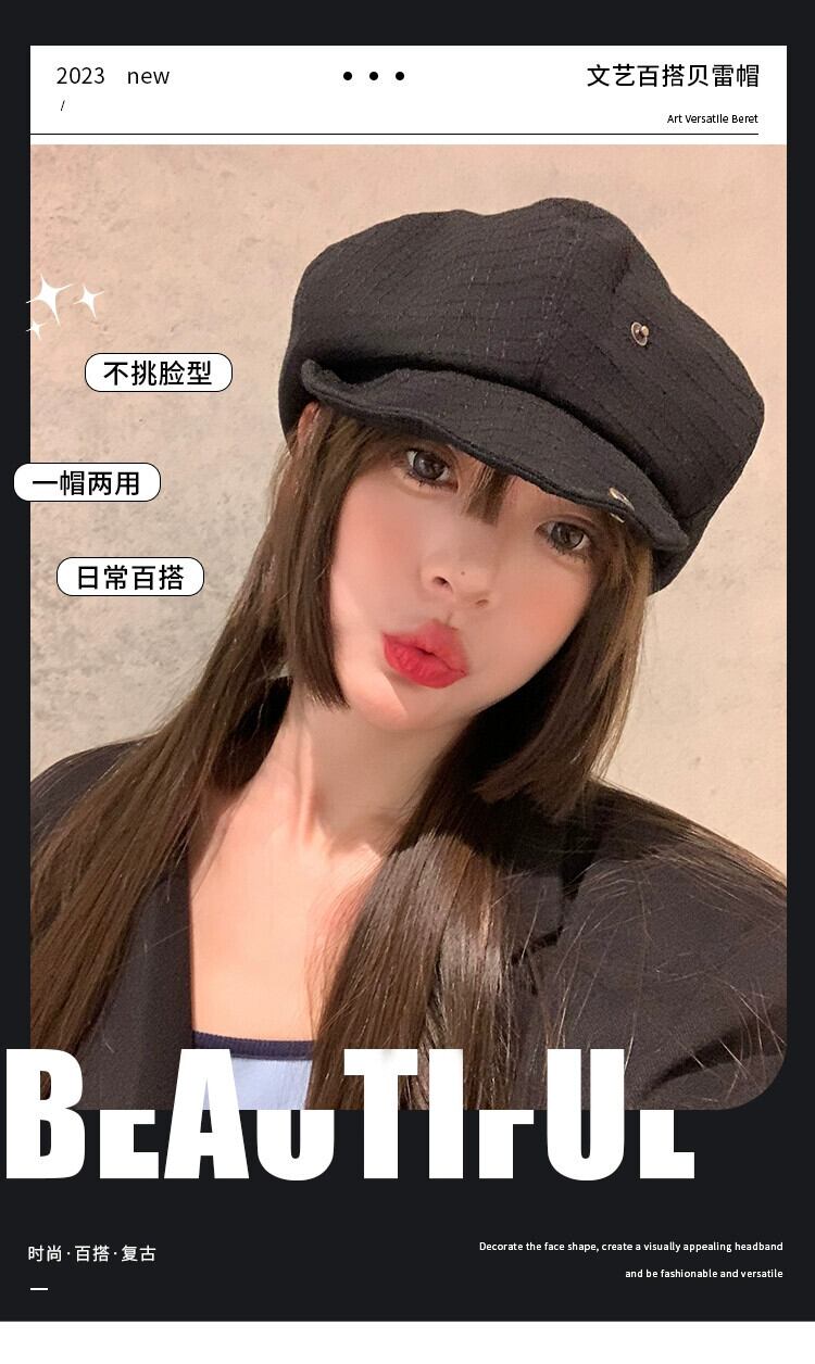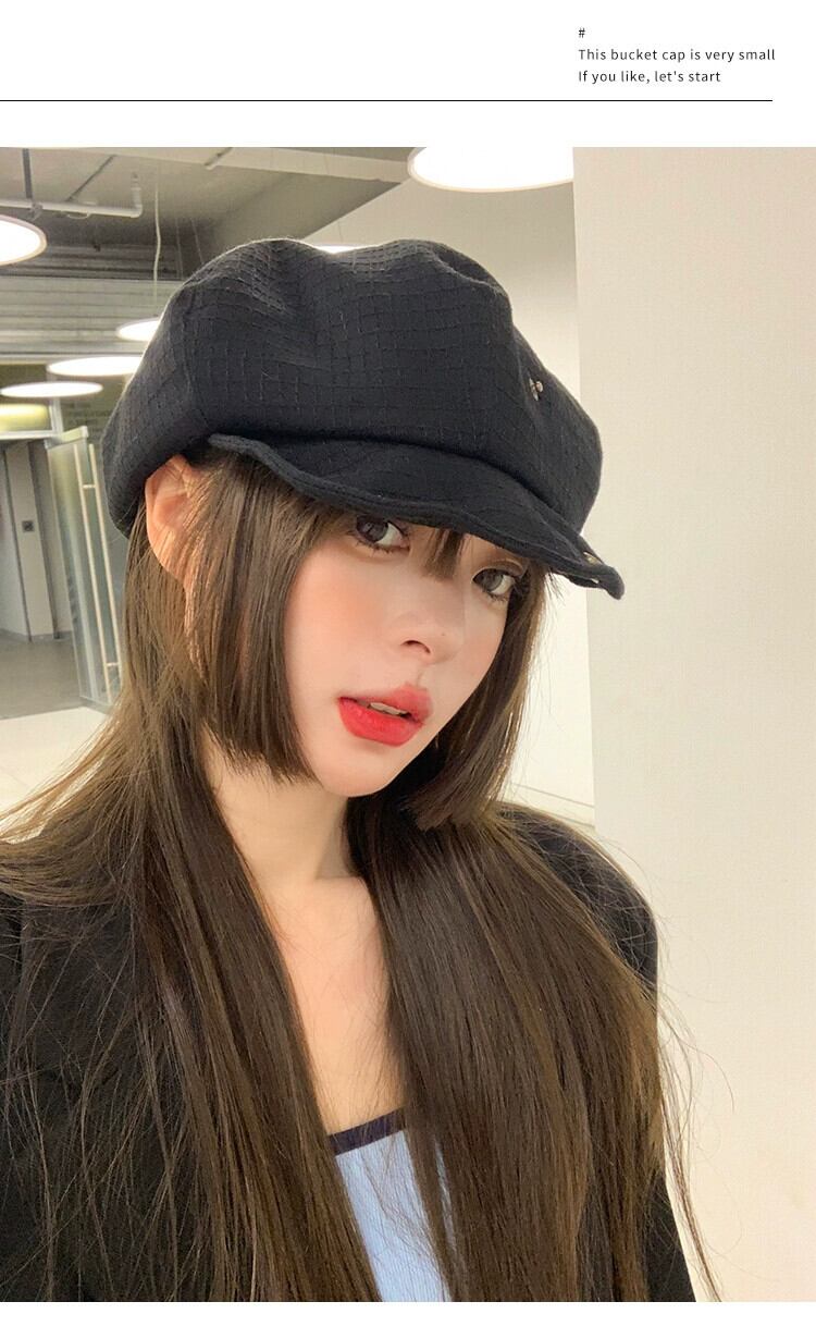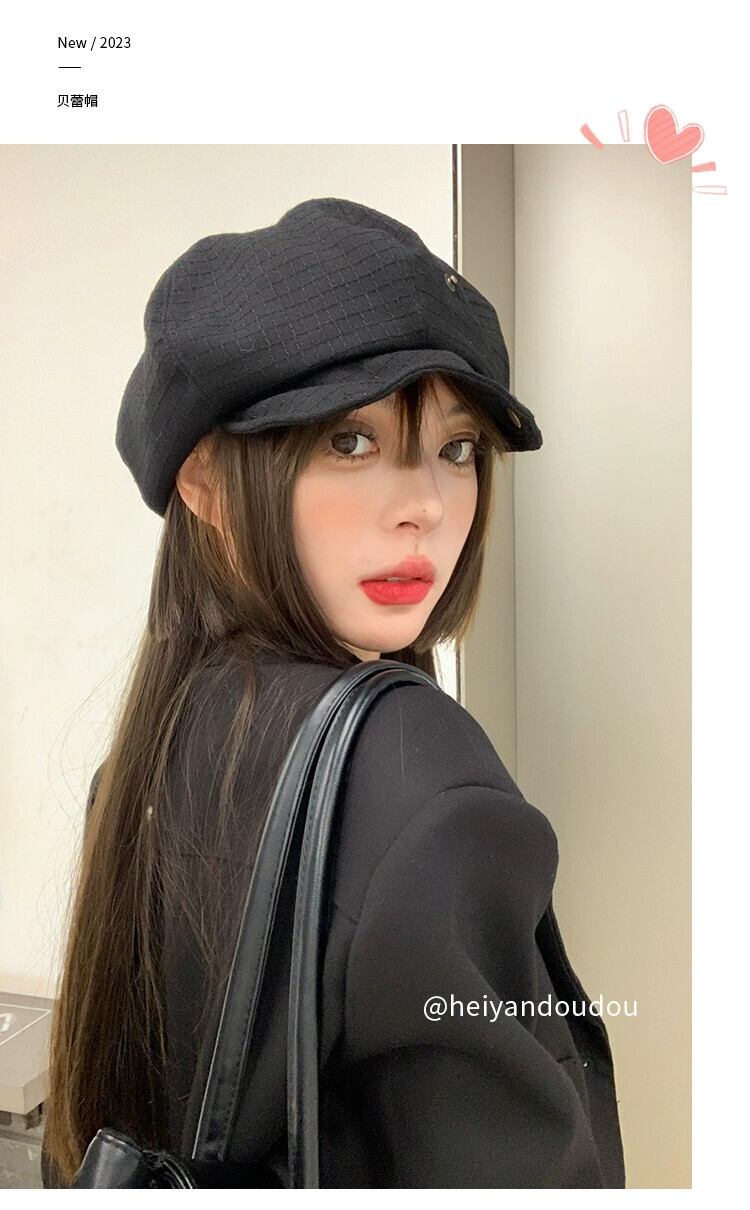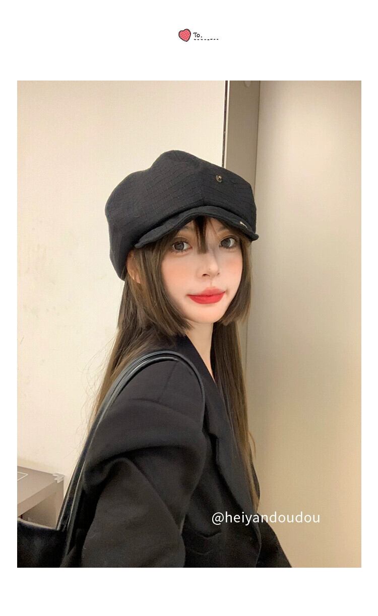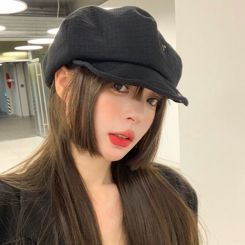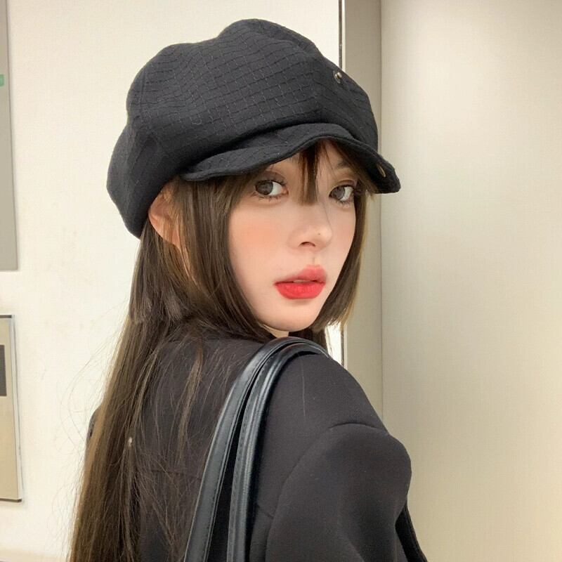 黒八角形帽子女性 ese スタイルオールマッチ顔見せ小さな雲帽子レトロインターネット有名人ベレー帽画家帽子キャスケット帽子トレンディ ブラック ベレット ヘアアクセサリー 15dd13047666404