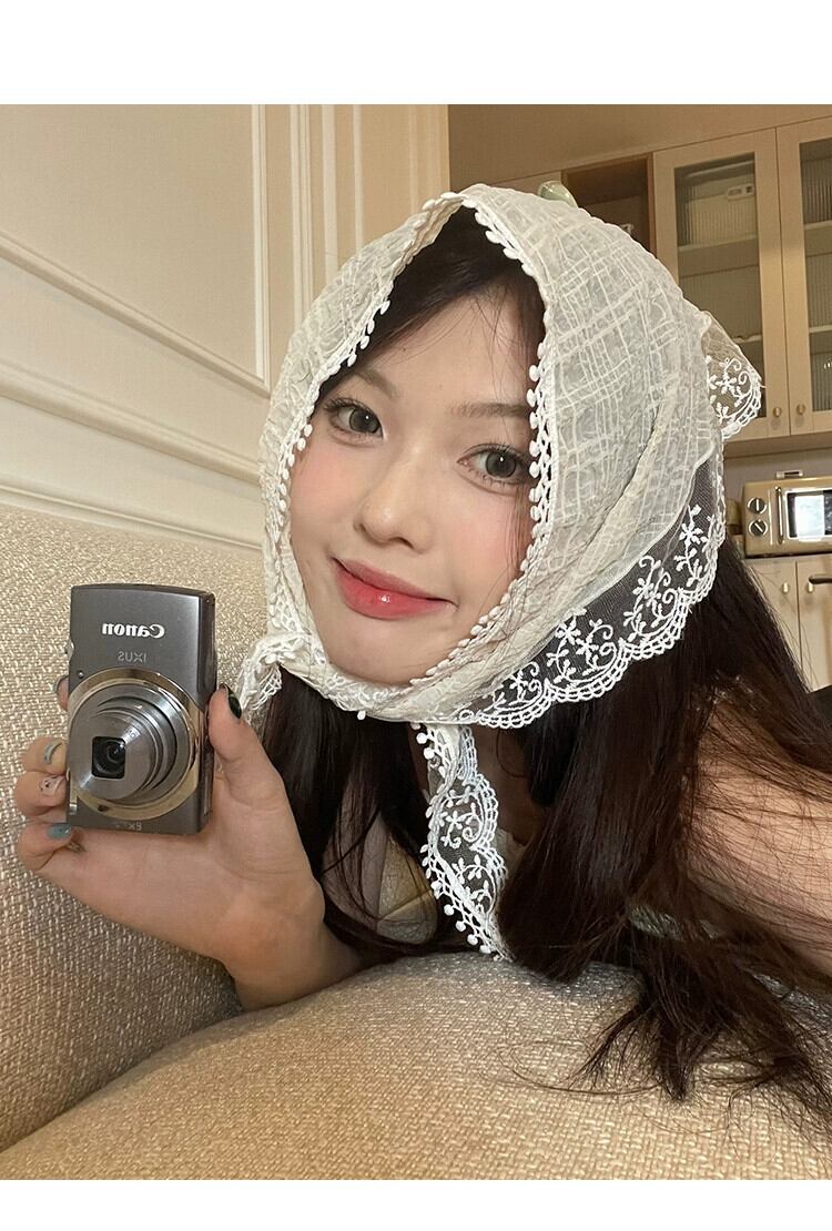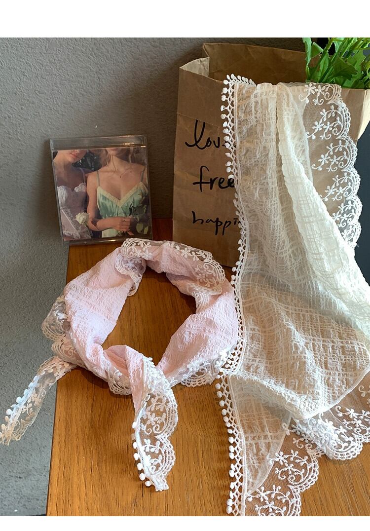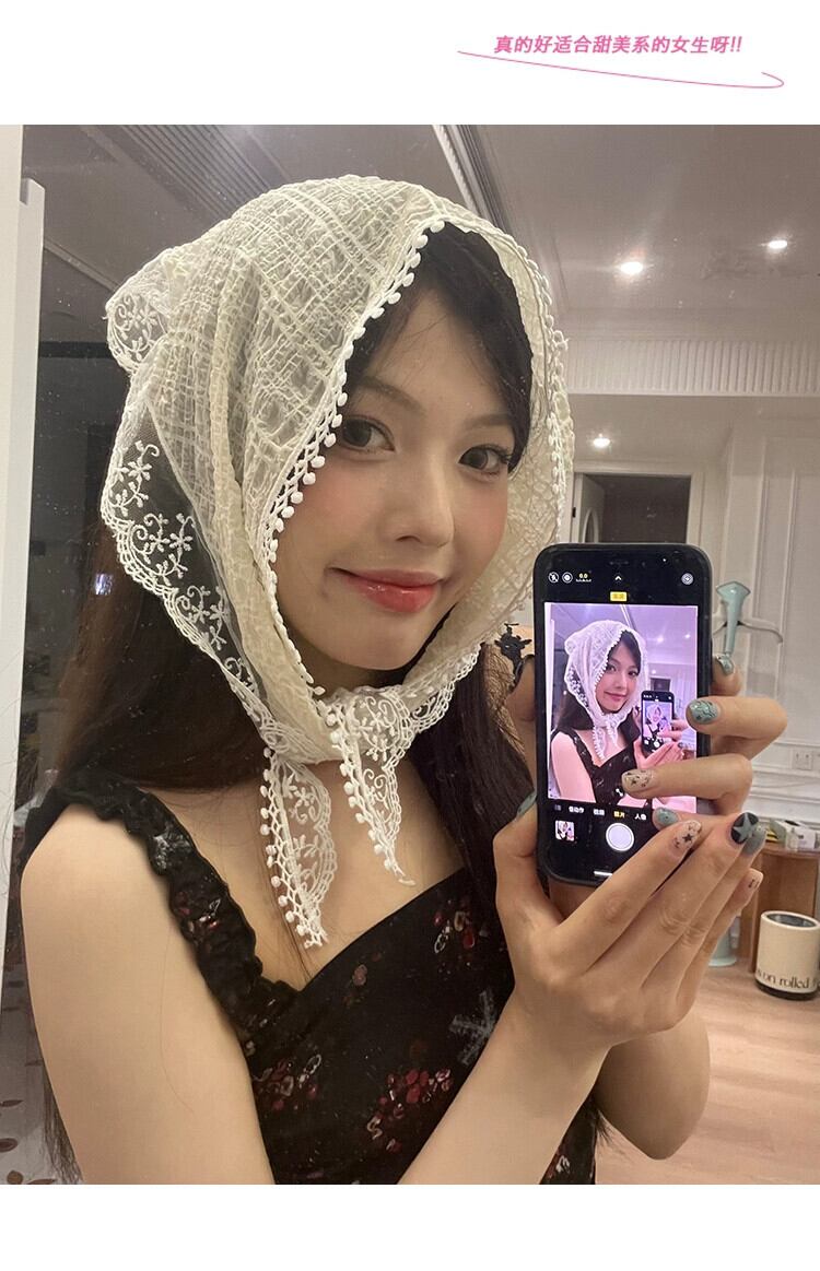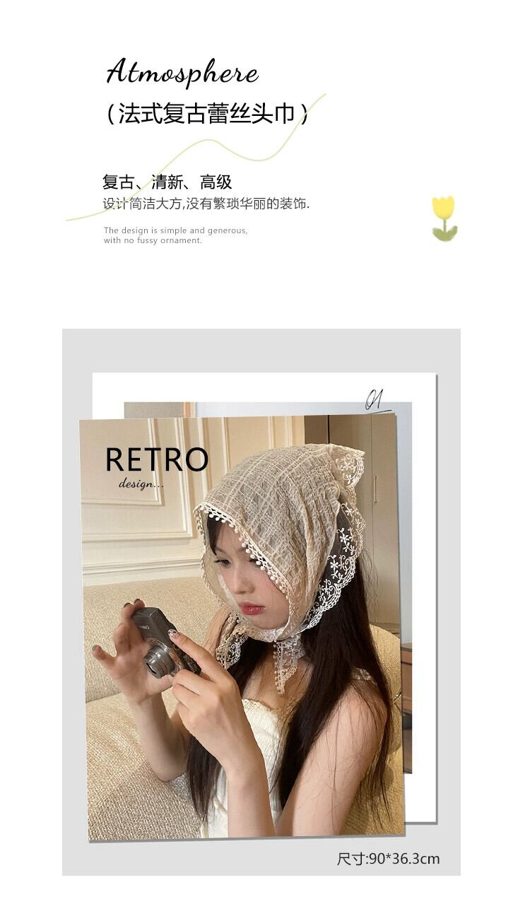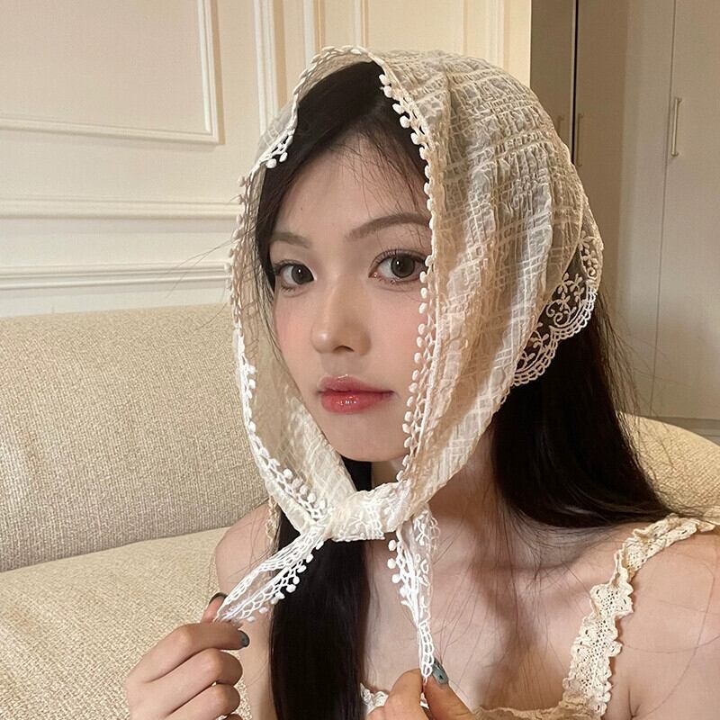 フレンチベージュレースフラワーヘッドスカーフ三角スカーフヘッドバンド森シルクスカーフオールマッチ頭飾りシーサイドpoスカーフ ヘアバンド ヘアアクセサリー フラワーデザイン 15dd73760206496