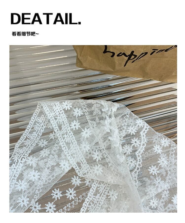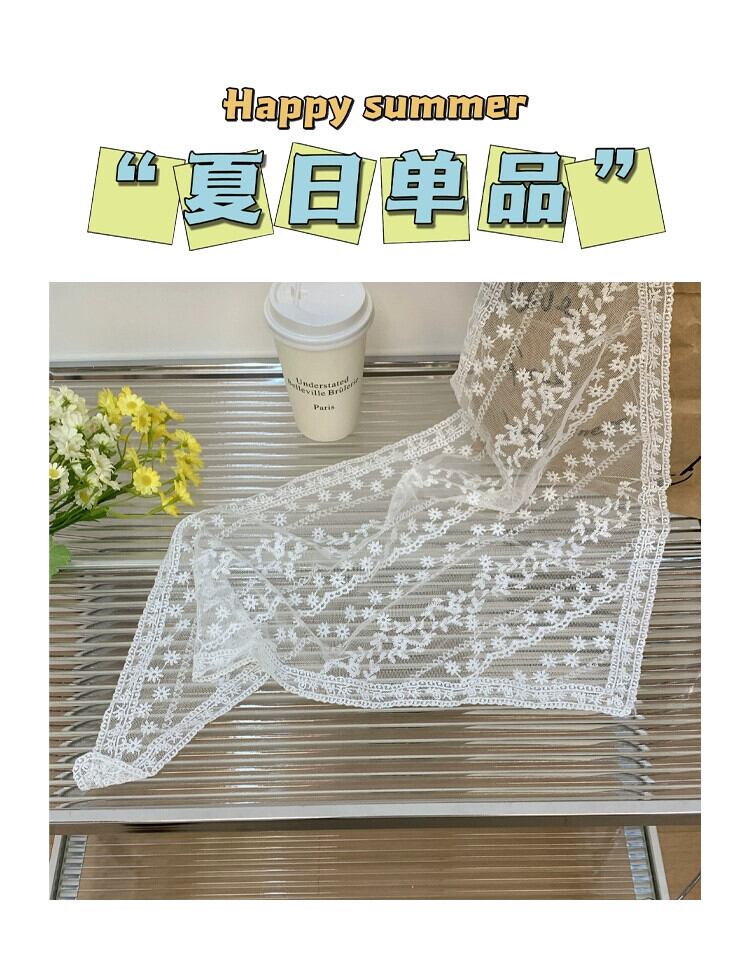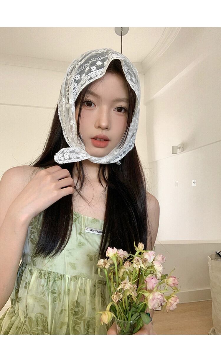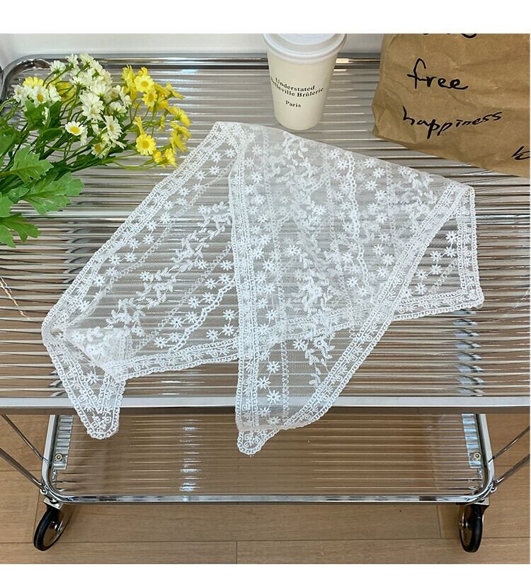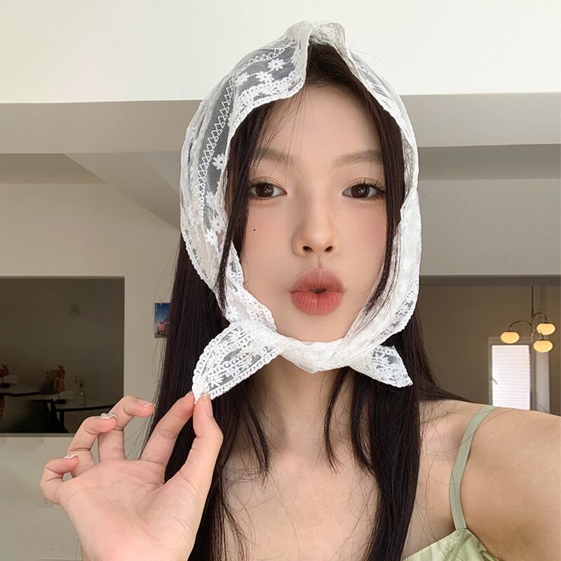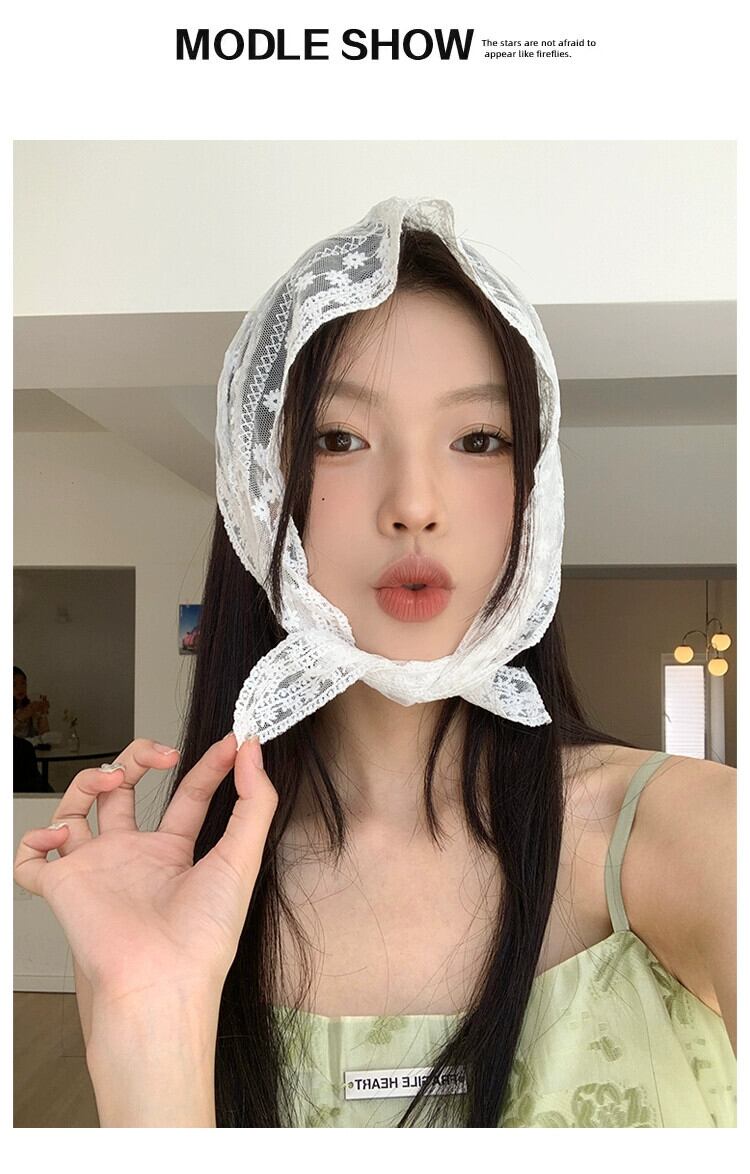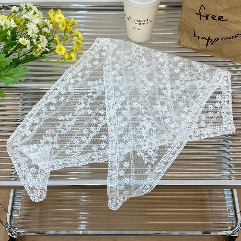 フランスの白いシルク スカーフの女性、サマー レース、甘い髪の束ね、リボン、三角スカーフ、薄いセクション、ポー撮影、インターネットの有名人 ホワイト 大人ガーリー スウィート キュート カジュアル 夏物 15dd66629474374