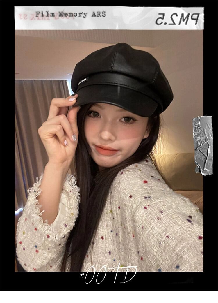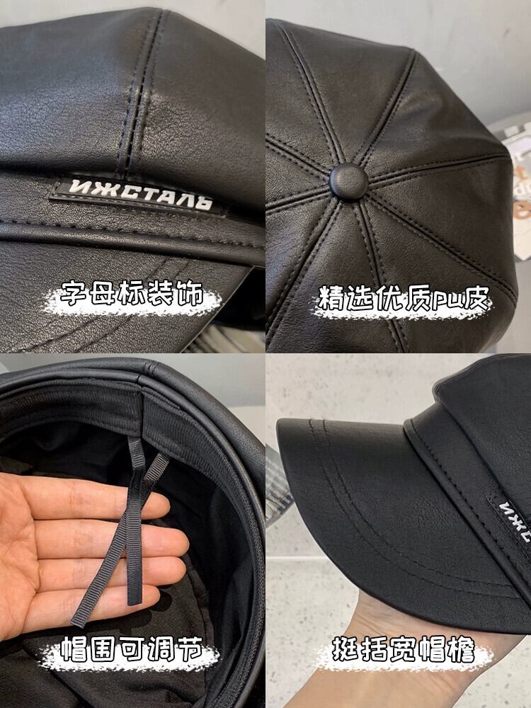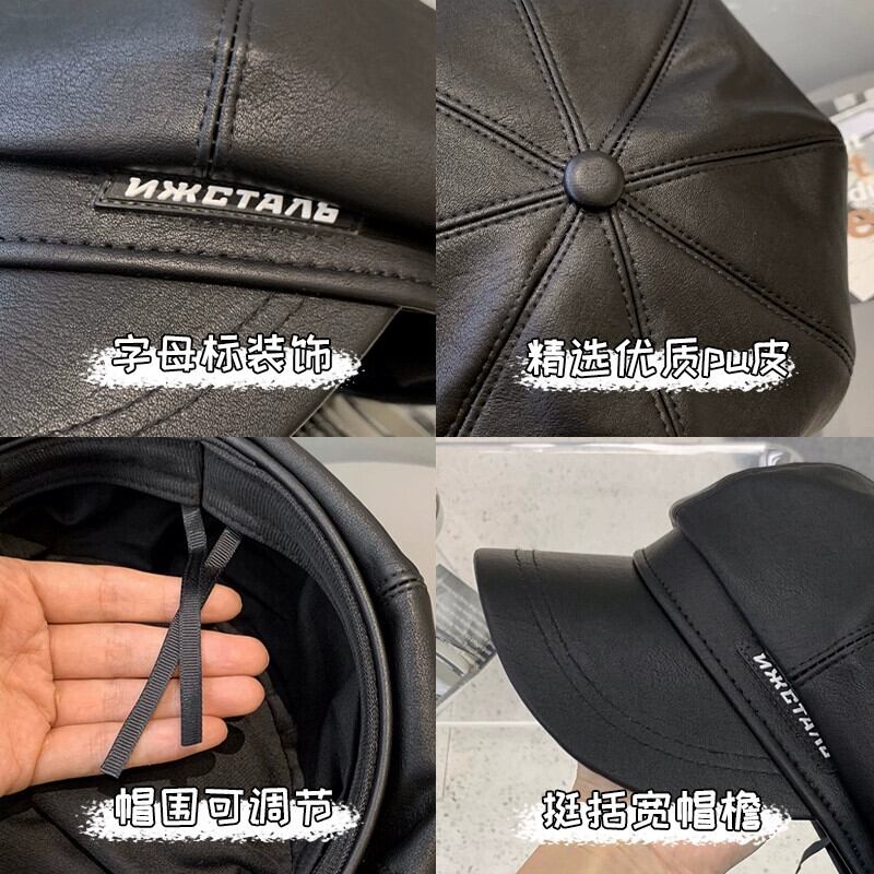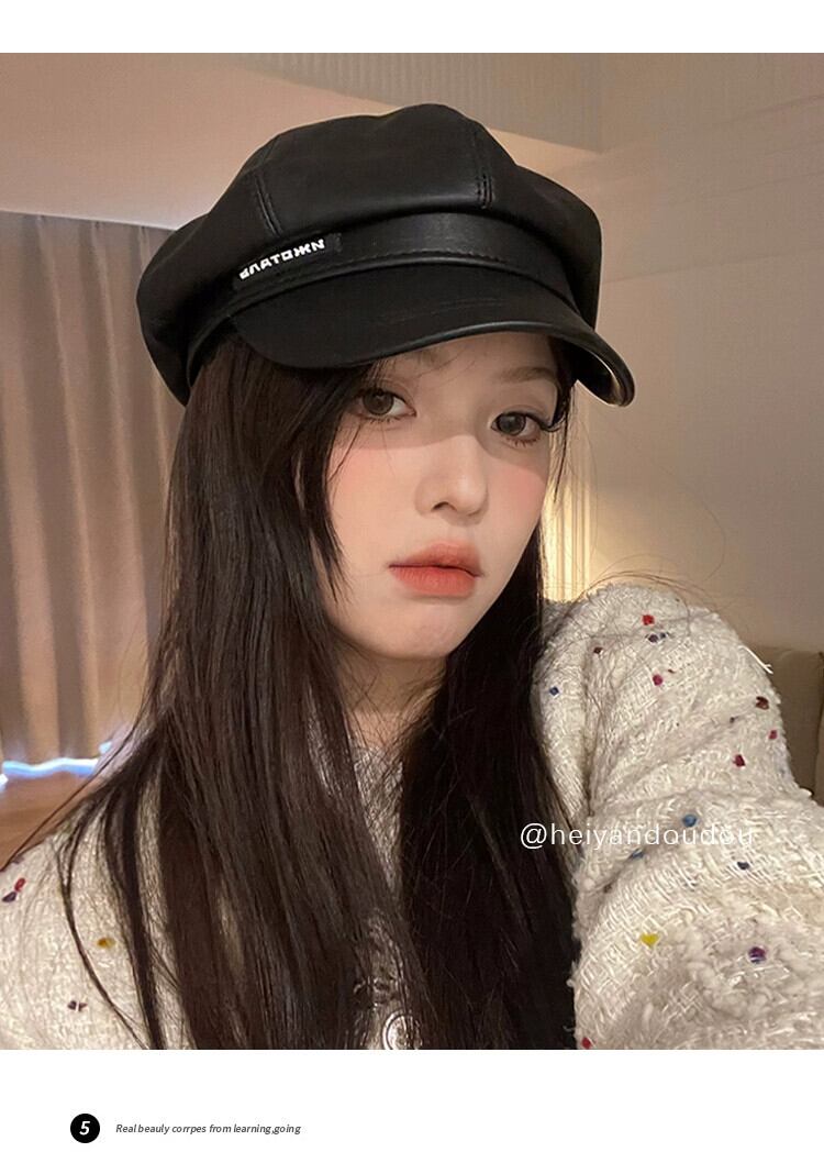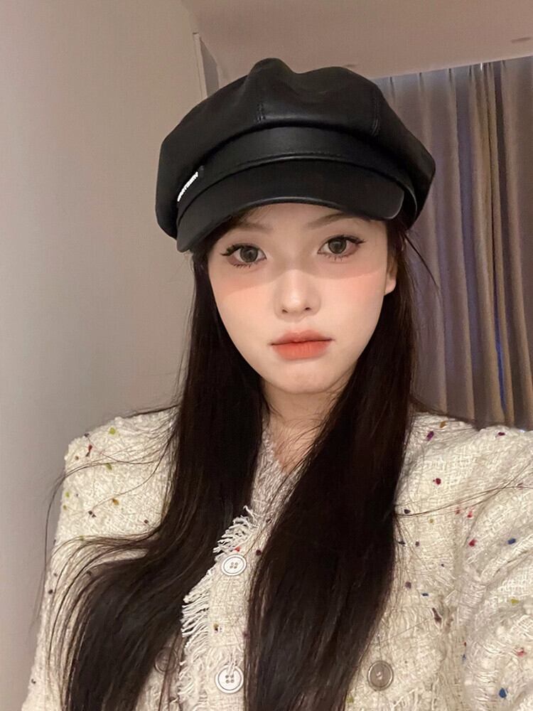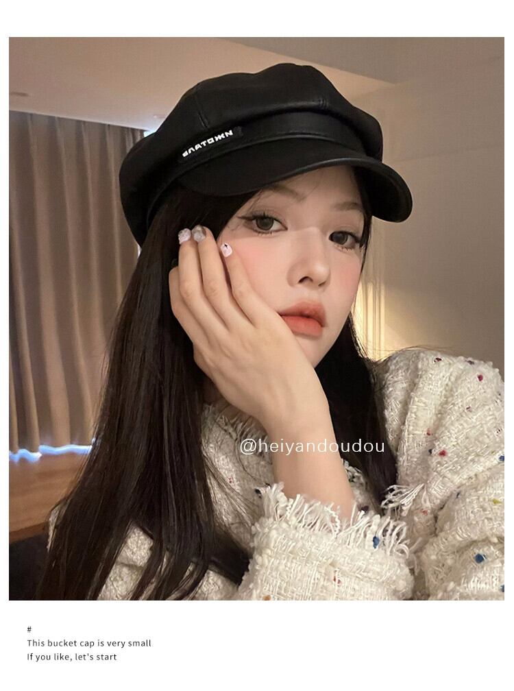 黒 pu レザー八角形の帽子顔小さな新しいスタイル英国スタイルのレトロな春と秋の無地メイクキャスケット革帽子ベレー帽女性 ブラック スプリング 春物 オータム 秋物 ベレット ヘアアクセサリー 15dd47526113241
