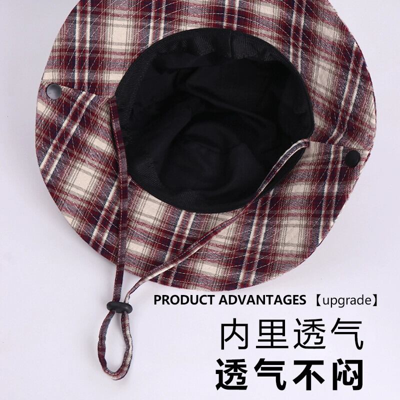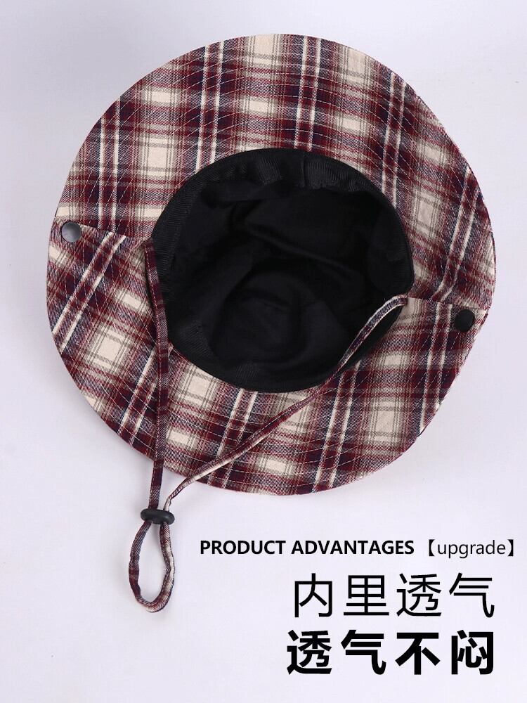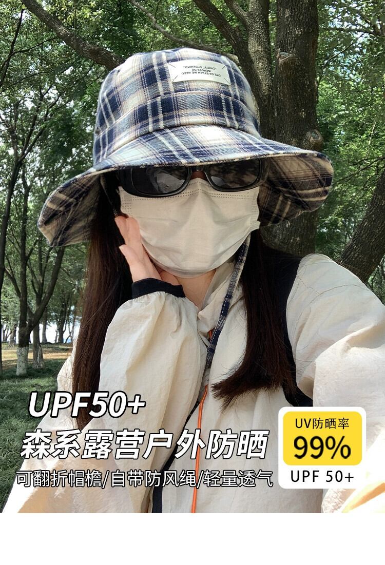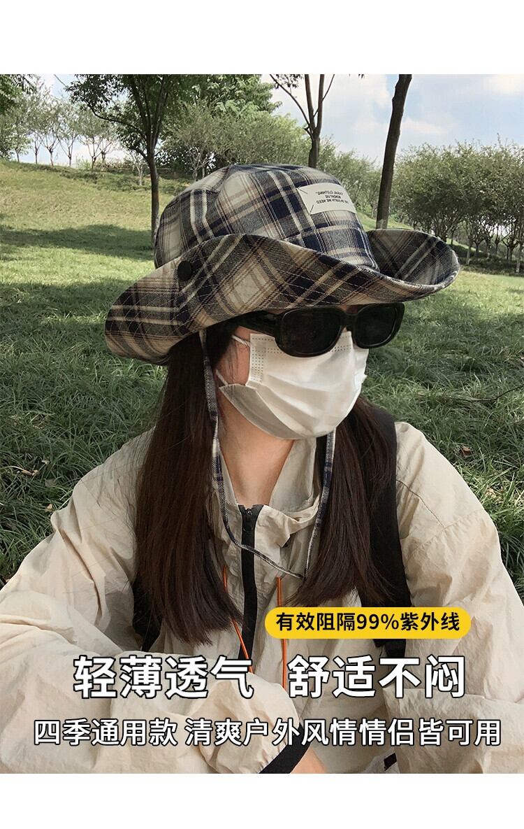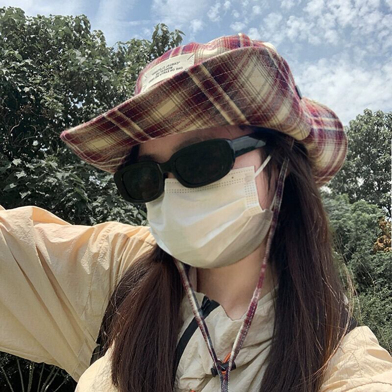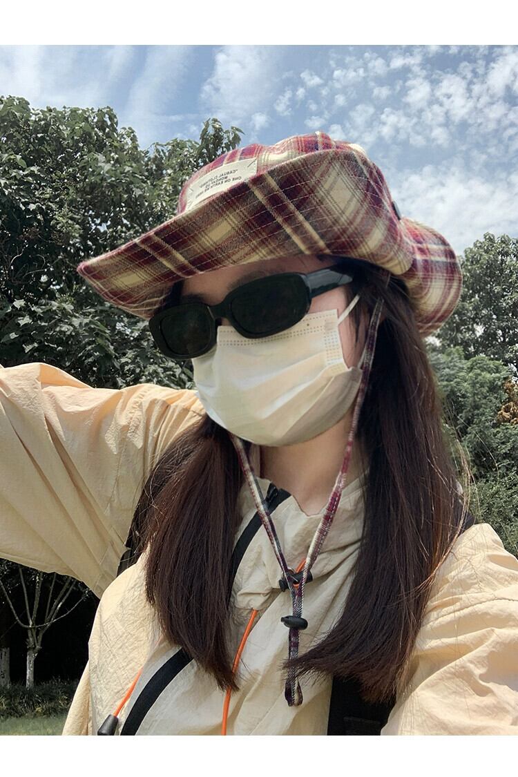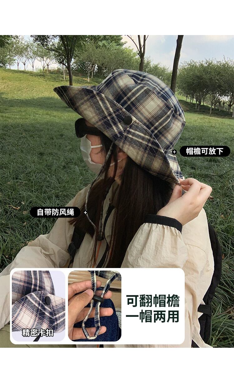 ese ニッチチェック柄フィッシャーマンハット女性の夏のレトロオールマッチ日よけ帽子屋外キャンプハイキングハイキング帽子日焼け止め サマー 夏物 15dd13348734027
