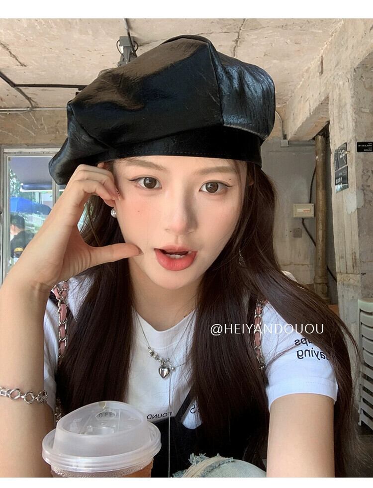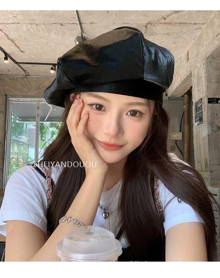 大きいバージョンのニッチ黒ベレー帽女性の夏万能イン丸顔インターネット有名人の Yunduo 画家の帽子は顔とトレンディを示します ブラック サマー 夏物 ベレット ヘアアクセサリー 15dd31137535098