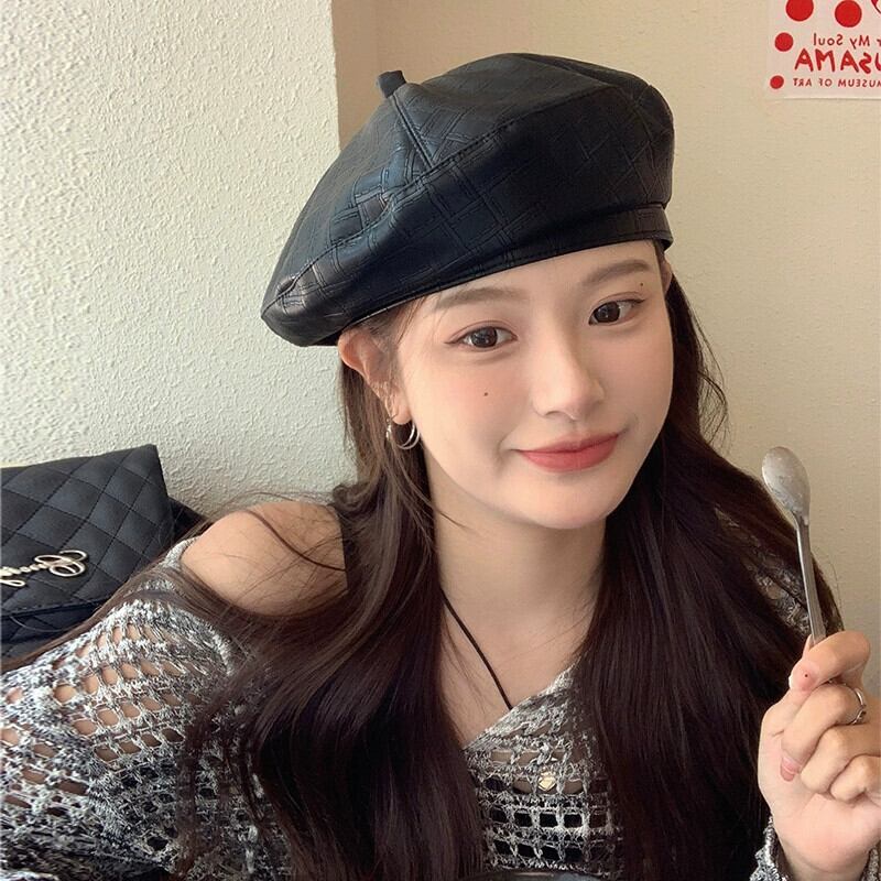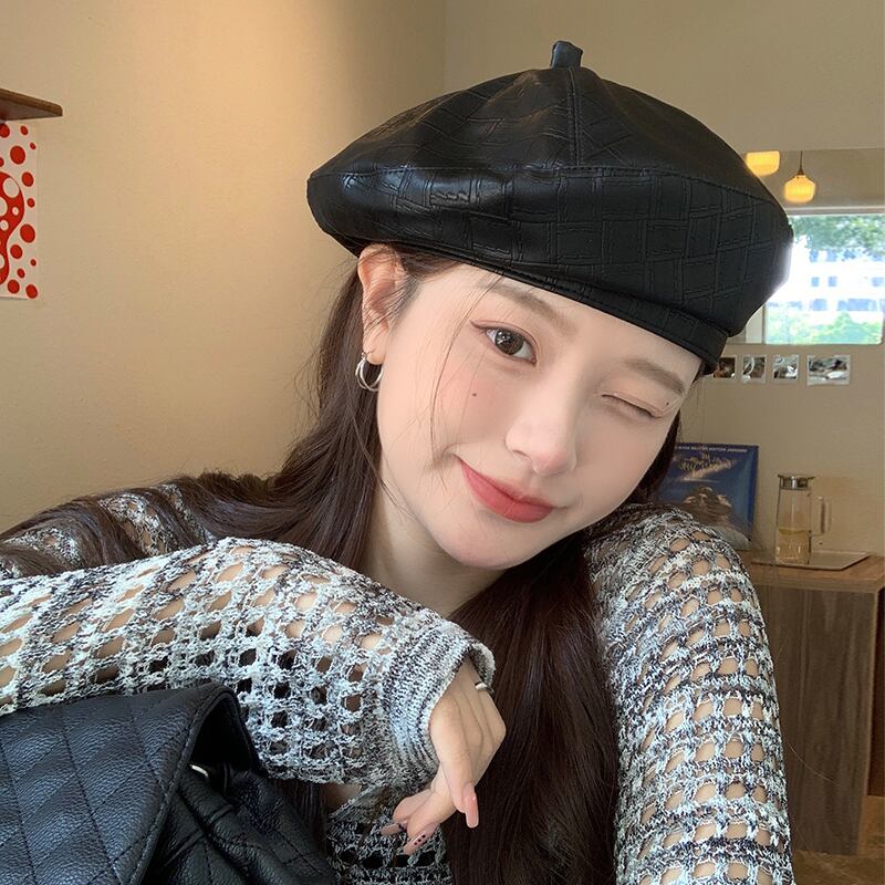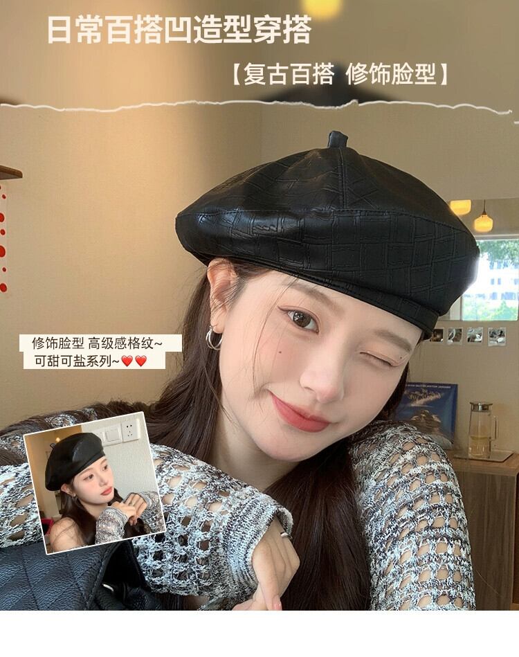 レトロレザーベレー帽レディースカジュアル英国八角形帽子春秋バージョントレンディな多用途PUレザー多用途画家の帽子 スプリング 春物 オータム 秋物 ベレット ヘアアクセサリー 15dd2990561165