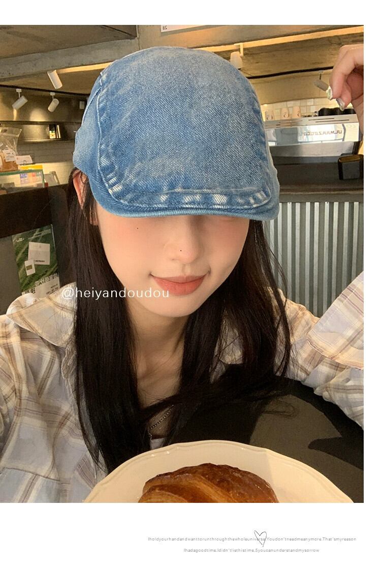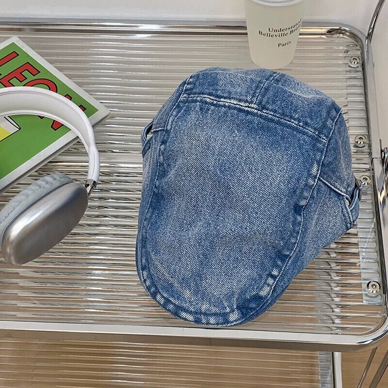 レトロウォッシュオールドデニム耐摩耗ベレー帽女性夏香港スタイル英国ストリートトレンドワードキャップカモノハシキャップ サマー 夏物 ベレット ヘアアクセサリー 15dd87621868926