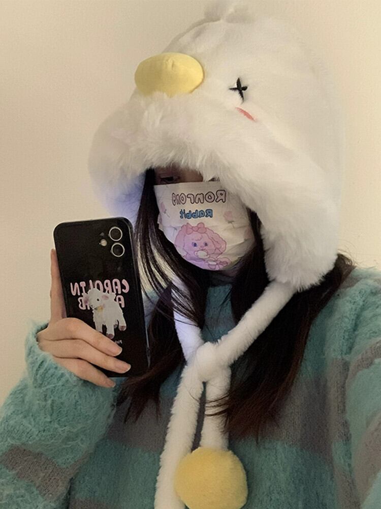 秋と冬のかわいい白い小さな黄色のアヒルの帽子ヘッドカバーボールハット暖かい豪華な肥厚耳保護帽子サイクリング帽子トレンディな ホワイト 大人ガーリー スウィート キュート カジュアル オータム 秋物 ウィンター 冬物 15dd4304798675