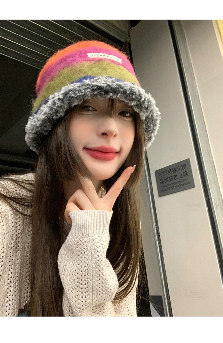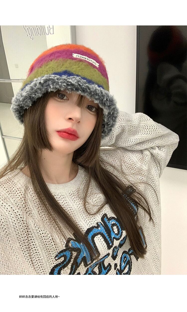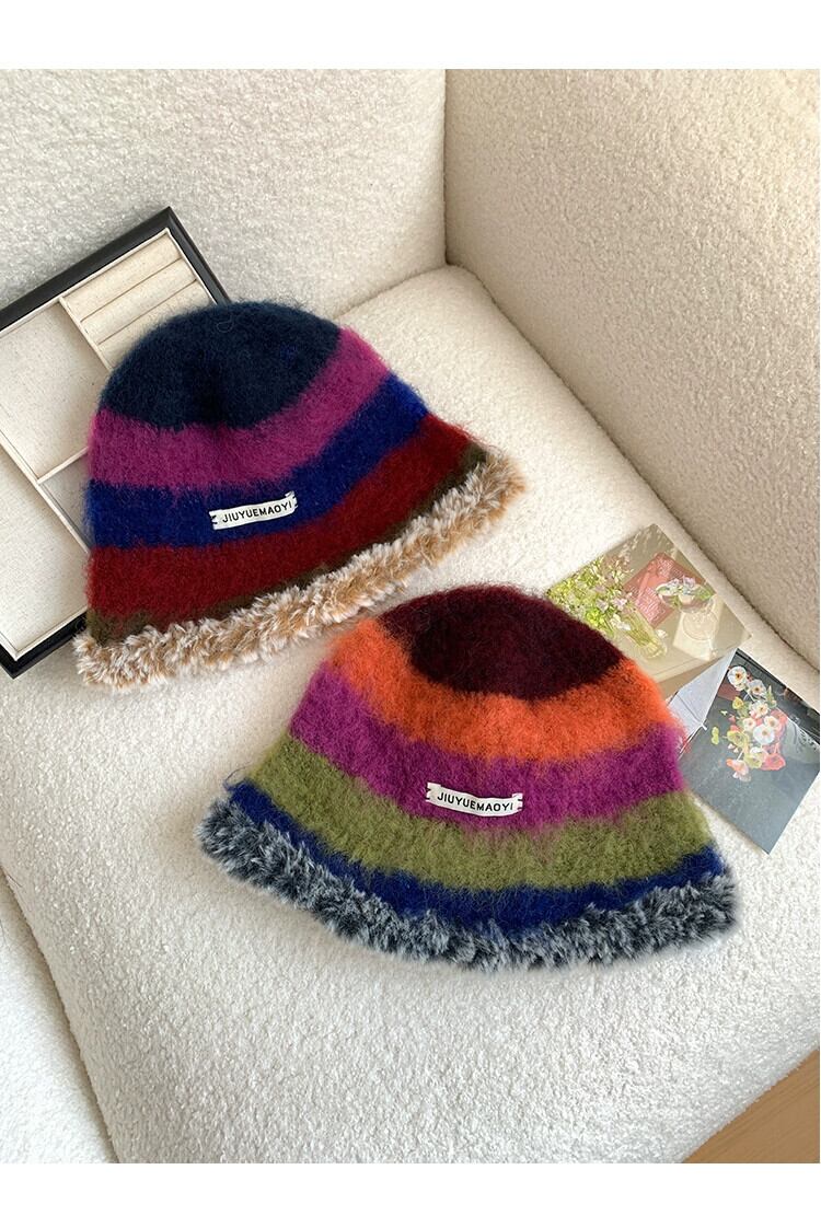 秋と冬の新しい帽子女性のレトロなニッチデザインニット毛皮のような漁師の帽子カラフルな暖かい耳保護豪華な帽子 オータム 秋物 ウィンター 冬物 15dd20784605382