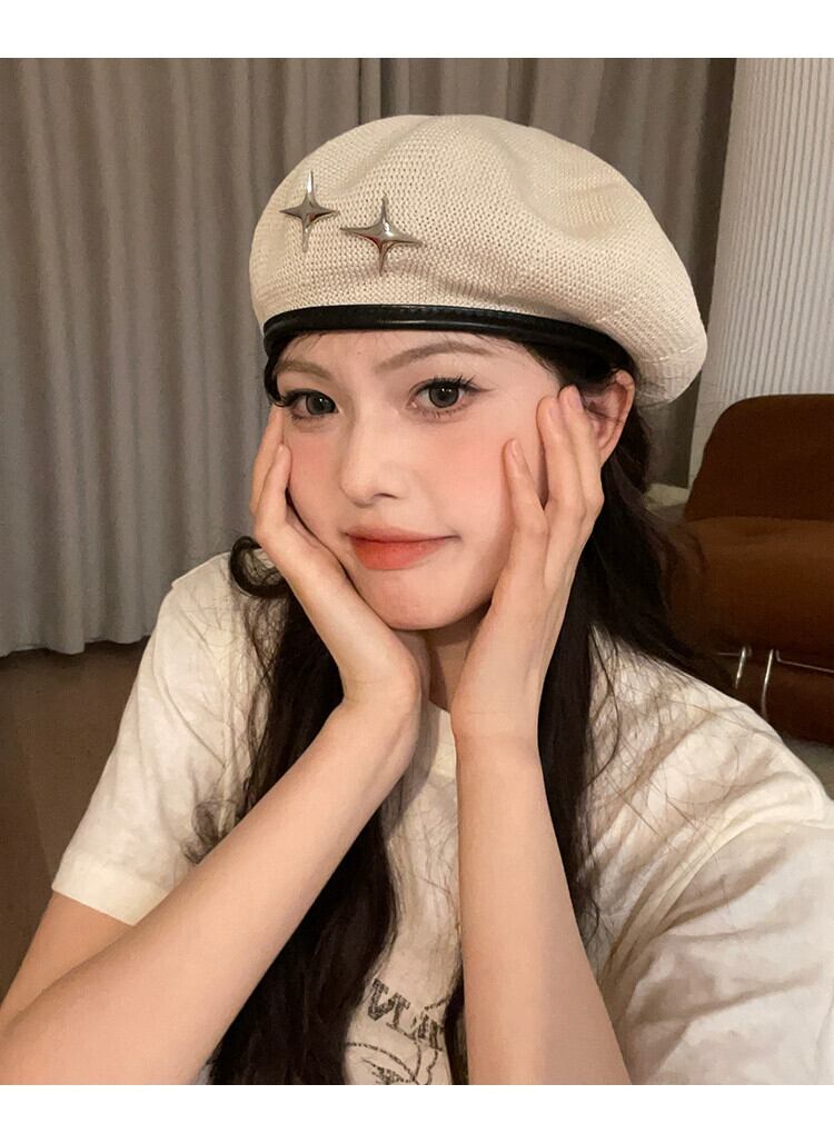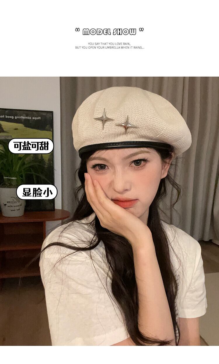 ese ベレー帽、女性の春と秋のスター、薄いイギリスのレトロなイン、インターネット有名人の顔、小さなニット、画家の帽子、トレンド スプリング 春物 オータム 秋物 ベレット ヘアアクセサリー 15dd17398843514