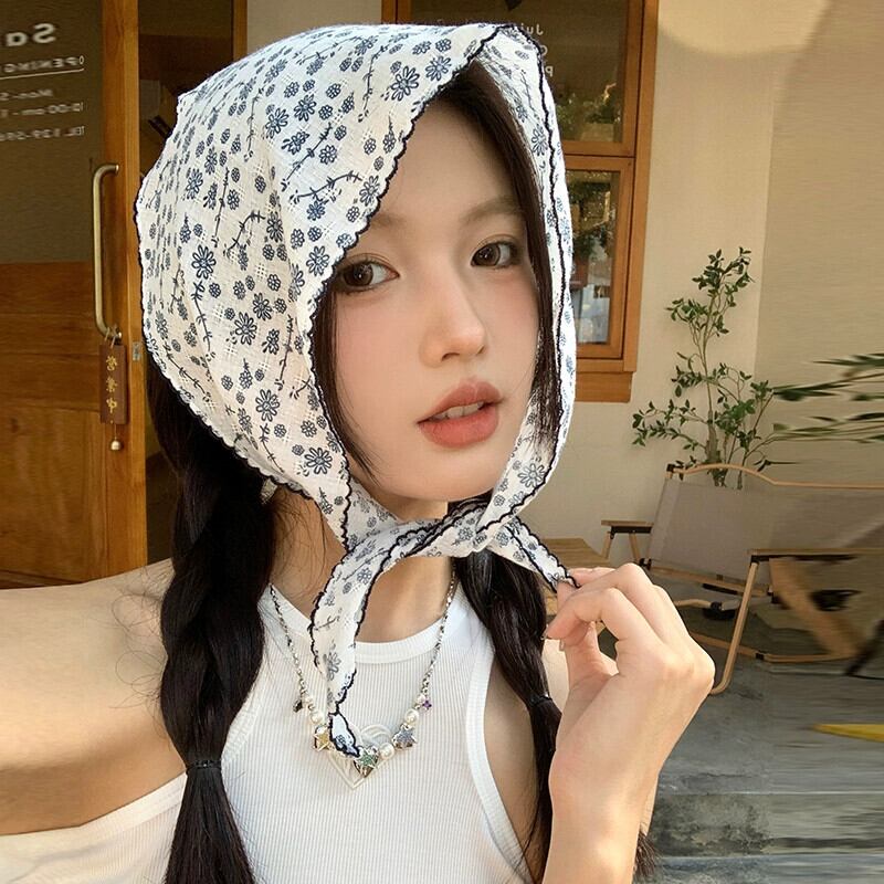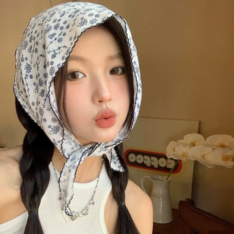 2023 インターネット有名人の三角シルクスカーフ女性の雰囲気花スカーフラップヘッドバンド Po 装飾ヘッドバンド ヘアバンド ヘアアクセサリー 花柄 15dd64425362137