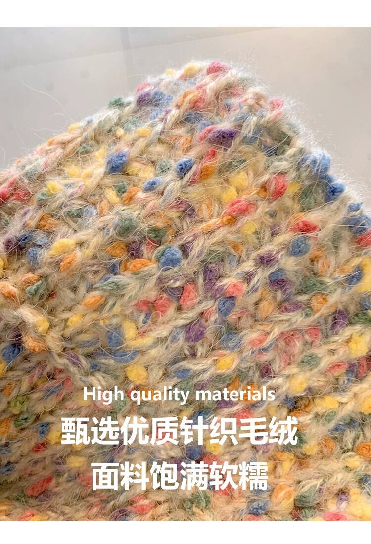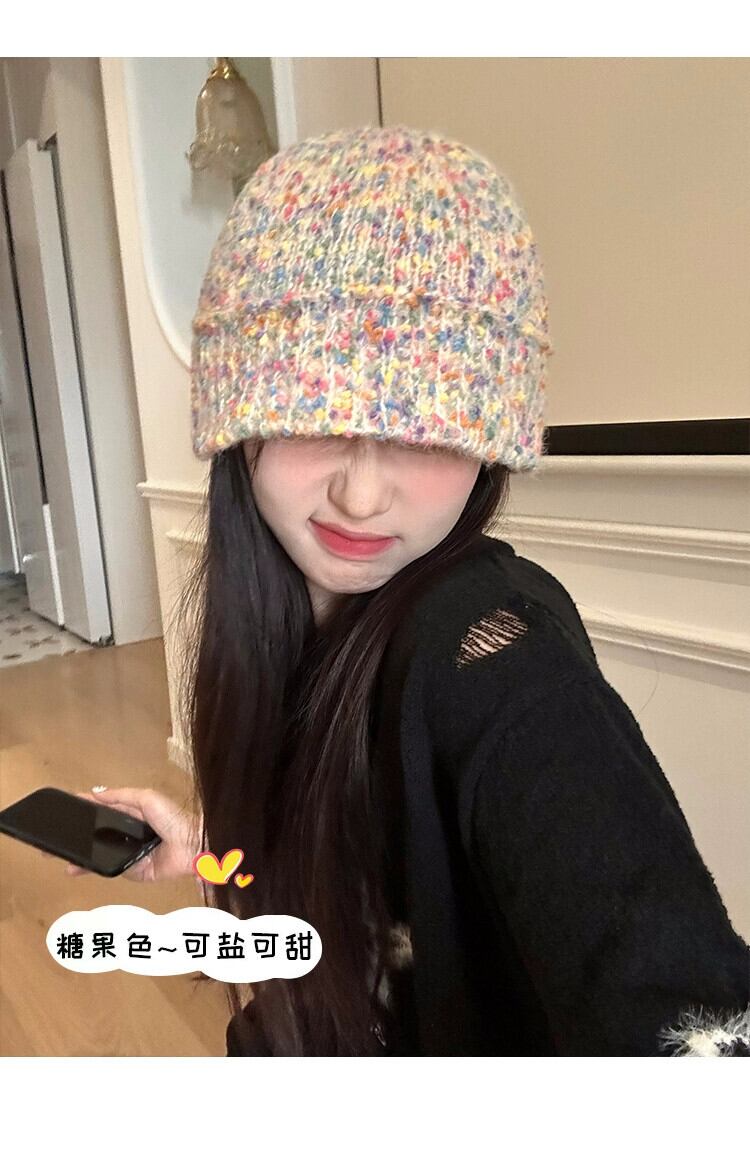 甘くてかわいいレインボーウールの帽子の女性の秋と冬暖かい耳保護ビッグヘッドハットニット帽子漁師バケットハット 大人ガーリー スウィート キュート カジュアル オータム 秋物 ウィンター 冬物 15dd78628275319