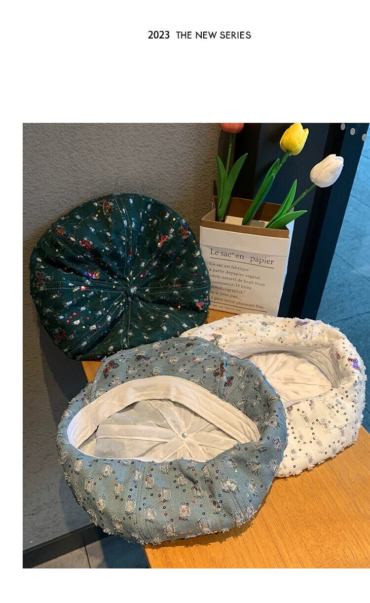 ese y2k ホワイト クラウド ベレー帽 レディース 夏 レトロ ニッチ 顔見せ 小さな スパンコール付き 八角形 帽子 大きな頭のトレンド サマー 夏物 ベレット ヘアアクセサリー 15dd44978526154
