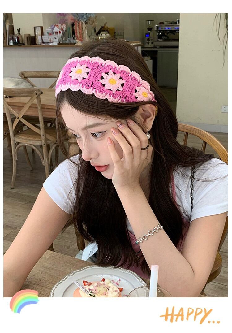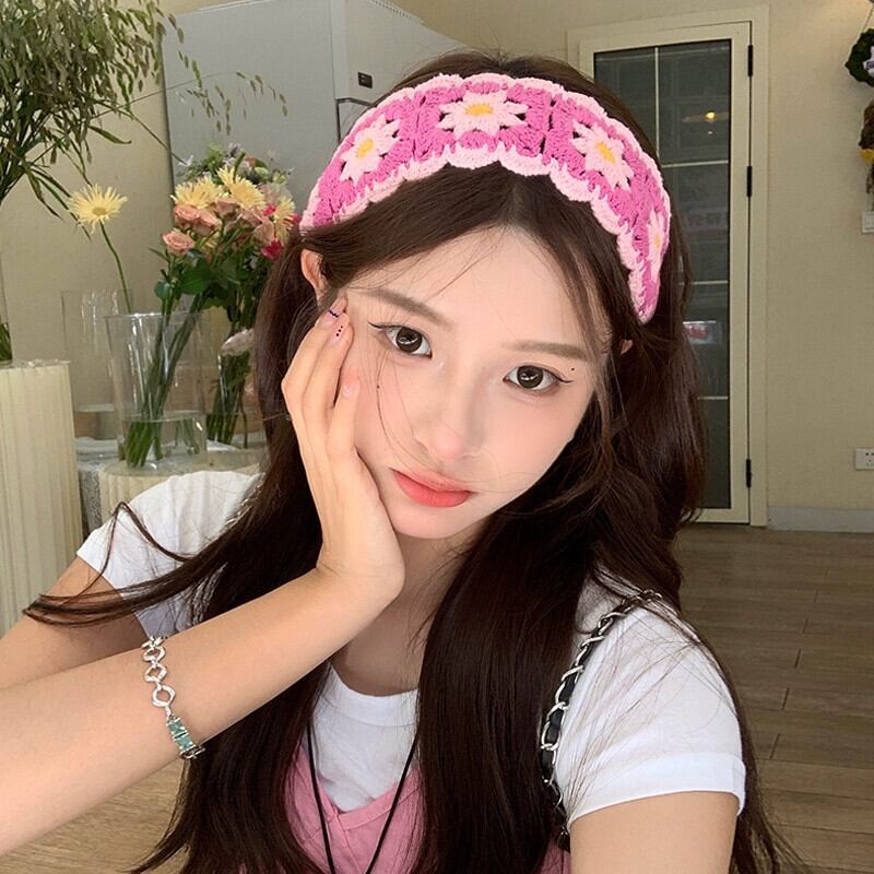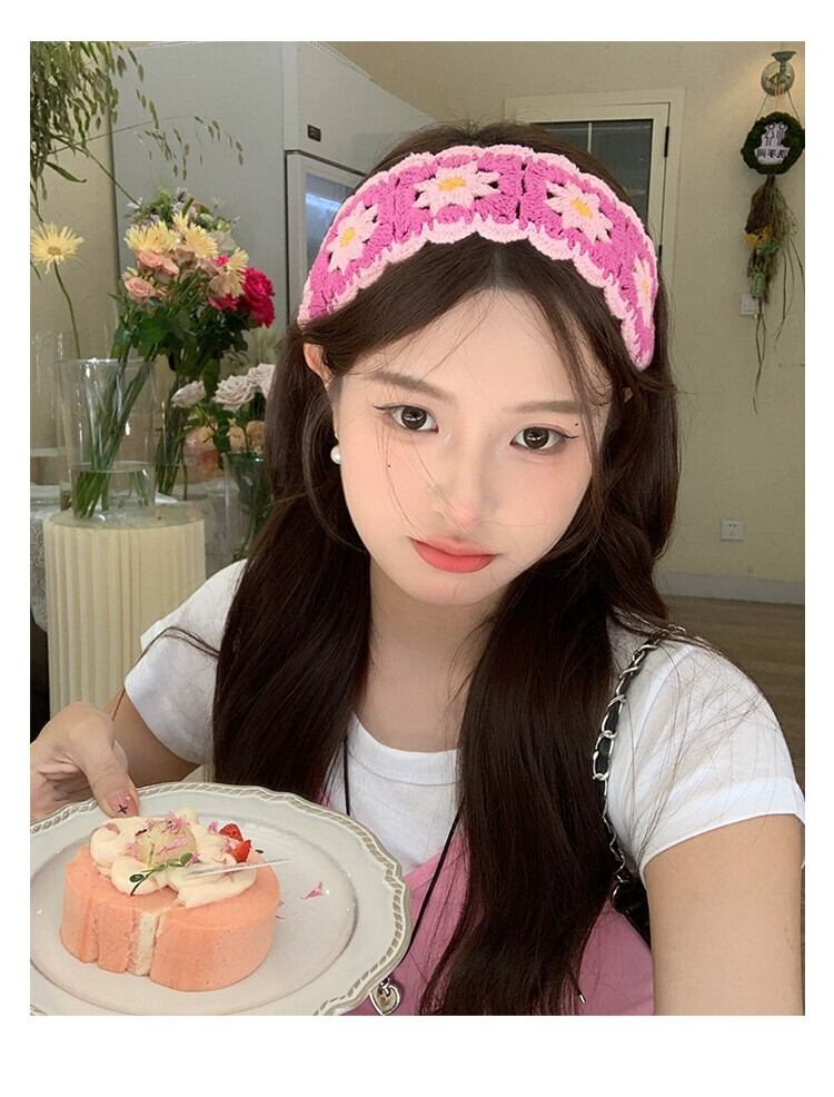 甘くてかわいい手作りウールニットヘッドスカーフレディース、多用途ニットターバン、牧歌的なスタイルの花ポテイクヘッドバンド、トレンディです 大人ガーリー スウィート キュート カジュアル ヘアバンド ヘアアクセサリー フラワーデザイン 15dd17822413380