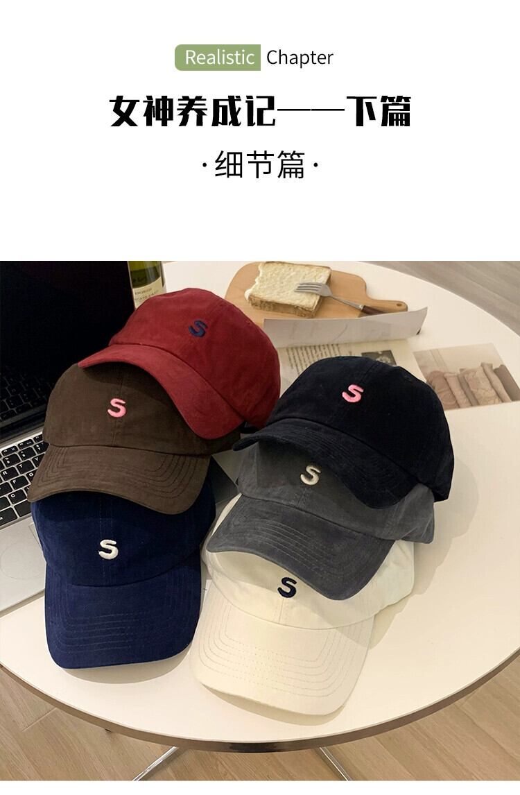 ベースボールキャップ女性 2023 新しいシンプルな S 文字ソフトトップファッションオールマッチブラックフェイス小カップルピークキャップ男性 15dd66317000797