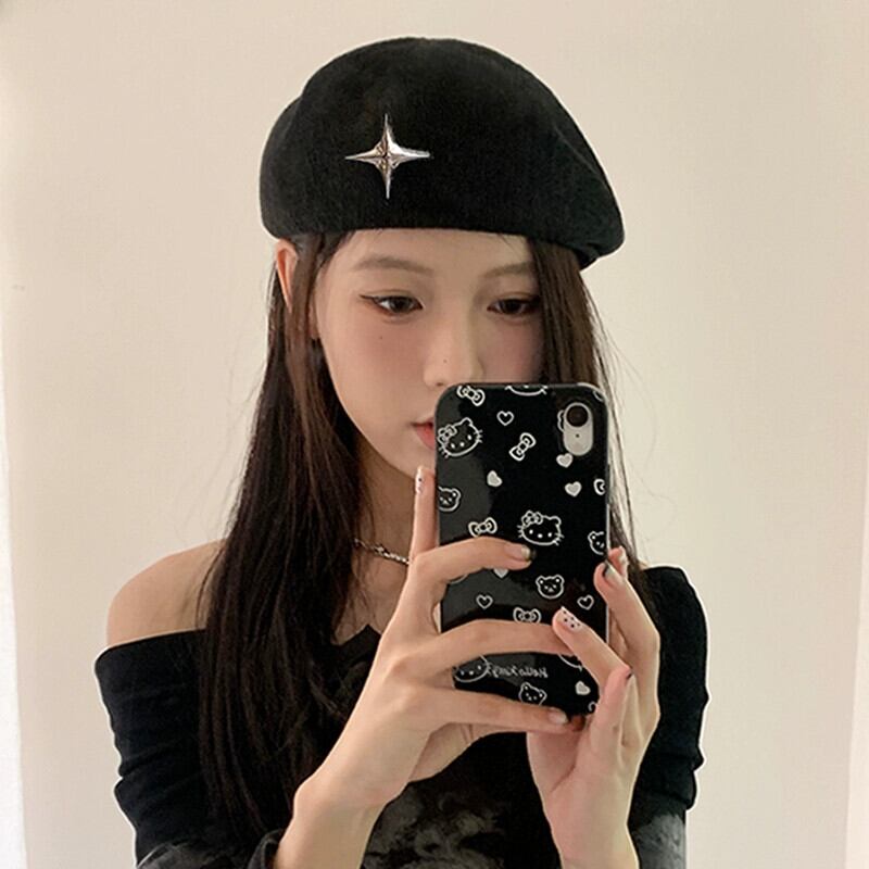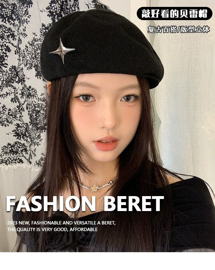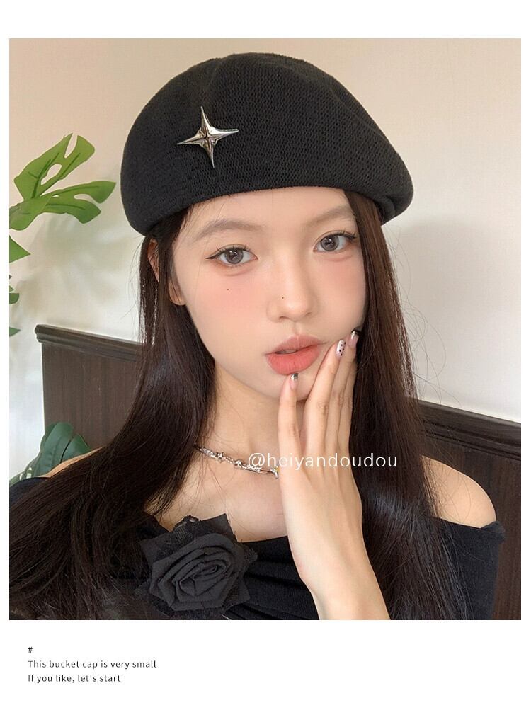 Ins インターネット セレブ ブラック ベレー帽 レディース サマー スタイル 顔見せ 小型 多用途 ペインター ハット エセ カジュアル リバースウェア プログレッシブ ハット トレンド 帽子 夏物 ベレット ヘアアクセサリー 15dd33122169143