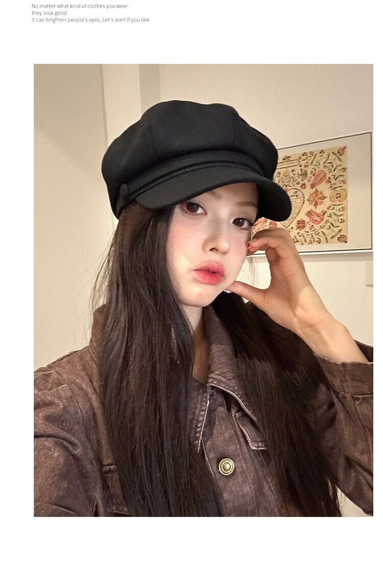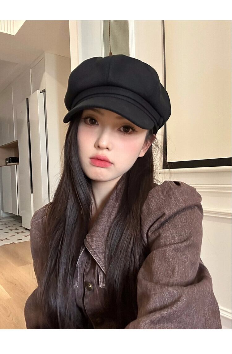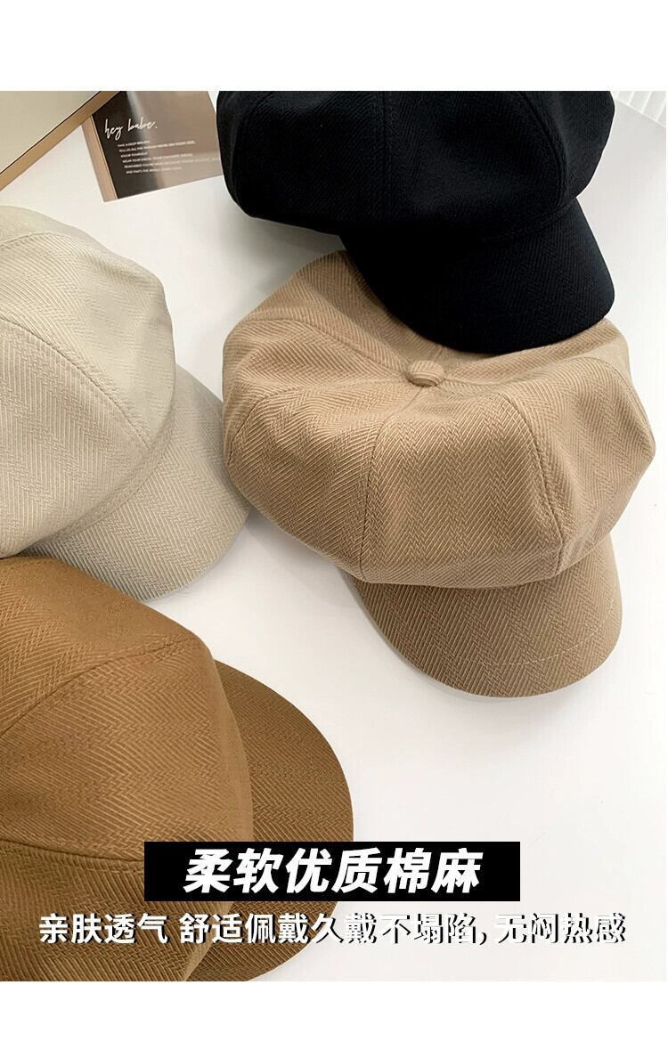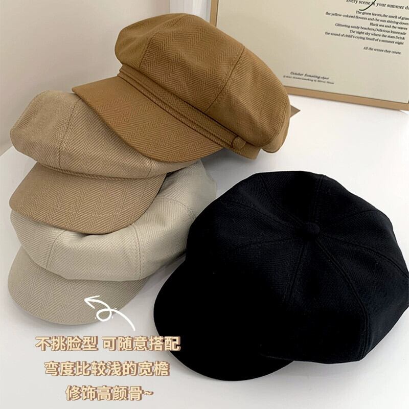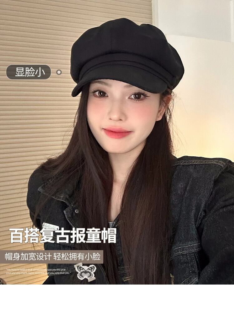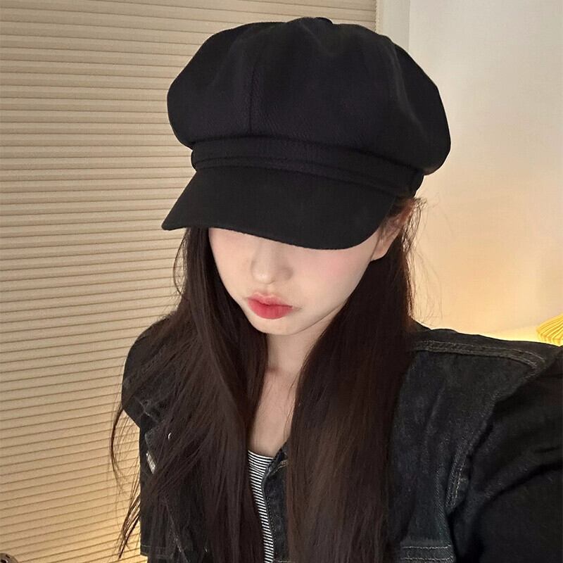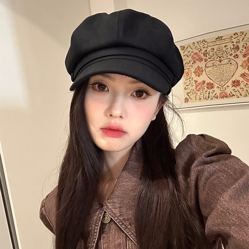 黒ベレー帽女性の秋冬の新しいスタイルの多用途な顔見せ小さなレトロな八角形キャスケット帽子女性の大きな頭の帽子 ブラック オータム 秋物 ウィンター 冬物 ベレット ヘアアクセサリー 15dd2309499193