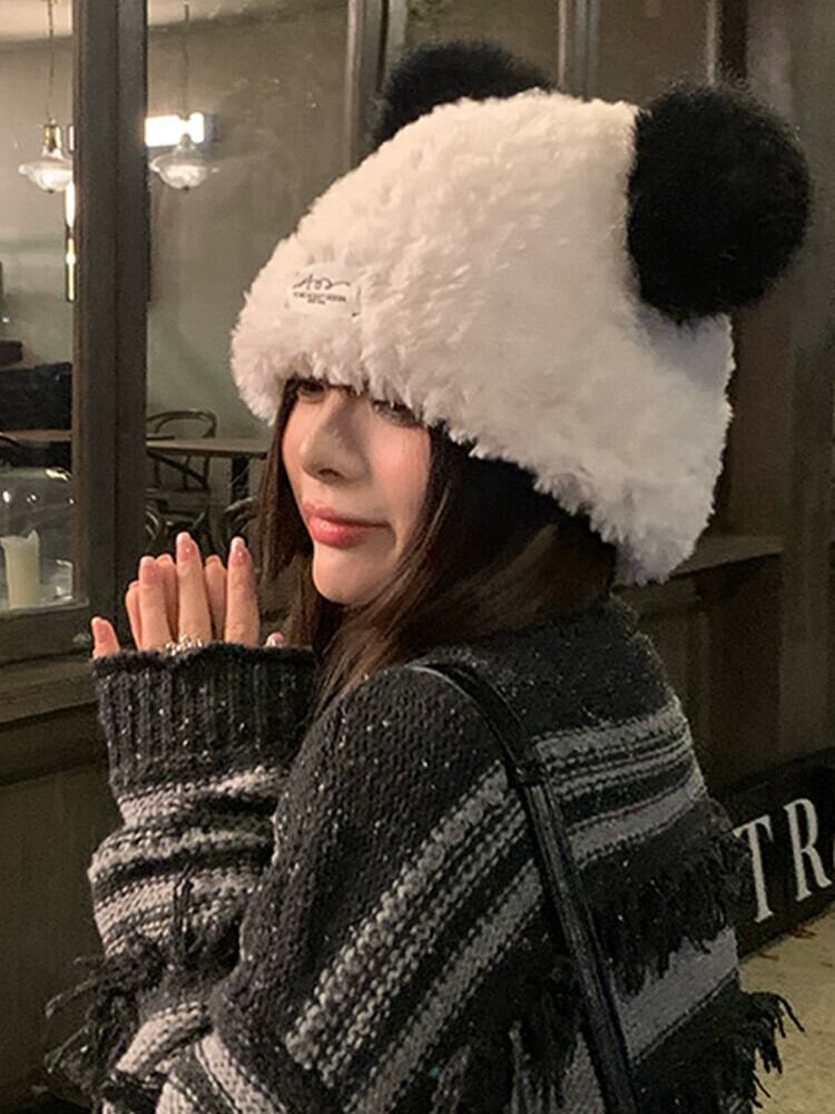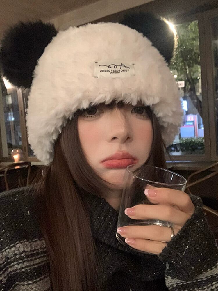 秋冬のウールの帽子の女性、多用途のかわいいクマのニット帽、暖かい白い豪華な防寒帽子、耳の保護、大きな頭囲 ホワイト 大人ガーリー スウィート キュート カジュアル オータム 秋物 ウィンター 冬物 15dd46085475988
