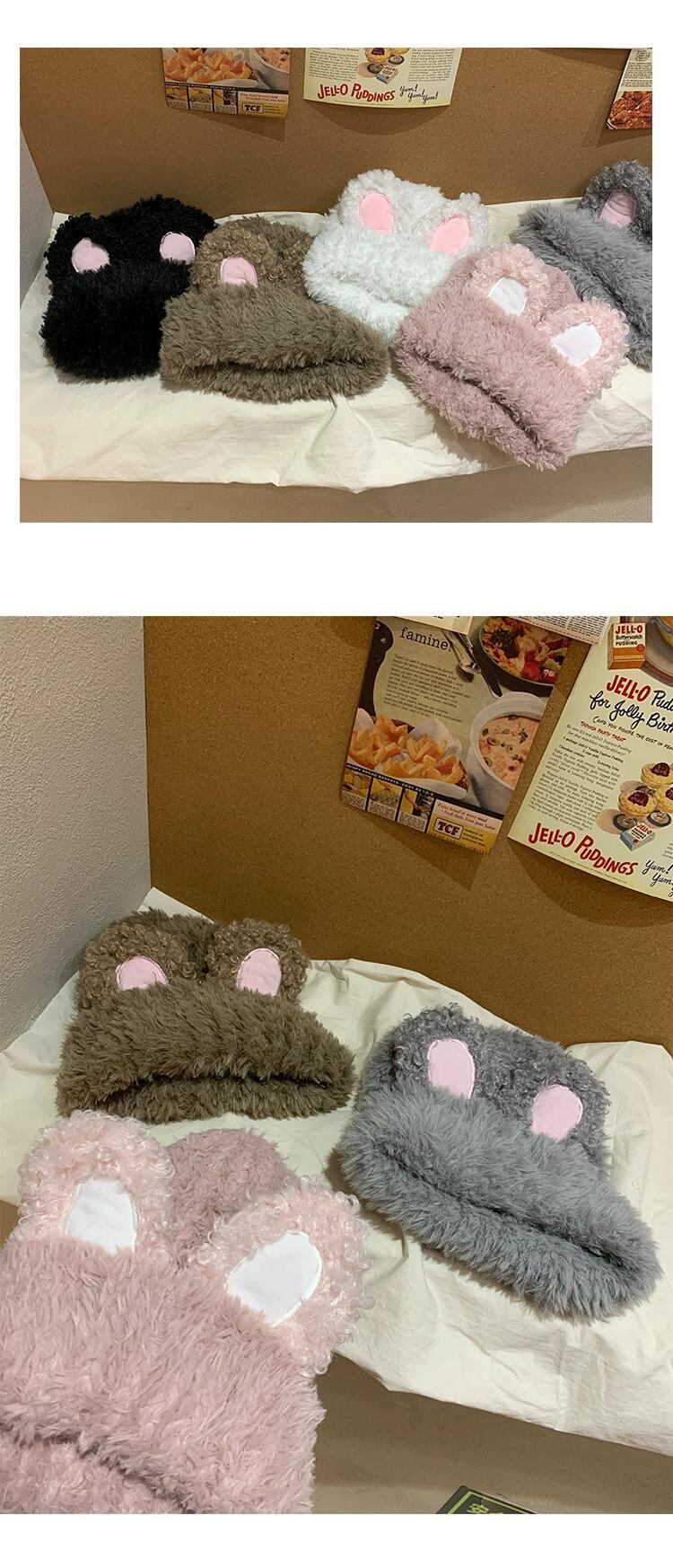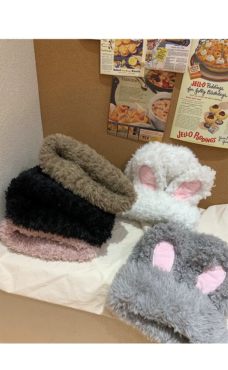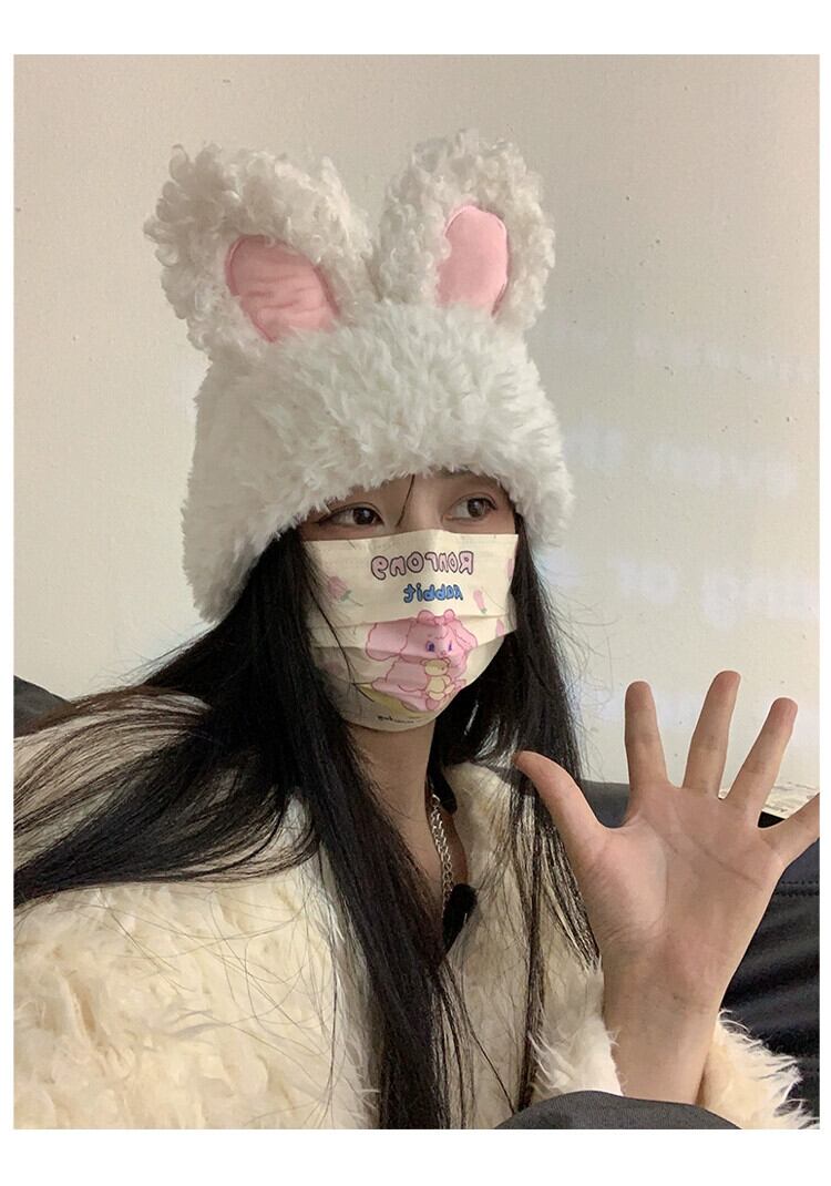 甘くてかわいいぬいぐるみウサギの耳帽子女性の秋と冬の厚く暖かいウールの帽子トレンディな包頭インニット防寒帽子 大人ガーリー スウィート キュート カジュアル オータム 秋物 ウィンター 冬物 15dd78990597499