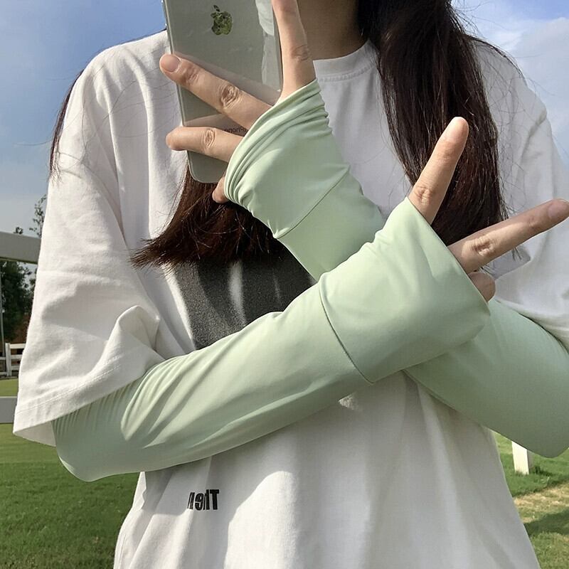 2023 ソリッドカラーアイススリーブ夏の女性の通気性抗 UV アイスシルク袖運転日焼け止め手袋女性のアームガード サマー 夏物 15dd4546463295