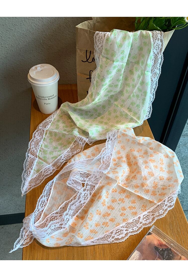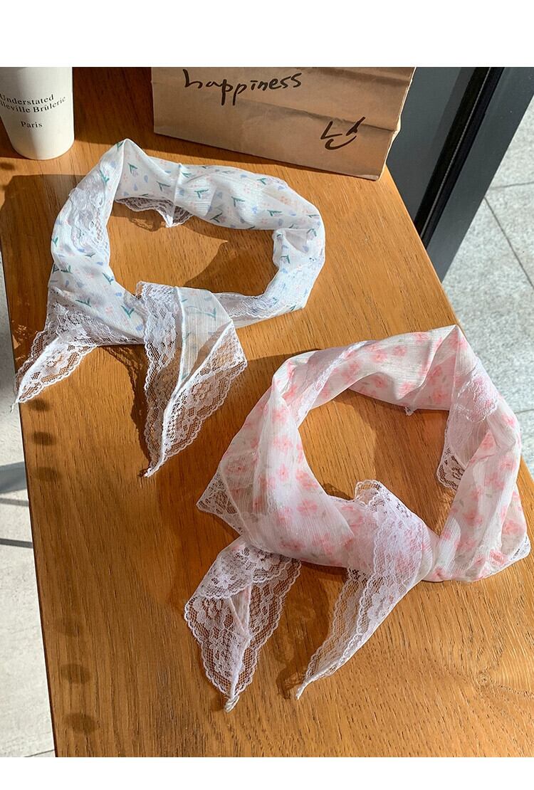 - エンドと多用途の 2023 新しい花柄の髪結びヘッドスカーフ レース スタイル ヘアバンド シルク スカーフ レディース トライアングル スカーフ ヘアアクセサリー 15dd76022723725