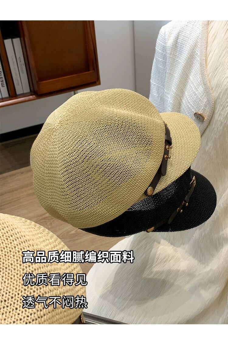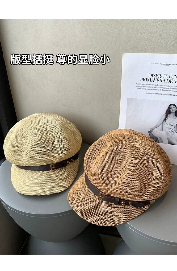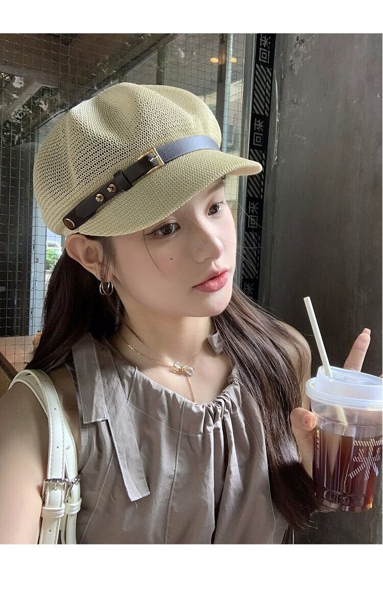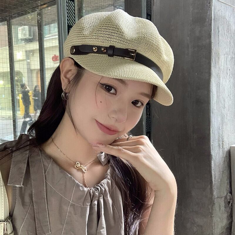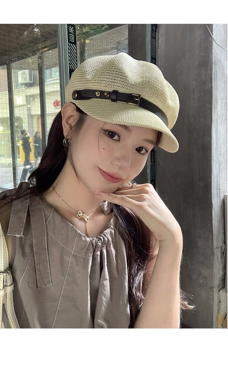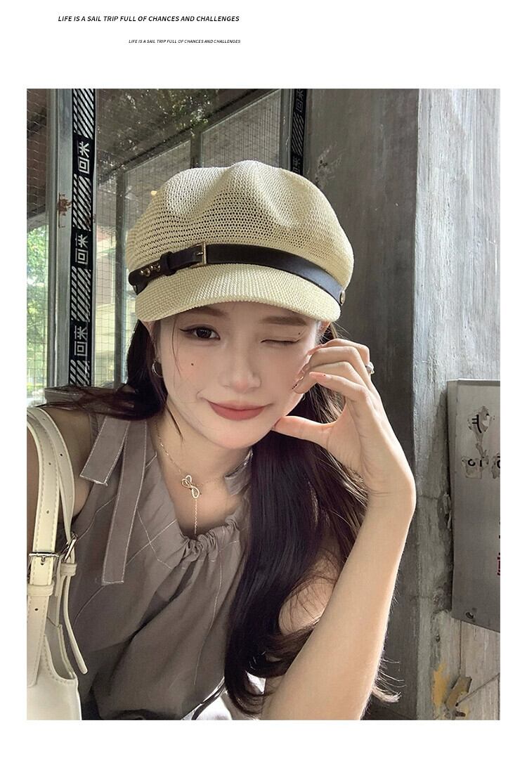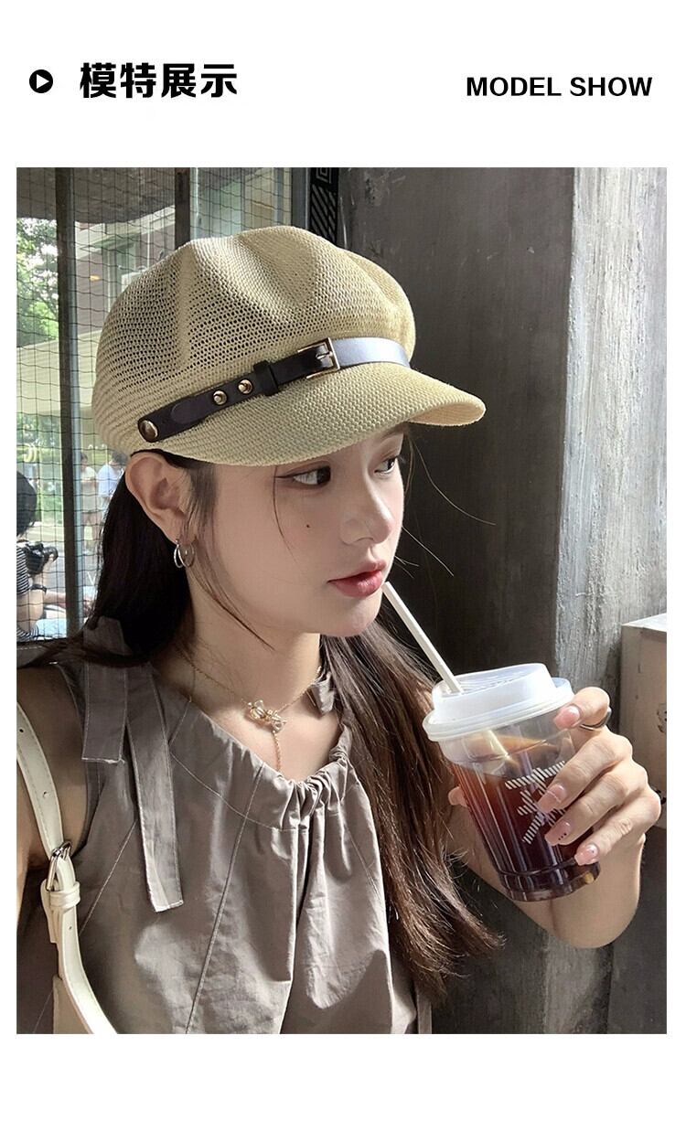 2023 中空ニット八角帽子女性の夏の旅行通気性スタイルレトロ sboy 帽子ショー小顔 サマー 夏物 15dd1464379085