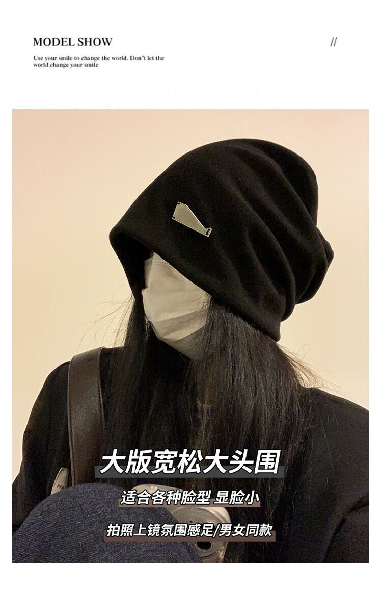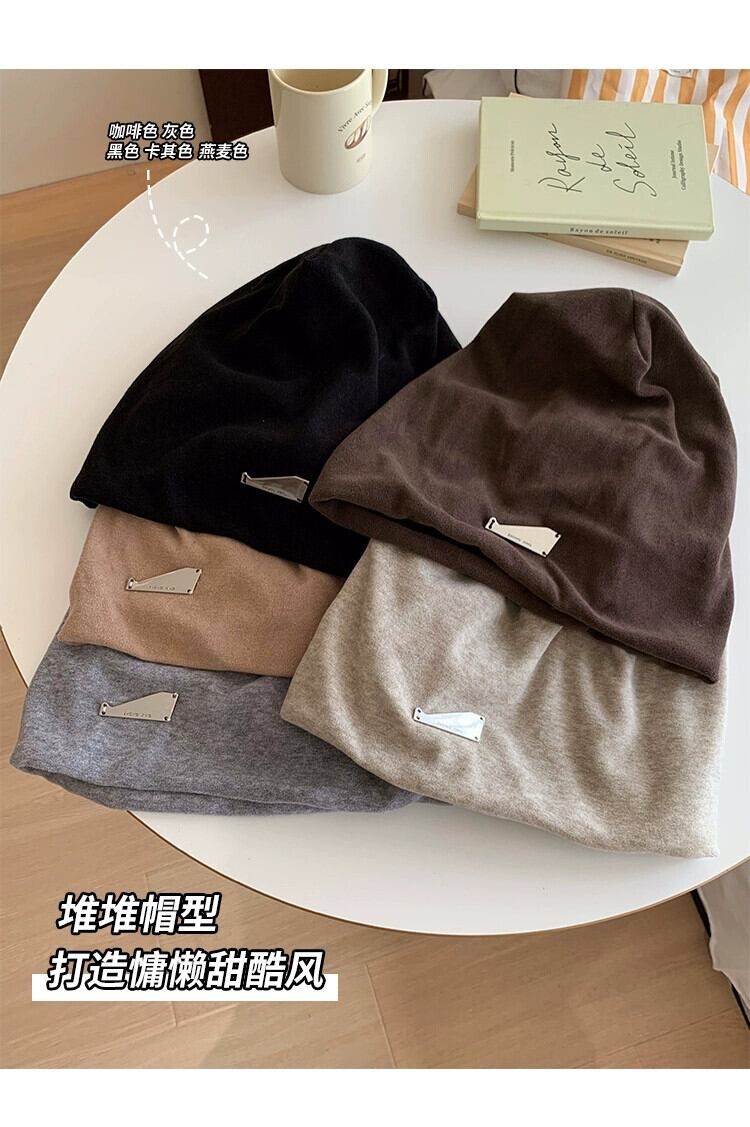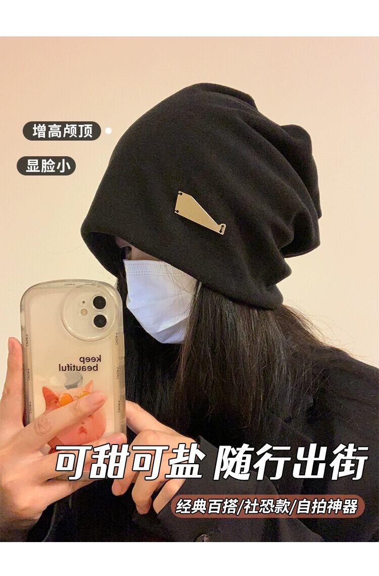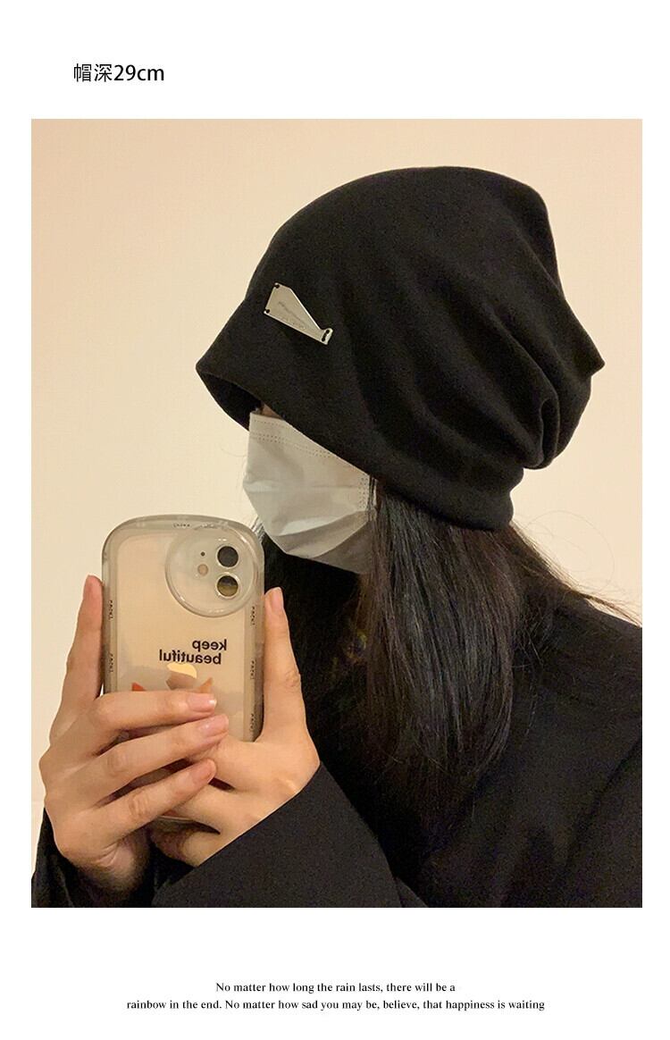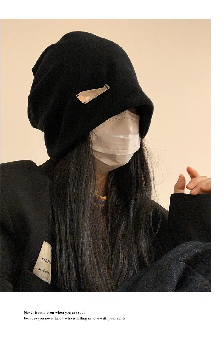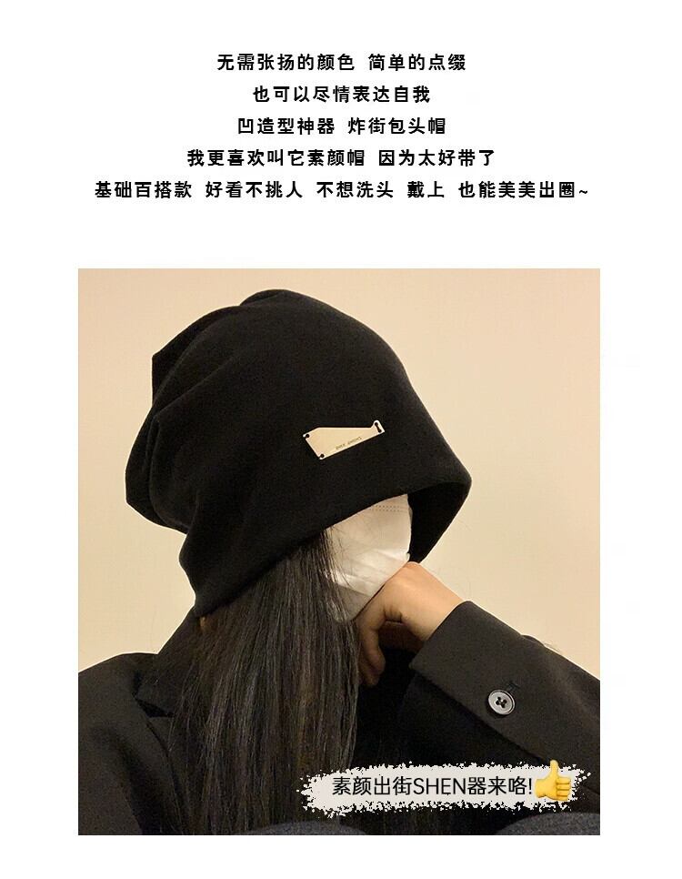 アメリカの怠惰なスタイル黒パイル帽子女性の秋と冬のファッションプルオーバー監禁帽子大きな頭囲表示顔小さな包頭帽子 ブラック オータム 秋物 ウィンター 冬物 15dd44876108596