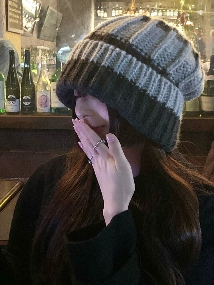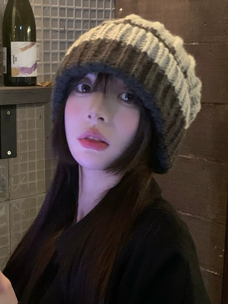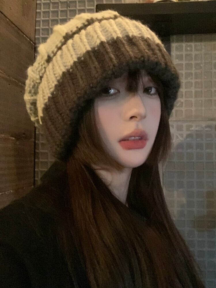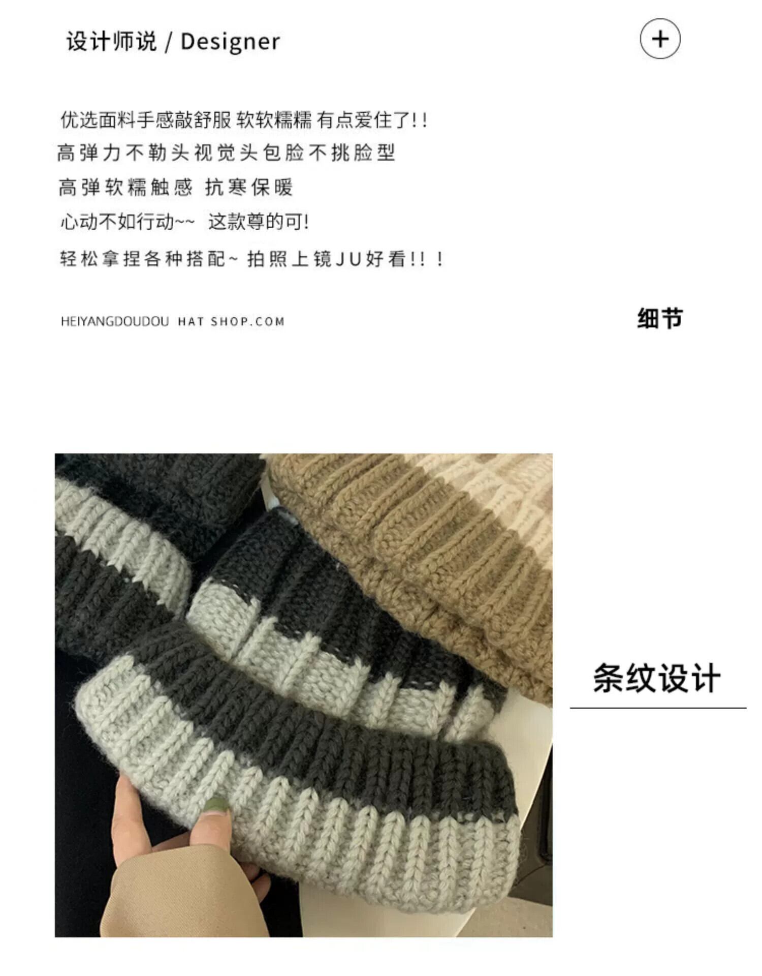 大きな頭囲の厚いウールの帽子女性の秋と冬の ese スタイルの多彩なカラー マッチング暖かい大型バージョンの耳保護ニット帽子顔とトレンディを表示します。 オータム 秋物 ウィンター 冬物 15dd25150453488