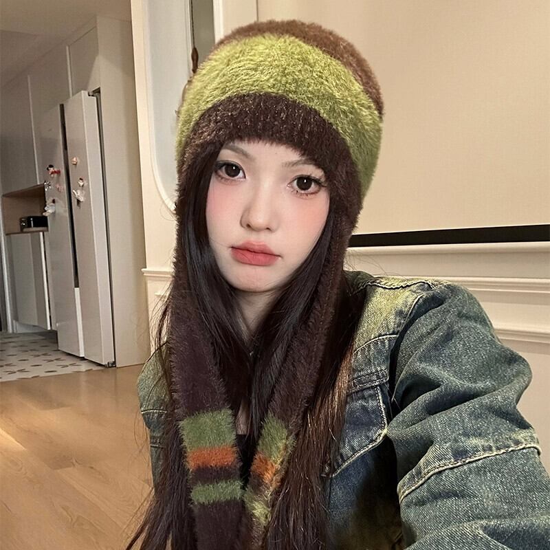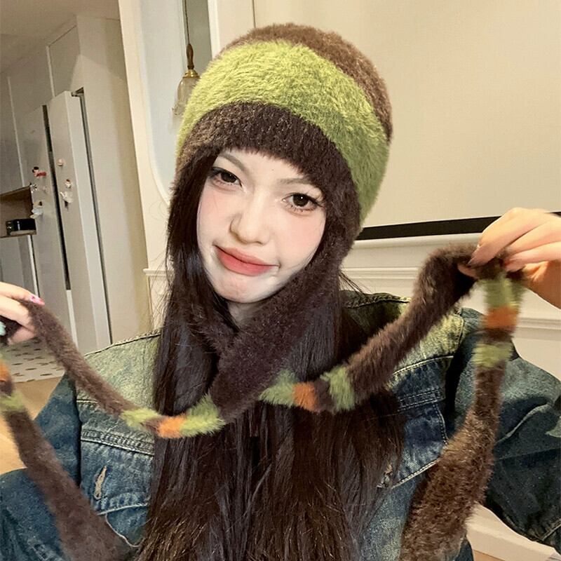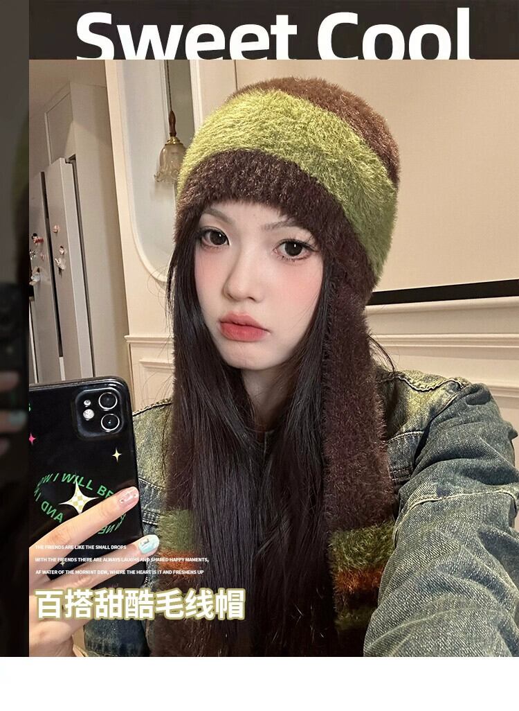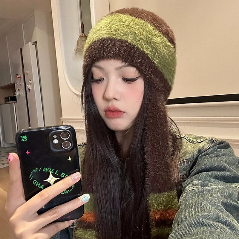 ソフトミンクベルベットハットレディース秋冬ニッチウールコントラストカラーニット帽多用途でかわいいぬいぐるみトゥキャップトレンディ 帽子 大人ガーリー スウィート キュート カジュアル オータム 秋物 ウィンター 冬物 15dd33593640645