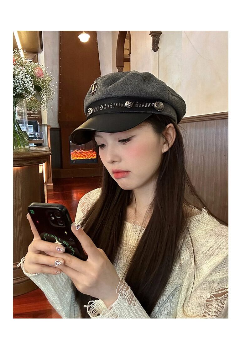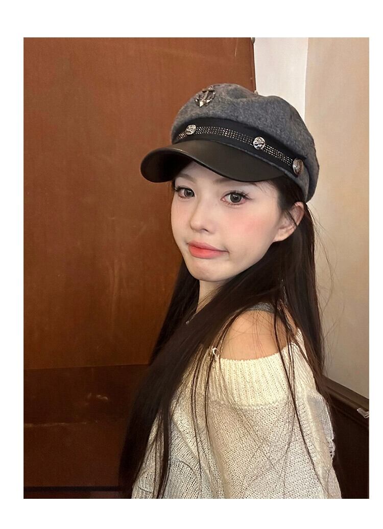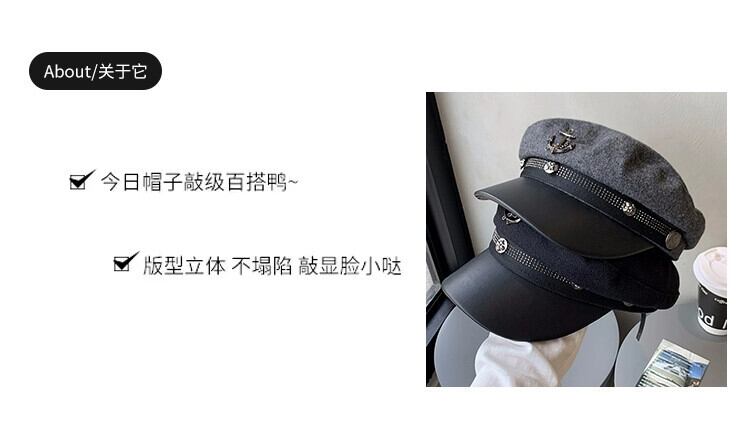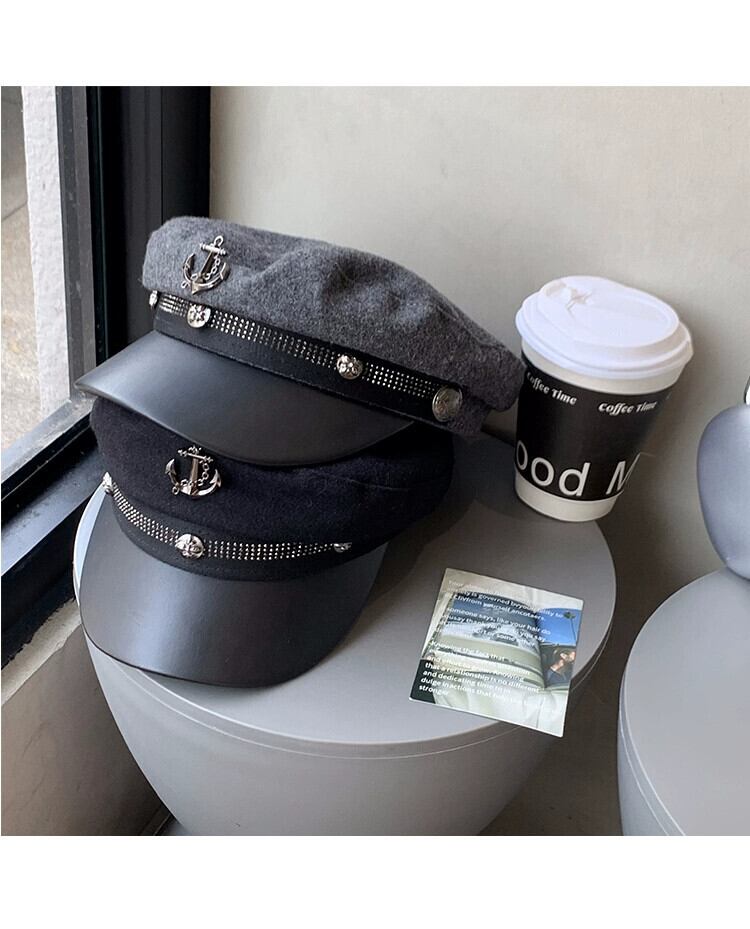 帽子女性スタイルトレンディ英国レトロベレー帽女性春と秋ウールネイビー帽子インターネットセレブスタイル冬ひさし帽子トレンディ スプリング 春物 オータム 秋物 ウィンター 冬物 ベレット ヘアアクセサリー 15dd14003991175