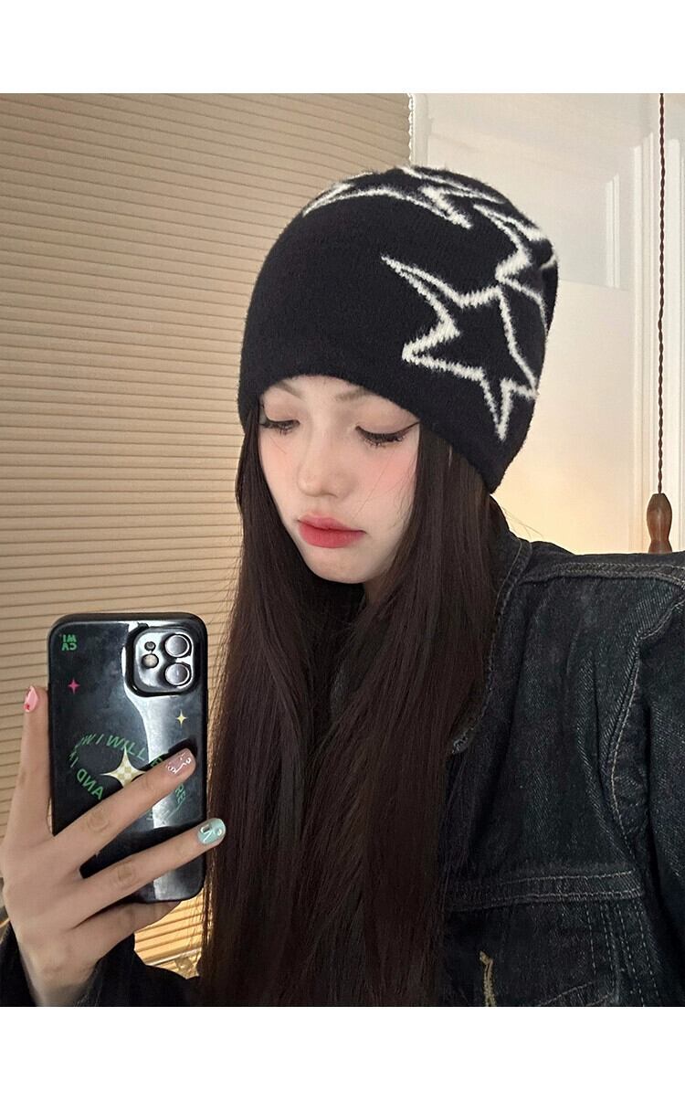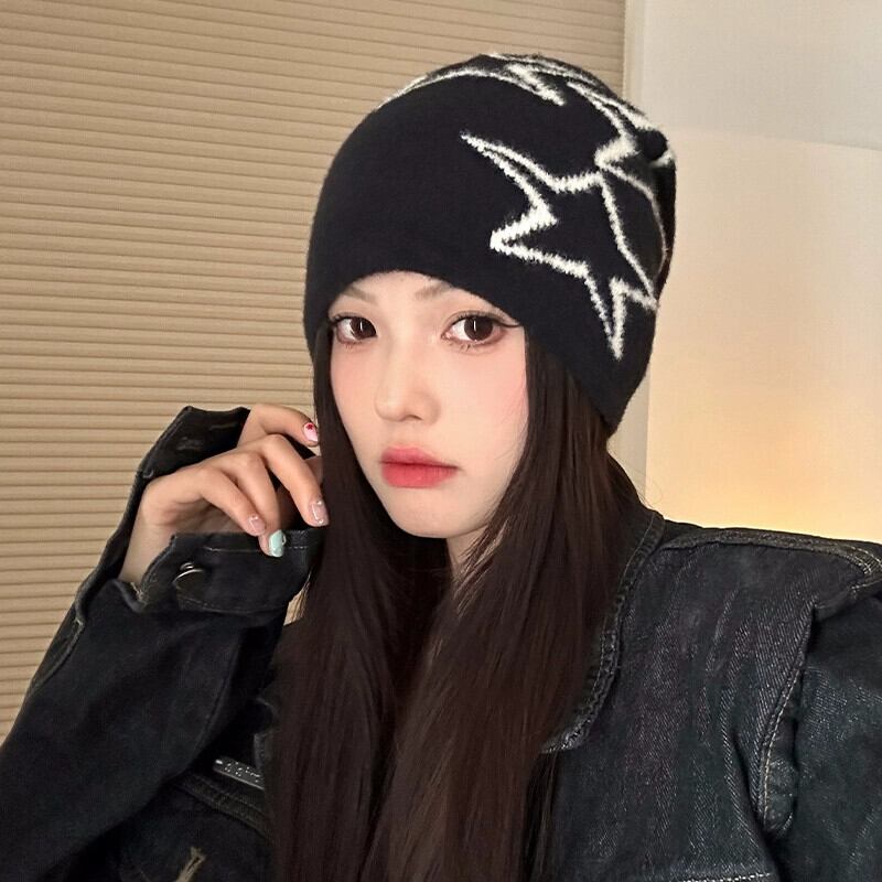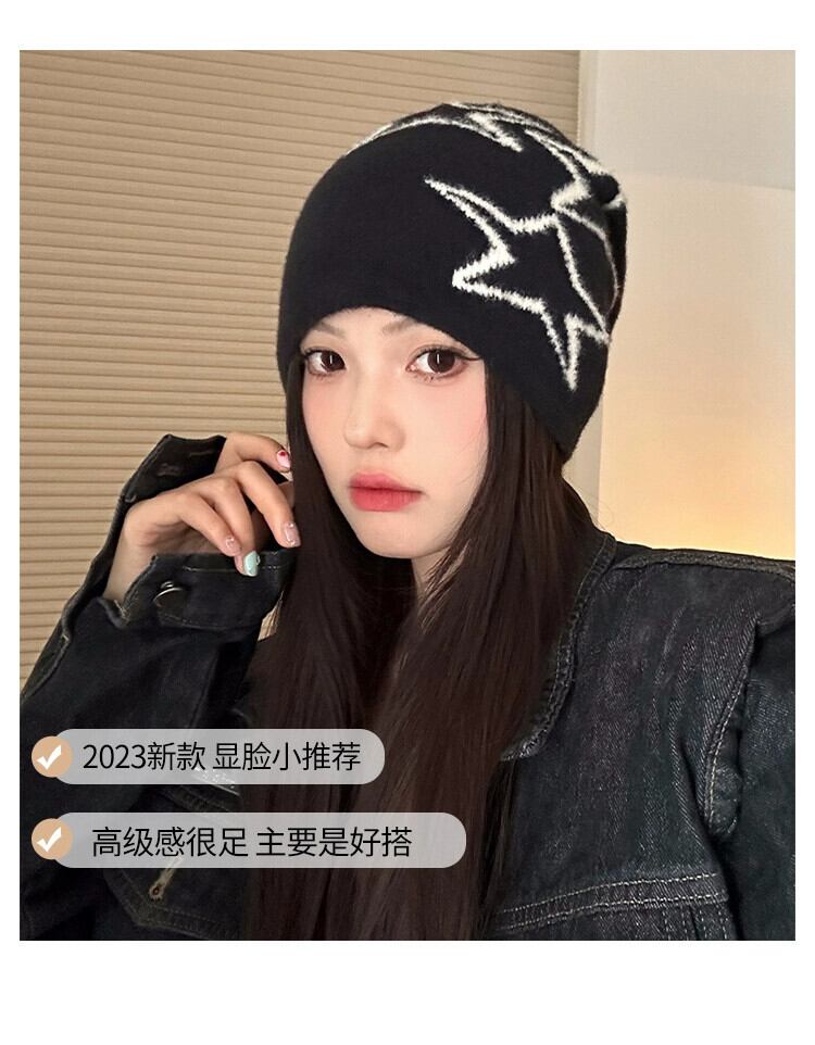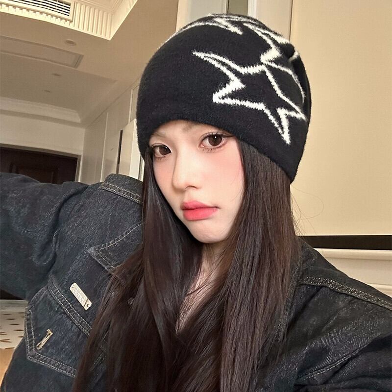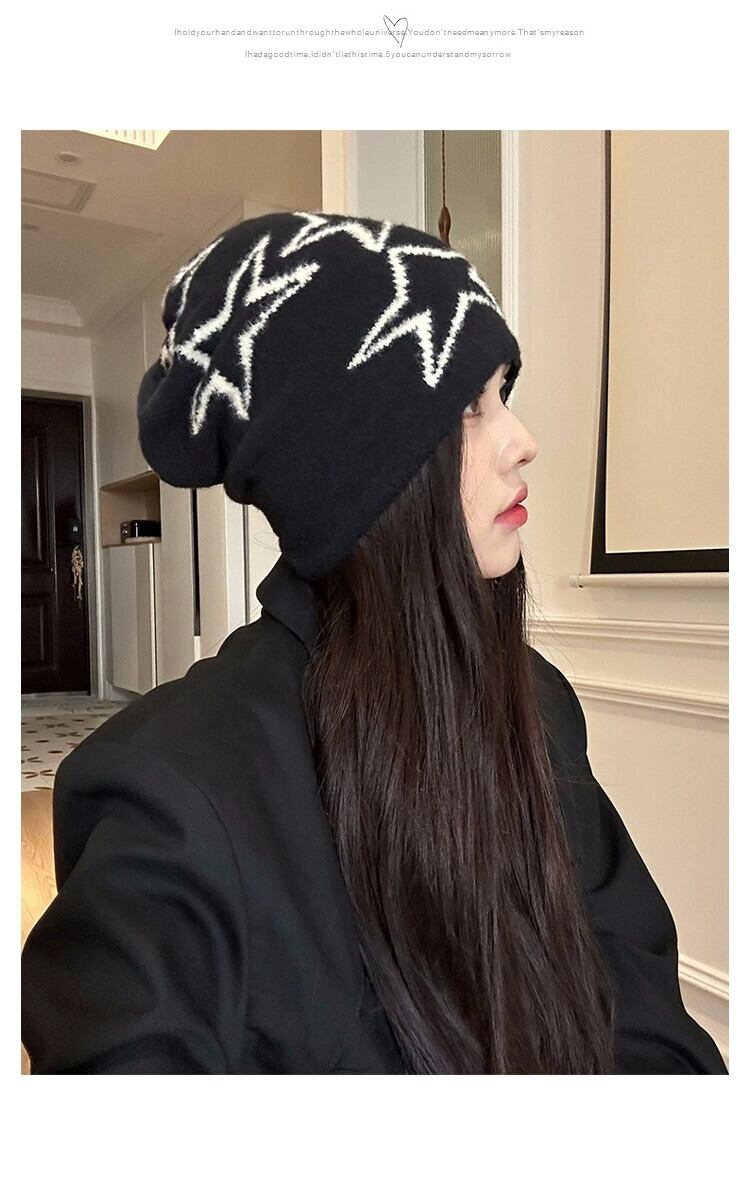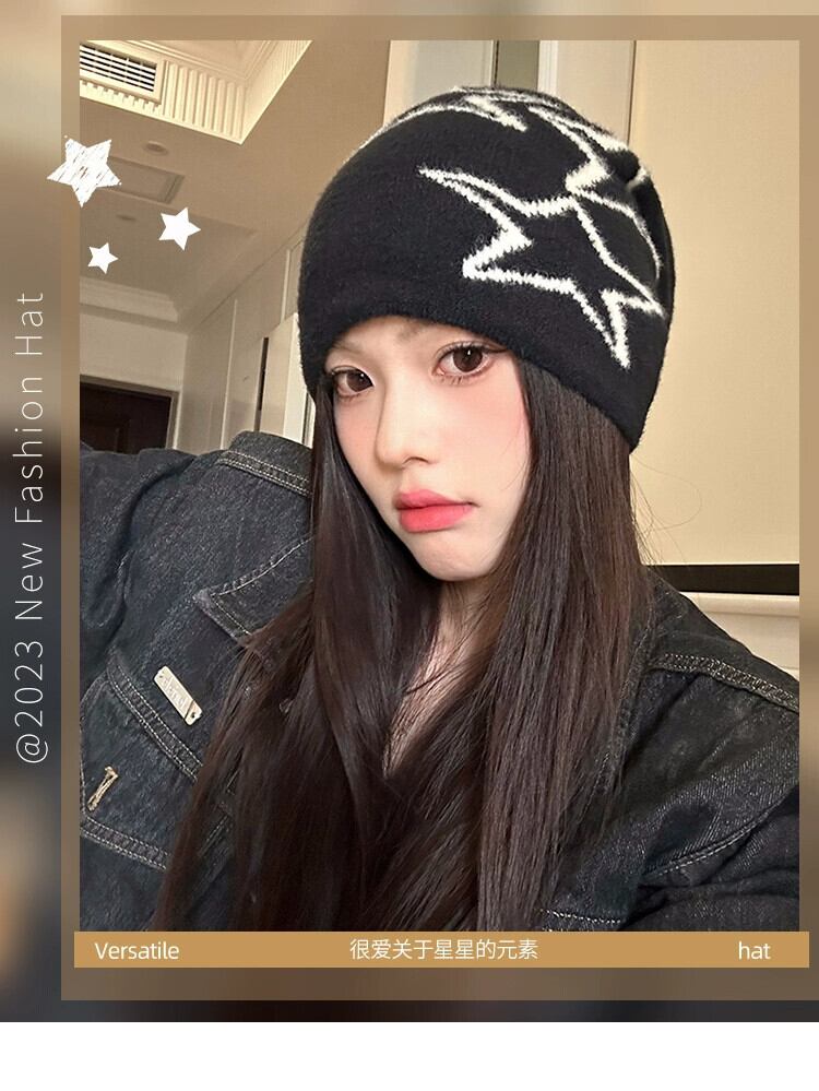 アメリカンレトロスターニット帽子女性秋と冬暖かいパイル帽子多用途耳保護コールド帽子大きな頭囲閉じ込め帽子トレンディ オータム 秋物 ウィンター 冬物 15dd24153635245