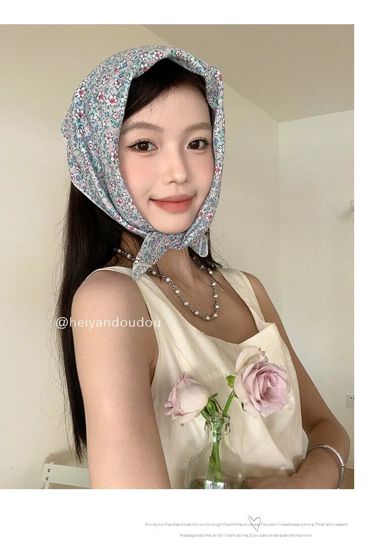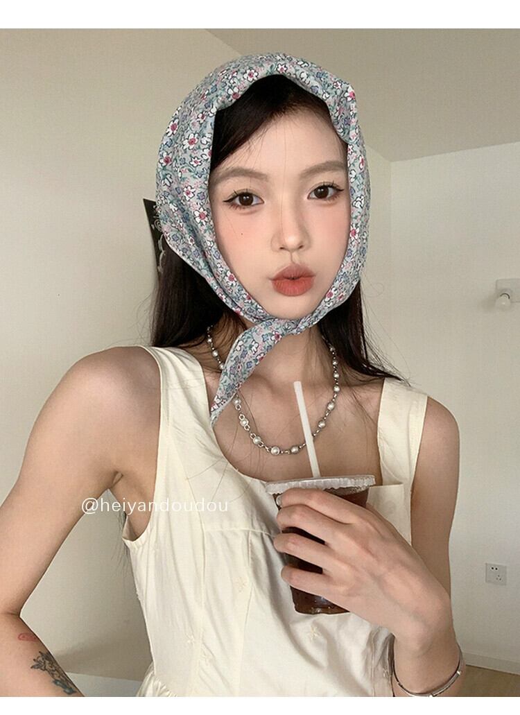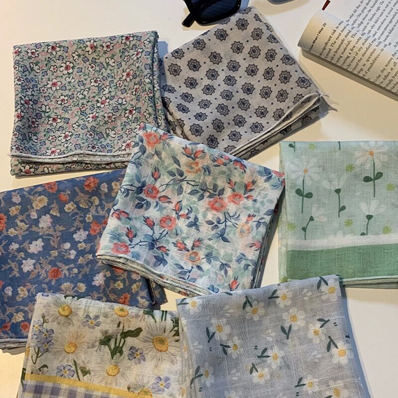2023 花小さな正方形スカーフ女性の夏 Po 帽子ビーチ薄い小さな新鮮な装飾シルクスカーフ サマー 夏物 花柄 スクウェア 15dd17936940493