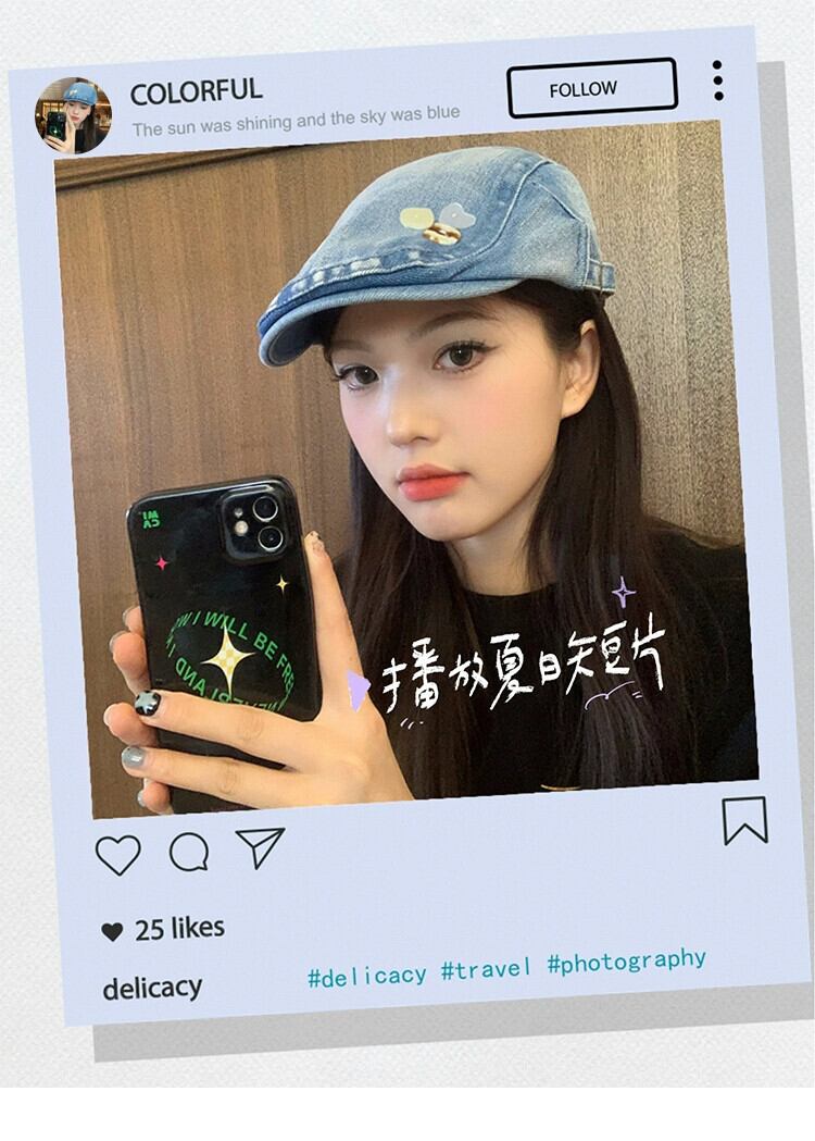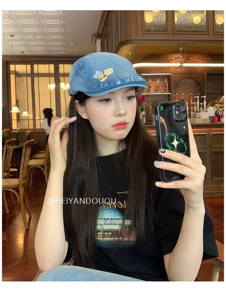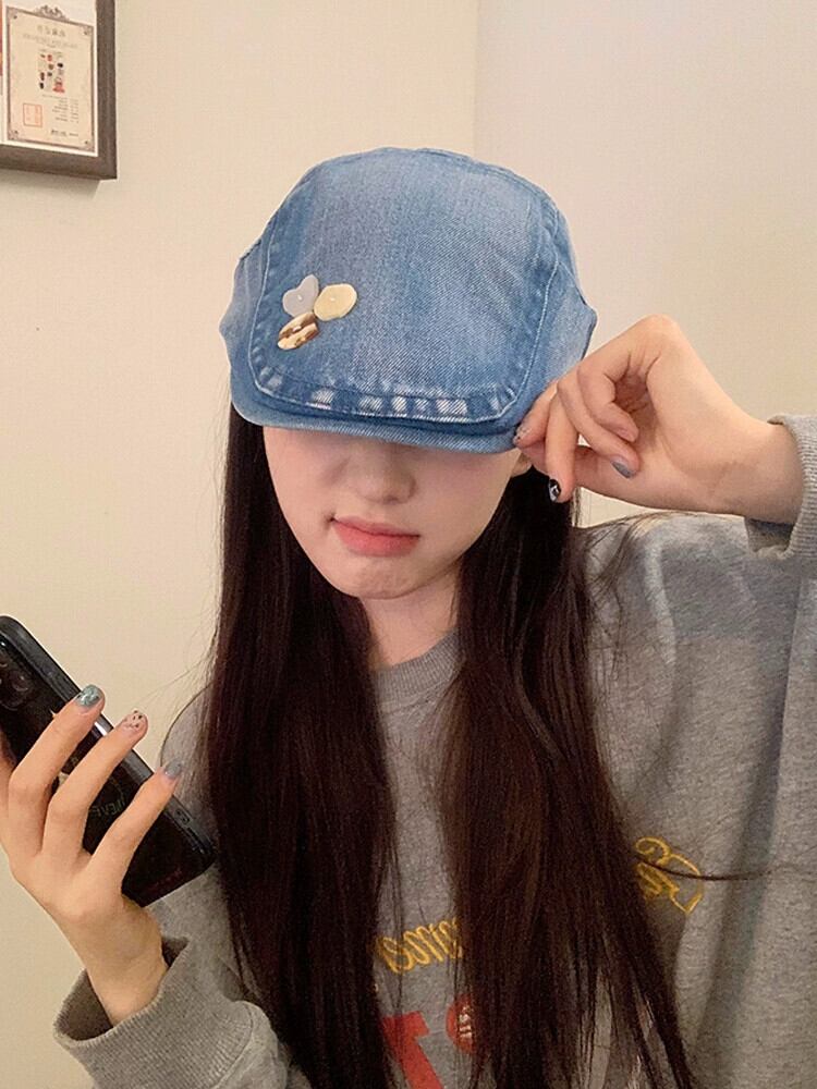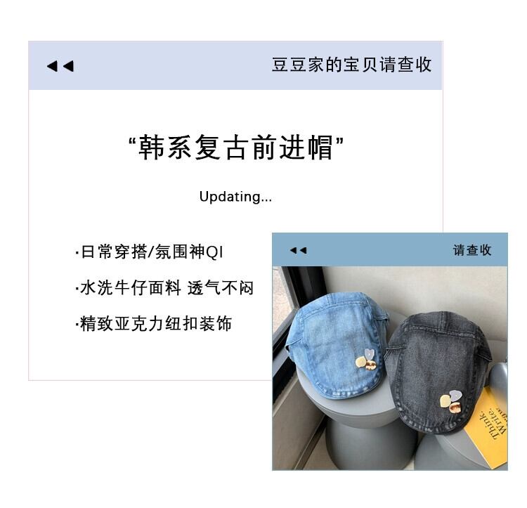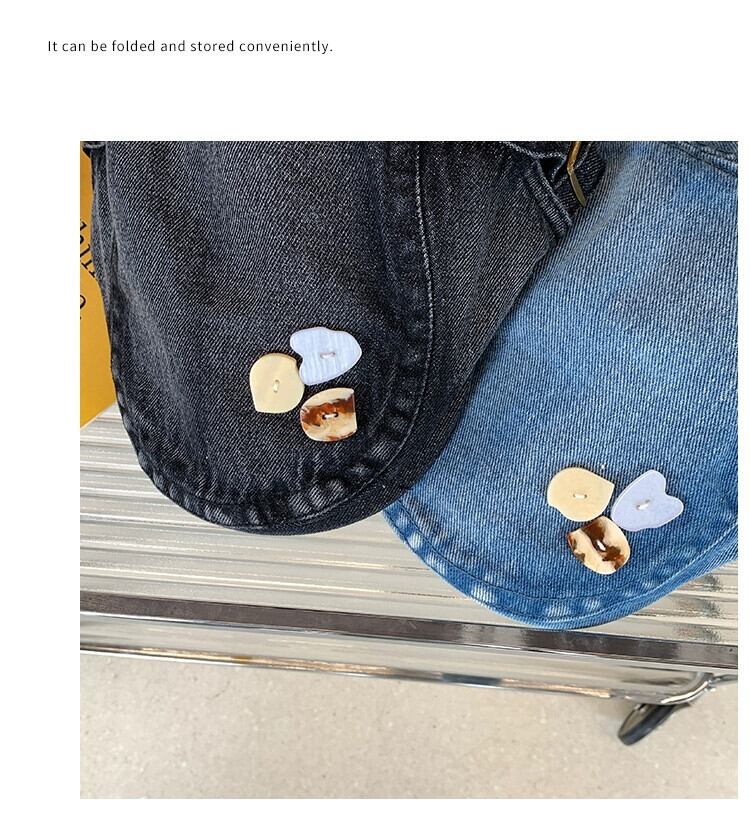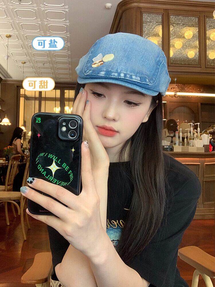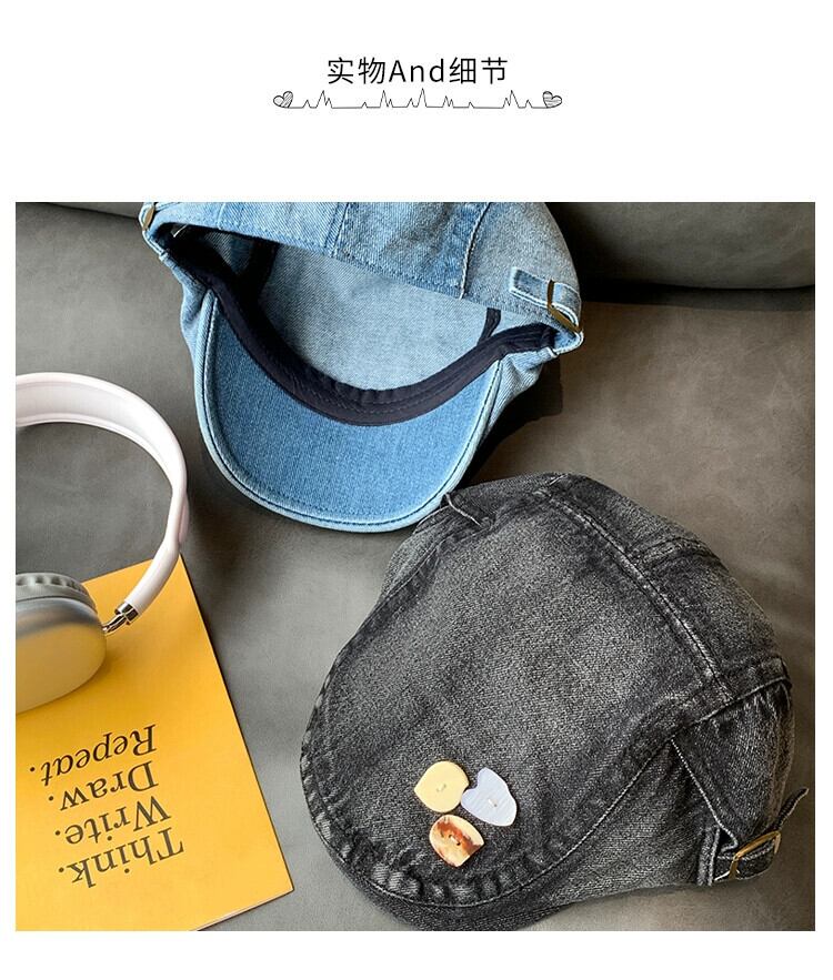 ニッチボタンは古いウォッシュドデニムワードハット女性夏y2kオールマッチヤッピーアヒルタンベレー帽キャスケット帽子 サマー 夏物 ベレット ヘアアクセサリー 15dd30957990537