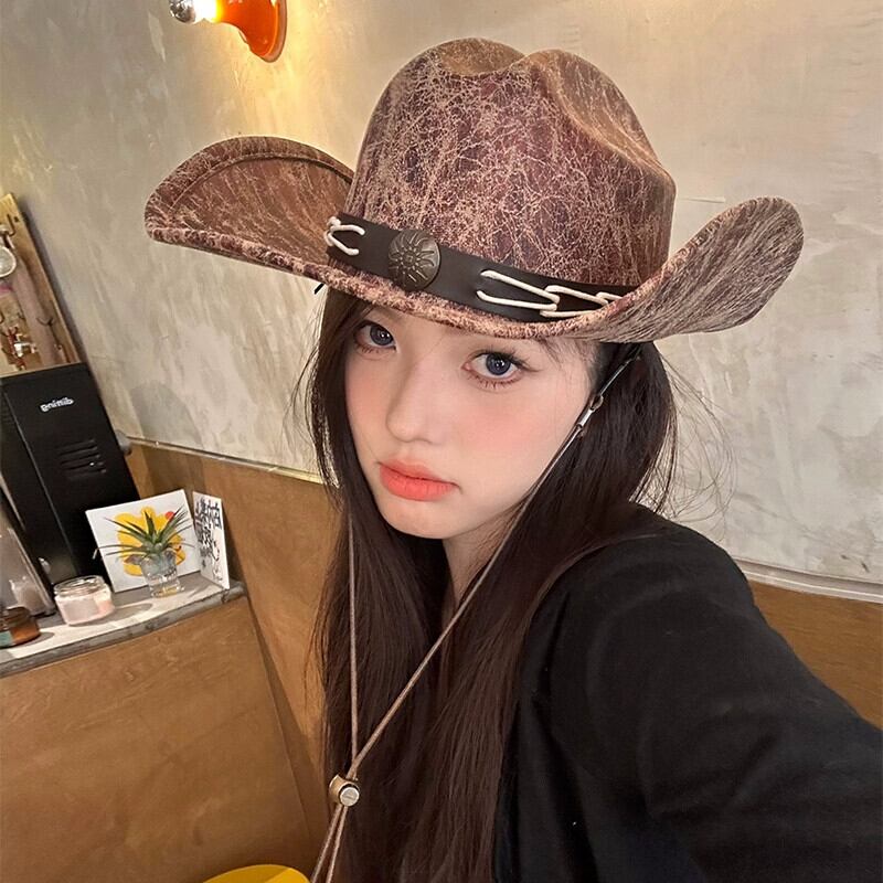 レトロアメリカンホットガールカウボーイシルクハット春と秋の屋外チベット旅行ポーハットサンバイザーナイトハットカップル 帽子 スプリング 春物 オータム 秋物 15dd1315426981