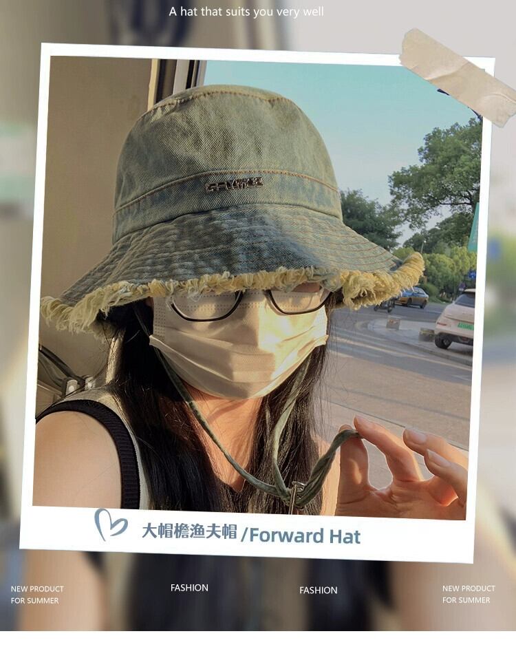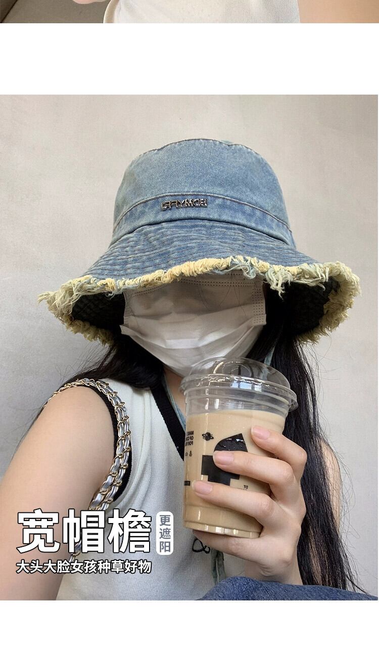 バージョンのインレトロ生エッジ文字大きなつば漁師の帽子女性夏古い屋外日よけ盆地帽子小顔を見せる サマー 夏物 15dd99297415494