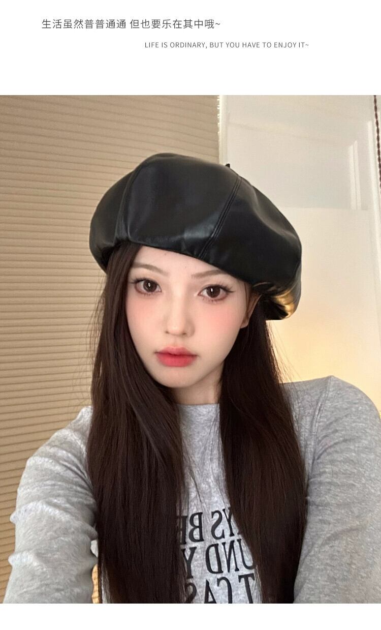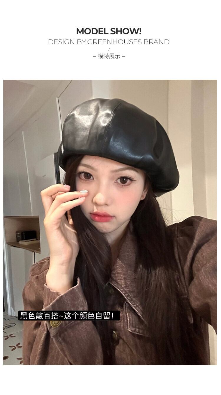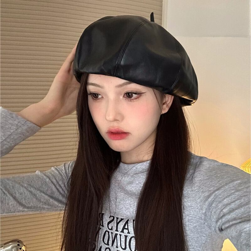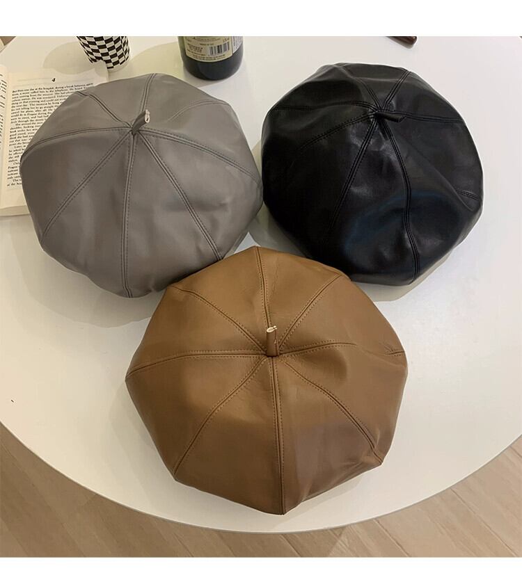 PUレザーベレー帽レディース秋冬英国風ネットセレブ多用途画家の帽子雲帽子八角形帽子小顔見せ オータム 秋物 ウィンター 冬物 ベレット ヘアアクセサリー 15dd26730552585