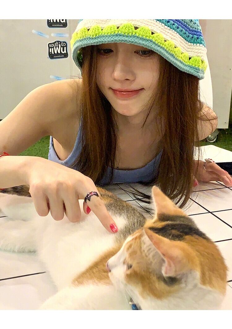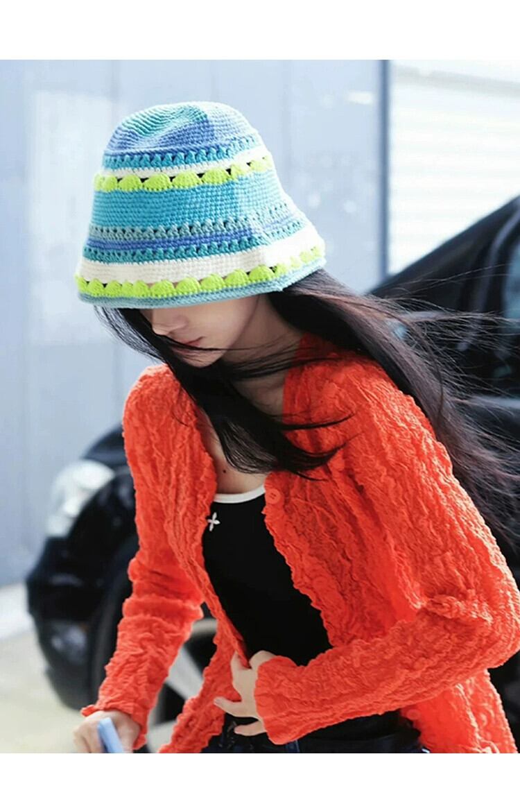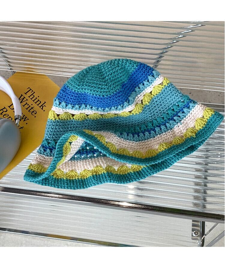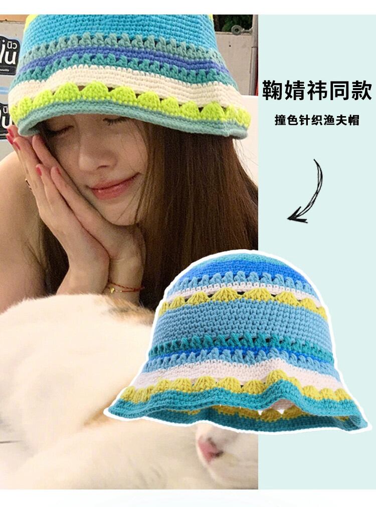 Ju Jingyi と同じスタイルのニッチニット中空漁師帽子女性の夏薄い盆地帽子サンハット秋と冬のウールの帽子 サマー 夏物 オータム 秋物 ウィンター 冬物 15dd76568638760