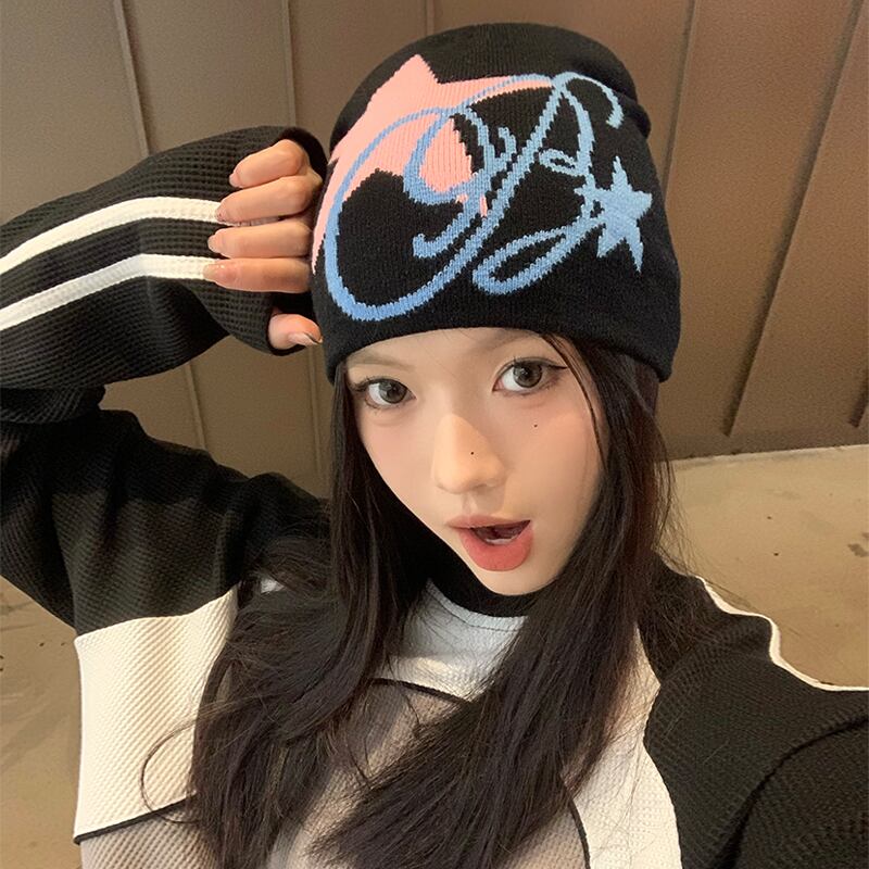 トレンディなブランドスター包頭帽子女性 2023 新スタイルヒップホップストリートブロガー同じスタイルのニットウール帽子ビッグヘッドトレンディな 15dd27703452409
