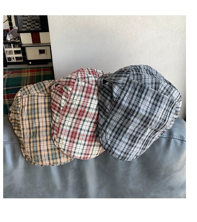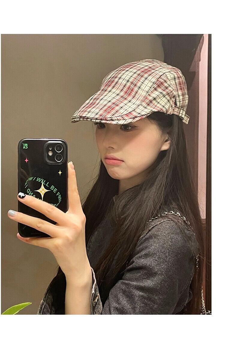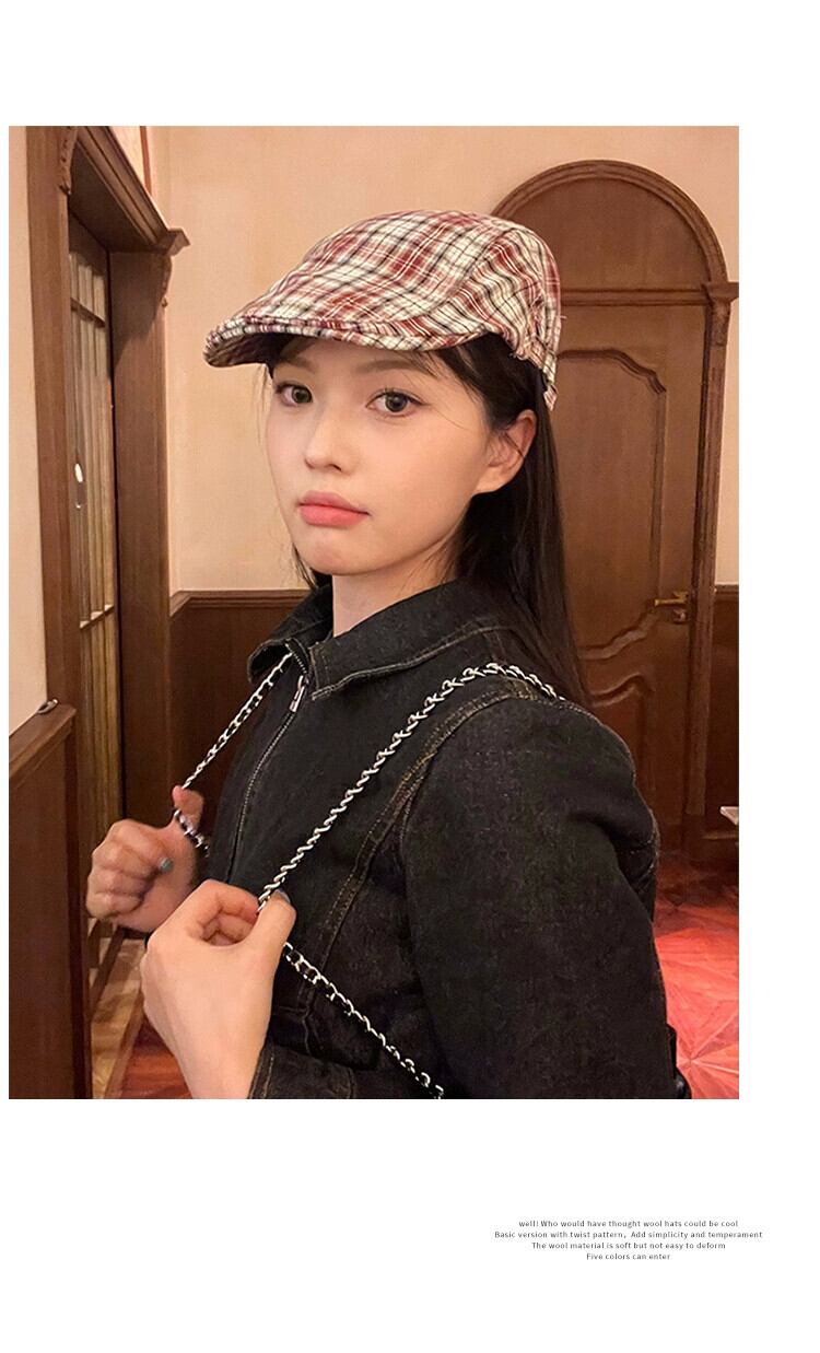 レトロベレー帽レディースサマースタイルオールマッチチェック柄顔小さなキャスケットペインターハット大きな頭囲後方着用区帽子トレンド 夏物 ベレット ヘアアクセサリー 15dd53791153061