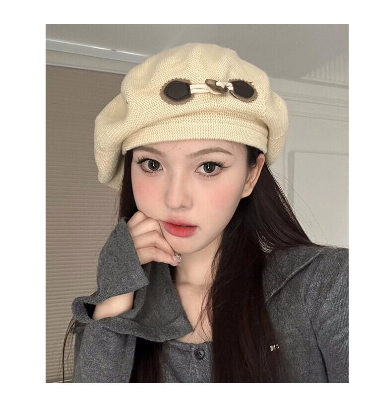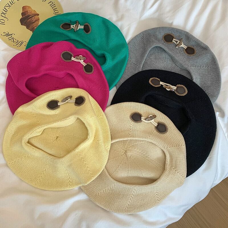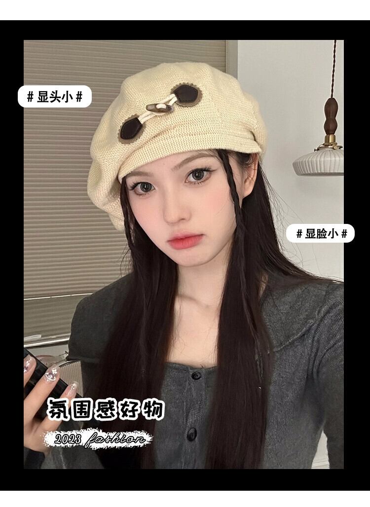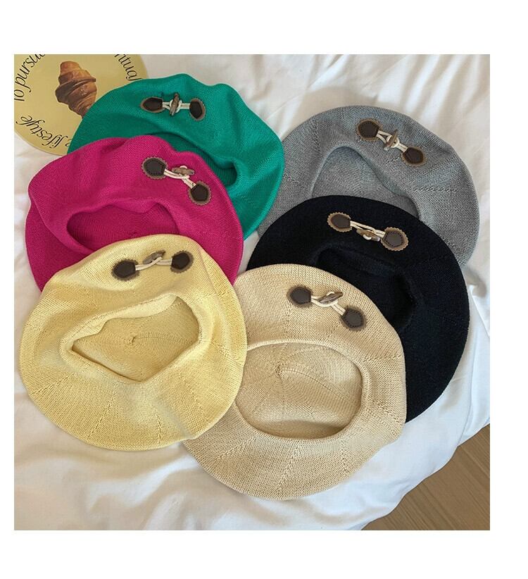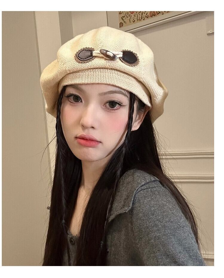ベージュのニットベレー帽の女性の夏バージョン多用途の薄いセクションの顔が見える小さな北嶺の画家の帽子大きな頭囲の帽子トレンディな サマー 夏物 ベレット ヘアアクセサリー 15dd44840640690