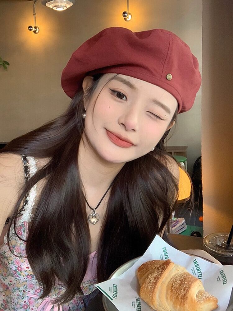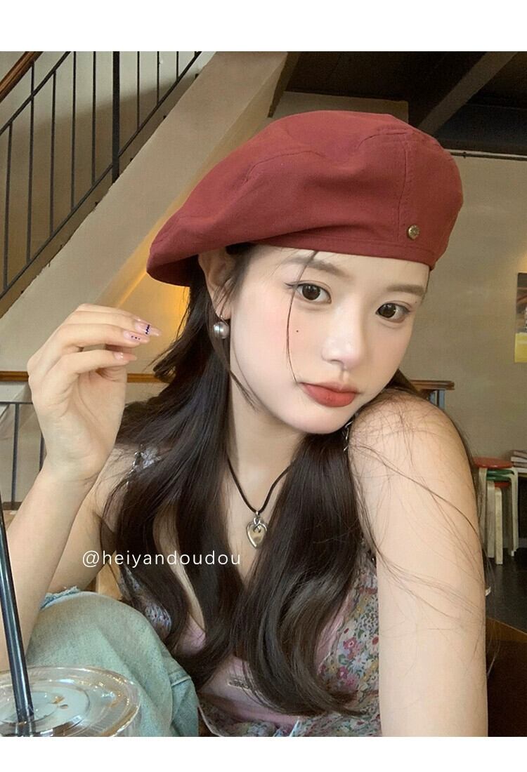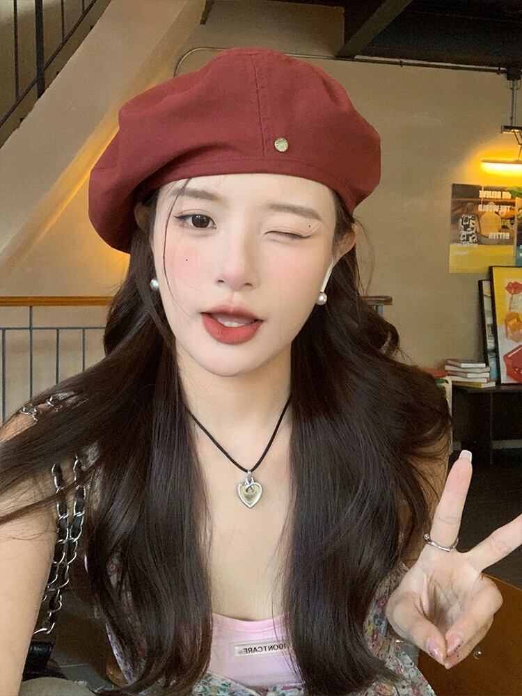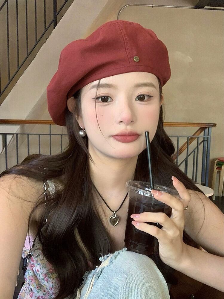 レッドデニムベレー帽女性の夏 2023 レトロウェアドーパミン春と秋のクラウドペインター帽子 スプリング 春物 サマー 夏物 オータム 秋物 ベレット ヘアアクセサリー 15dd78668047640